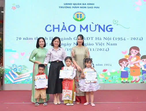 Cũng tại buổi lễ Nhà trường đã trao giải cho các bé đạt giải cao trong cuộc thi "Cô giáo em yêu" , cuộc thi nhằm đã khích lệ sự sáng tạo và năng khiếu nghệ thuật cho trẻ. Đồng thời tại buổi lễ Nhà trường cũng vinh danh 2 cô giáo đạt thành tích cao trong phong trào thi đua: cô giáo Nguyễn Thùy Dung - Giải "Nhà giáo Hà Nội tâm huyết, sáng tạo"; cô giáo Nguyễn Thu Hiền - đạt giải ba cuộc thi "Nữ sứ giả Du lịch Ba Đình"