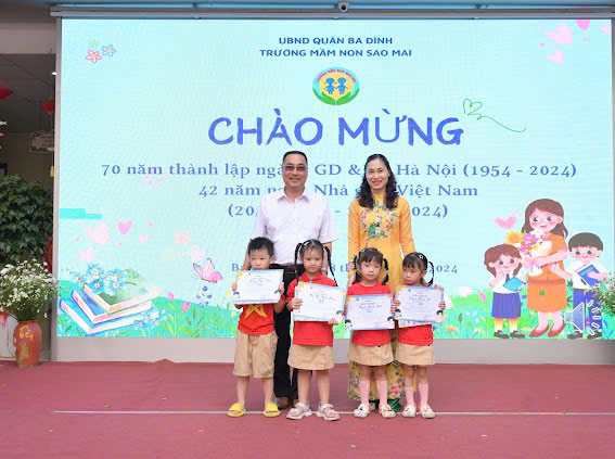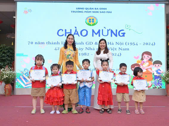 Nhà trường cũng vinh danh 2 cô giáo đạt thành tích cao trong phong trào thi đua: cô giáo Nguyễn Thùy Dung - Giải "Nhà giáo Hà Nội tâm huyết, sáng tạo"; cô giáo Nguyễn Thu Hiền - đạt giải ba cuộc thi "Nữ sứ giả Du lịch Ba Đình"