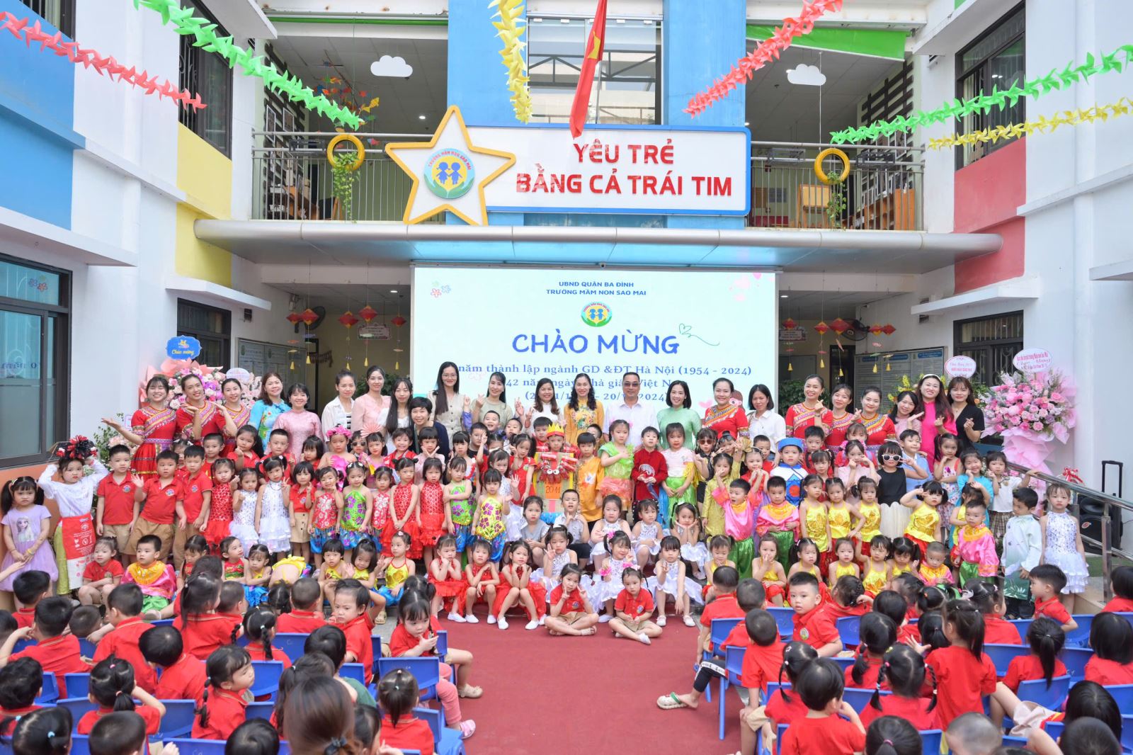 Hoà chung không khí tưng bừng, phấn khởi của ngành giáo dục cả nước kỉ ngày nhà giáo Việt Nam. Sáng ngày 18/11/2024 Trường mầm non Sao Mai đã long trọng tổ chức “Mít tinh chào mừng kỷ niệm 70 năm ngày thành lập ngành Giáo dục và Đào tạo Thủ đô, 42 năm ngày Nhà giáo Việt Nam 20/11” trong không khí vui tươi và đầy cảm xúc. Đây là hoạt động thường niên của nhà trường nhằm tôn vinh, thể hiện tình cảm biết ơn, kính trọng và truyền thống tôn sư trọng đạo đối với các thầy cô giáo đã và đang ngày đêm miệt mài chăm sóc, dạy dỗ những mầm non tương lai của đất nước.