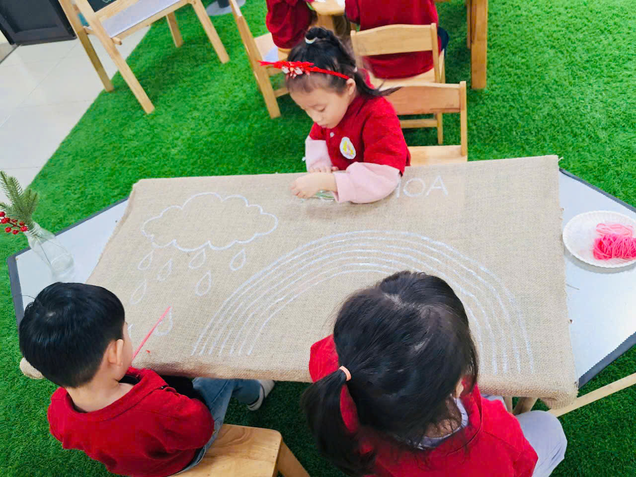 Với các hoạt động học, tùy từng lứa tuổi, tại các lớp diễn ra các hoạt động học phù hợp. Ví dụ, với lớp nhà trẻ (24-26 tháng) có hoạt động dạy trẻ nhận biết màu sắc; hướng dẫn trẻ chơi với hình, màu sắc và tạo sản phẩm từ các nguyên vật liệu rời. Còn ở lớp mẫu giáo bé (3-4 tuổi), giáo viên hướng dẫn trẻ nói “lời cảm ơn”.