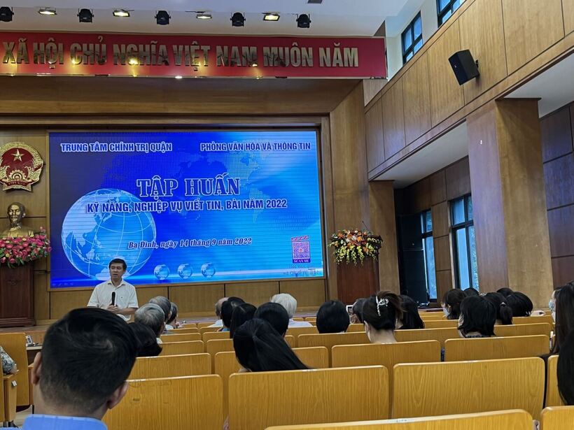 Chiều ngày 14/9/2022, Trung tâm Chính trị quận phối hợp với phòng Văn hóa Thông tin quận Ba Đình tổ chức “Lớp tập huấn kỹ năng, nghiệp vụ viết tin bài cho Cổng thông tin điện tử năm 2022” cho giáo viên phụ trách tin bài khối trường Mầm non, Tiểu học, THCS thuộc quận.