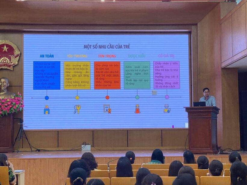 PGS.TS Trần Thành Nam đã nhấn mạnh về khái niệm, nguyên tắc kỷ luật tích cực (KLTC). Qua đó, xây dựng KLTC cho trẻ, kỹ năng KLTC cơ bản cho giáo viên mầm non (GVMN). Bên cạnh đó là quy trình GVMN sử dụng KLTC đối với trẻ và KLTC với hành vi sai theo nhóm mục đích.