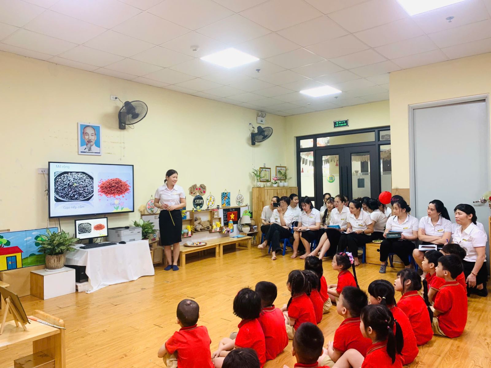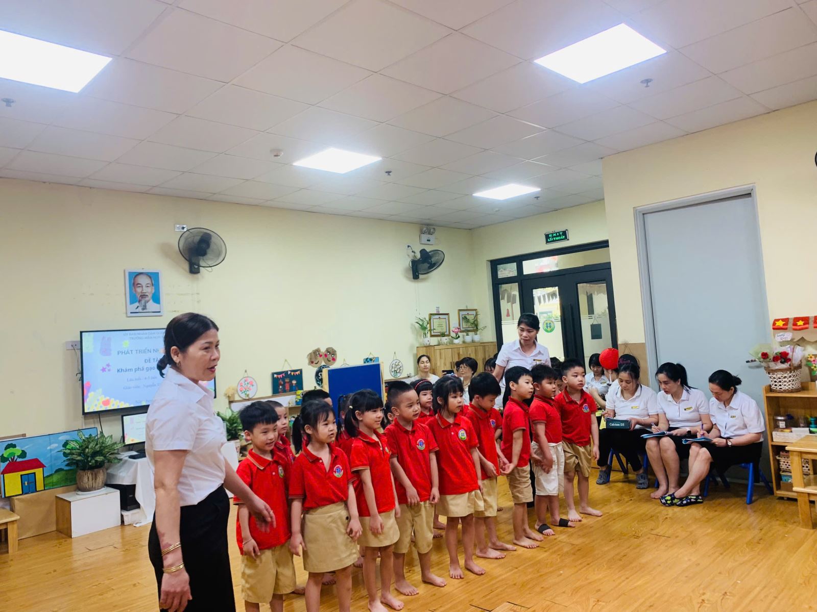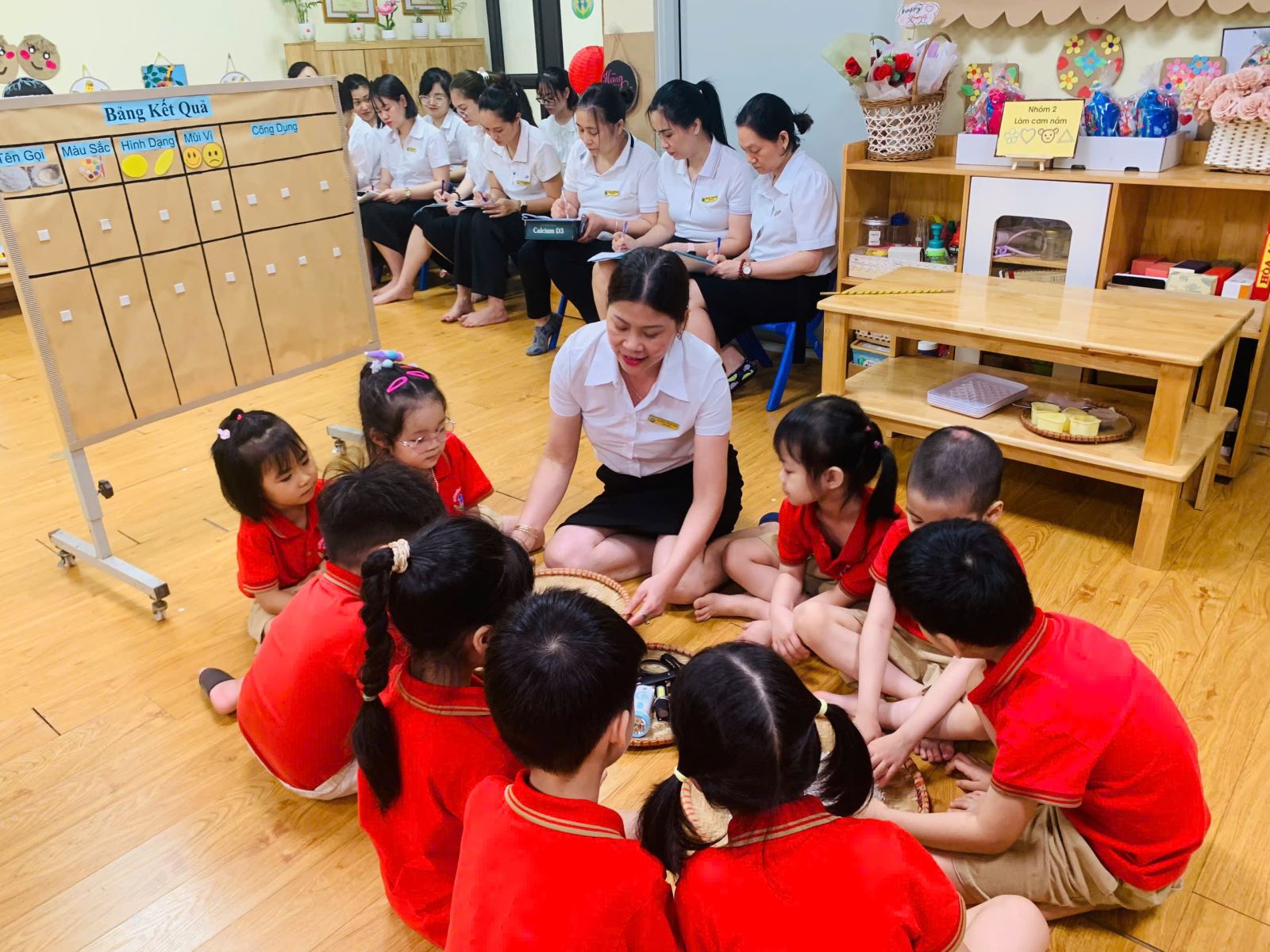 Buổi kiến tập với sự tham gia của Ban giám hiệu cùng 100% giáo viên nhà trường và khối nhóm lớp mẫu giáo độc lập. Giáo viên dự buổi kiến tập đã được thăm quan môi trường giáo dục lấy trẻ làm trung tâm, xanh - sạch - đẹp, thân thiện, an toàn của các lớp trong trường. Ngoài ra, Nhà trường đã lựa chọn tiết dạy phù hợp với lứa tuổi, sáng tạo đổi mới lấy trẻ làm trung tâm. Các tiết học đã diễn ra rất nhẹ nhàng với đồ dùng, chất liệu gần gũi với trẻ; trẻ hào hứng phấn khởi, tích cực tham gia các hoạt động.