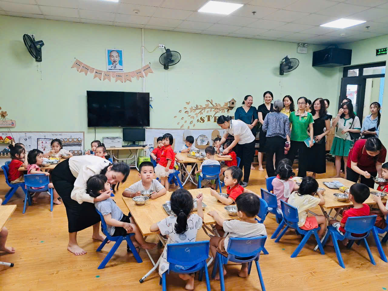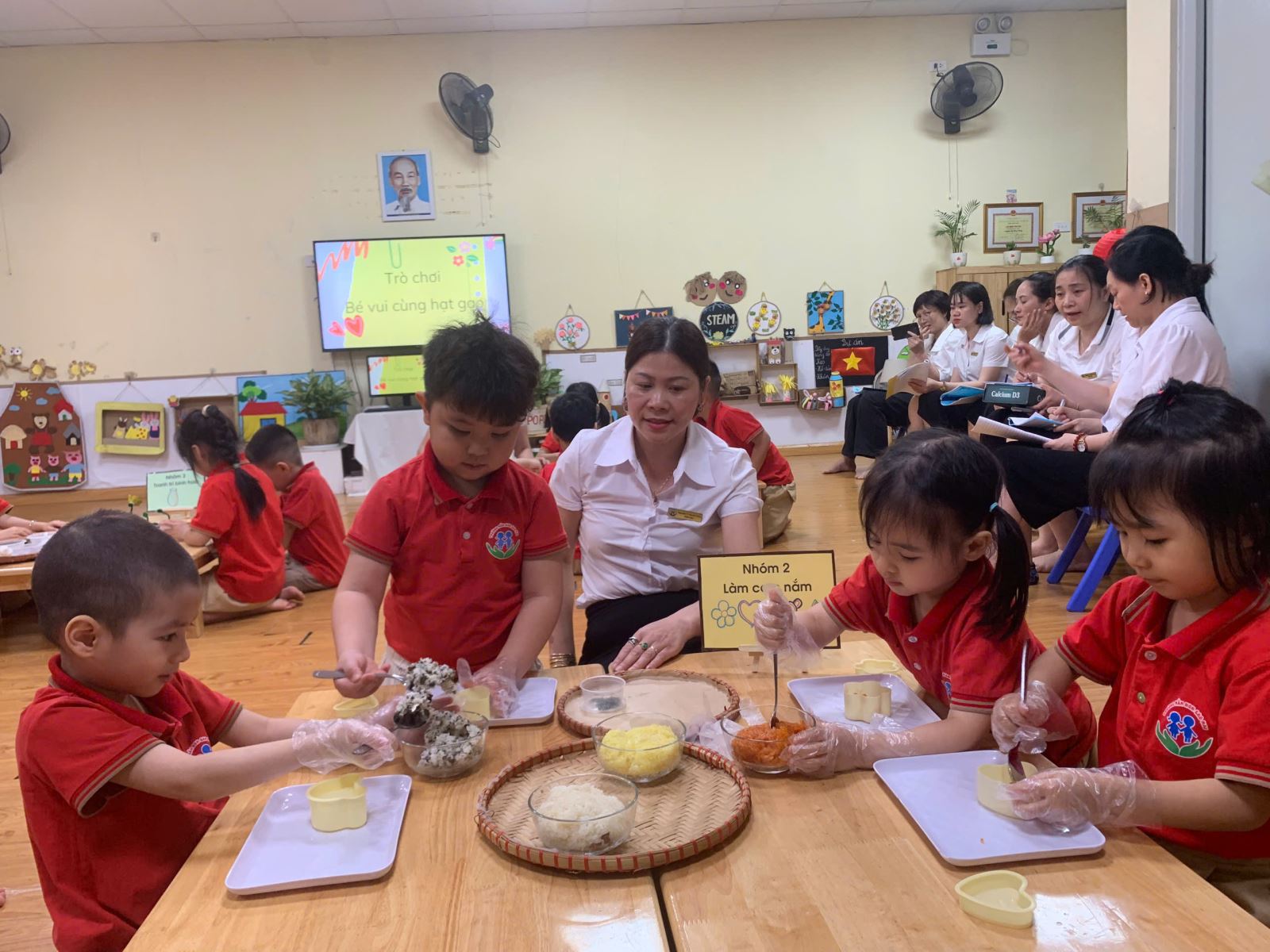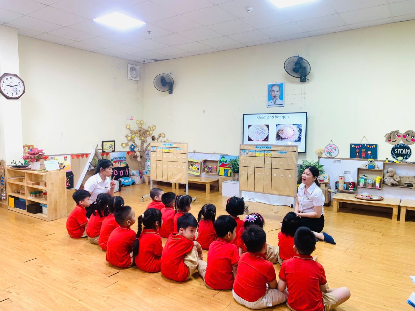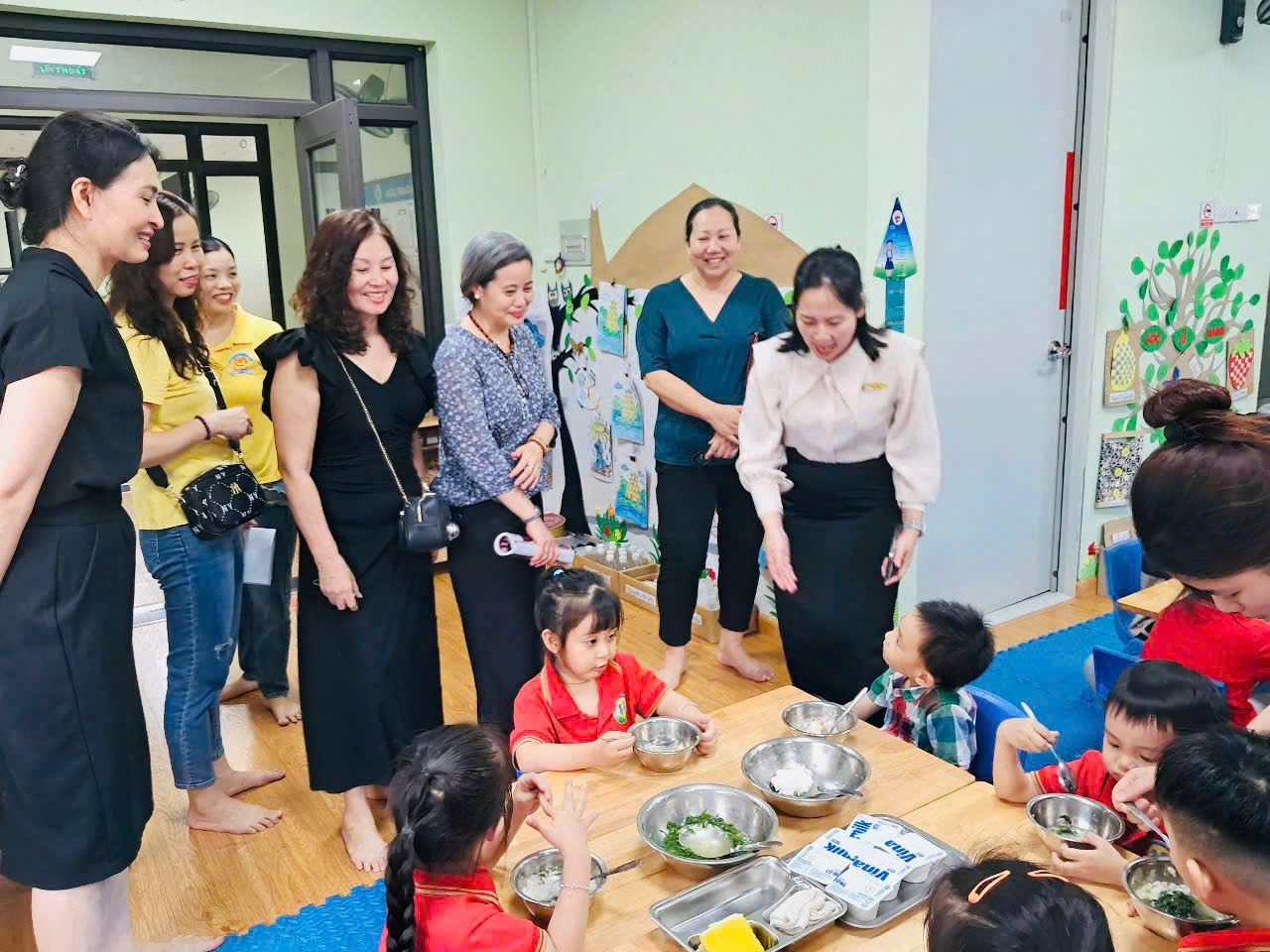 Buổi kiến tập với sự tham gia của Ban giám hiệu cùng 100% giáo viên nhà trường và khối nhóm lớp mẫu giáo độc lập. Giáo viên dự buổi kiến tập đã được thăm quan môi trường giáo dục lấy trẻ làm trung tâm, xanh - sạch - đẹp, thân thiện, an toàn của các lớp trong trường. Ngoài ra, Nhà trường đã lựa chọn tiết dạy phù hợp với lứa tuổi, sáng tạo đổi mới lấy trẻ làm trung tâm. Các tiết học đã diễn ra rất nhẹ nhàng với đồ dùng, chất liệu gần gũi với trẻ; trẻ hào hứng phấn khởi, tích cực tham gia các hoạt động.