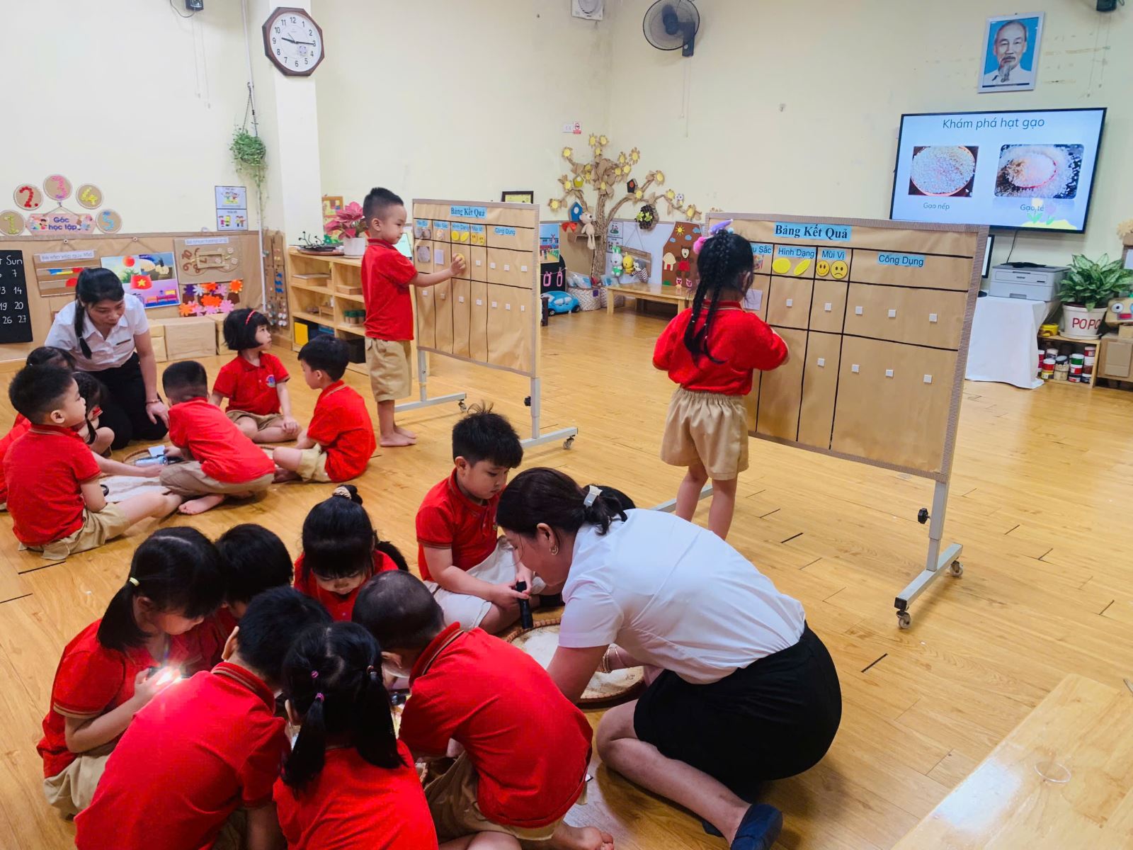 Cô giáo Nguyễn Thị Thanh Thủy lớp B4 với hoạt động khám phá 'Hạt gạo"