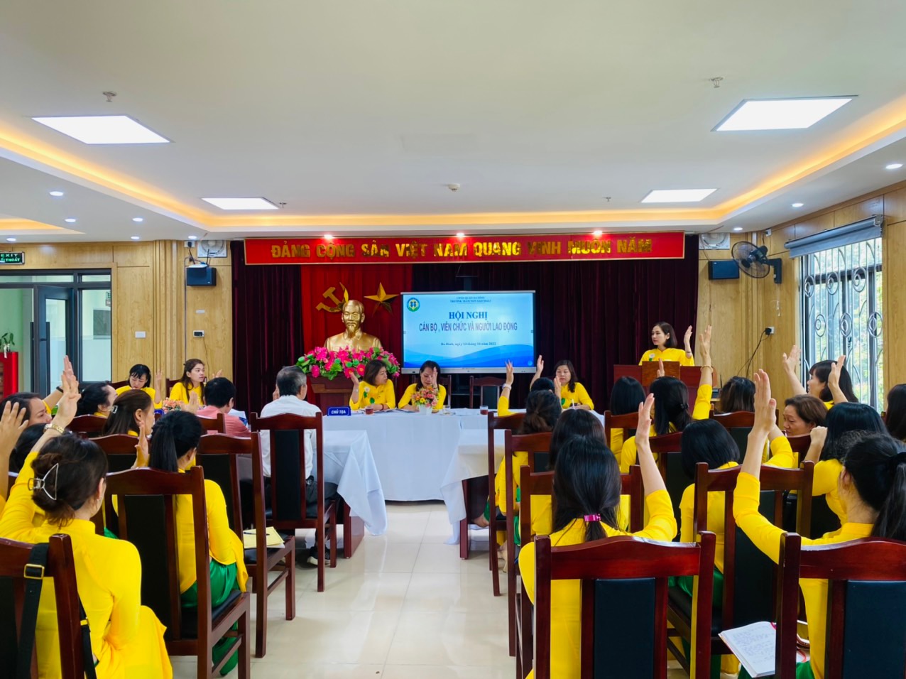 Sau buổi làm việc nghiêm túc và khẩn trương, hội nghị đã biểu quyết thông qua các chỉ tiêu cơ bản của nhiệm vụ năm học 2022-2023 và thống nhất các kế hoạch, chỉ tiêu đề ra, nêu cao tinh thần quyết tâm thực hiện bằng biểu quyết 100% ý kiến nhất trí.
