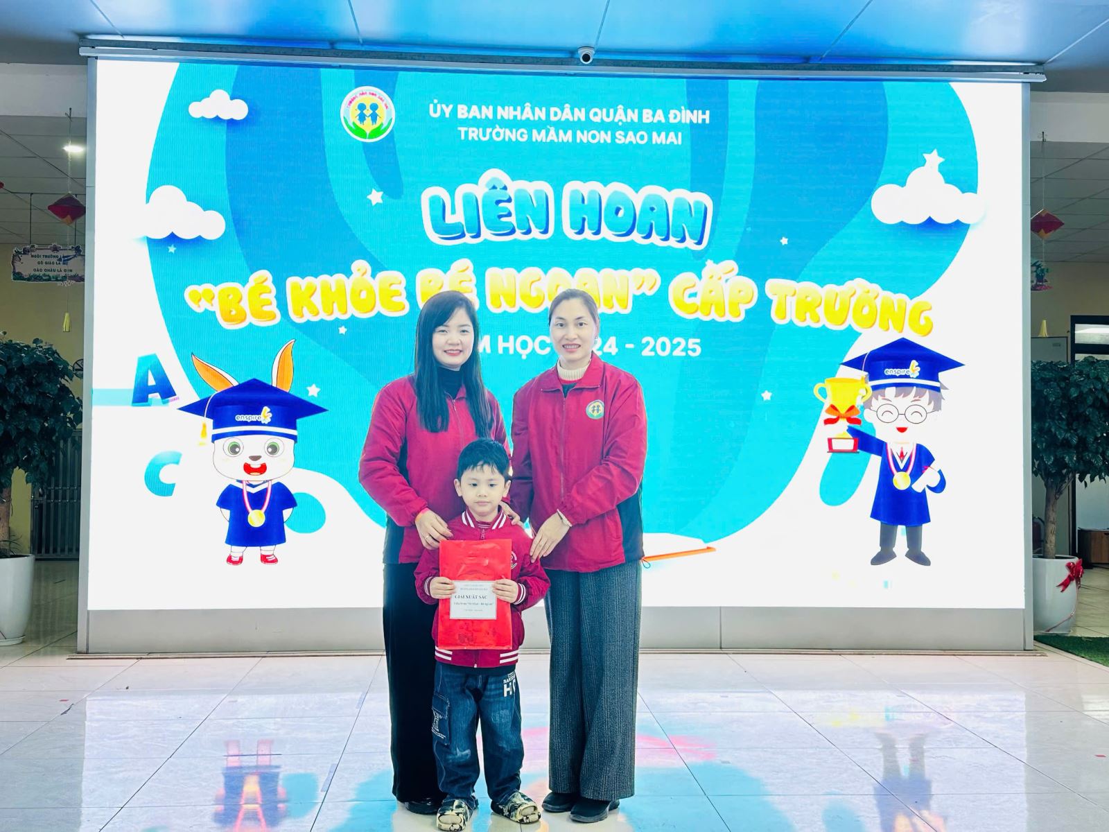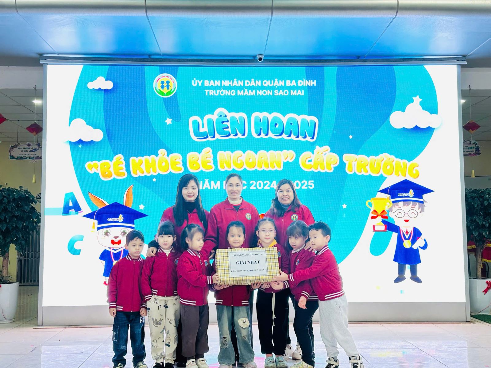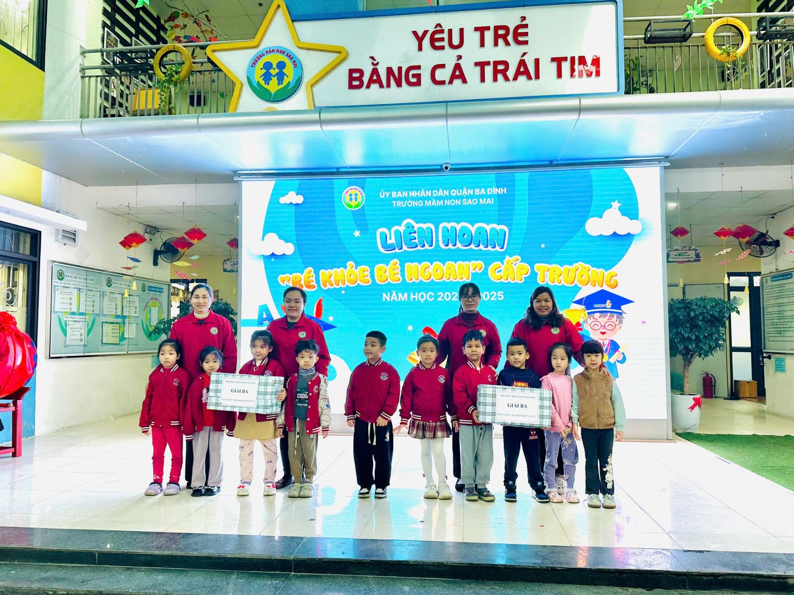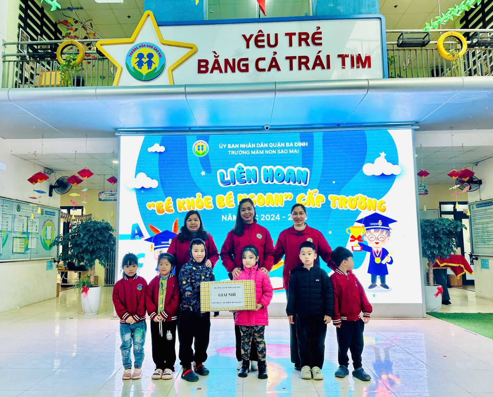 Hội thi đã trao giải tập thể với 1 giải Nhất cho lớp A2; 1 giải Nhì cho lớp A4; 2 giải Ba cho lớp A1 và A3. Về cá nhân, Nhà trường đã trao 2 giải xuất sắc cho các bé: Phan Quỳnh Anh - Lớp A3; Phạm Xuân Bách - Lớp A2.