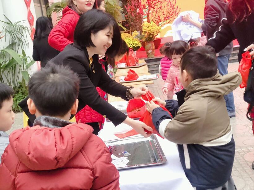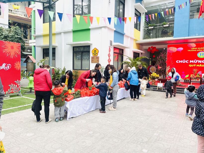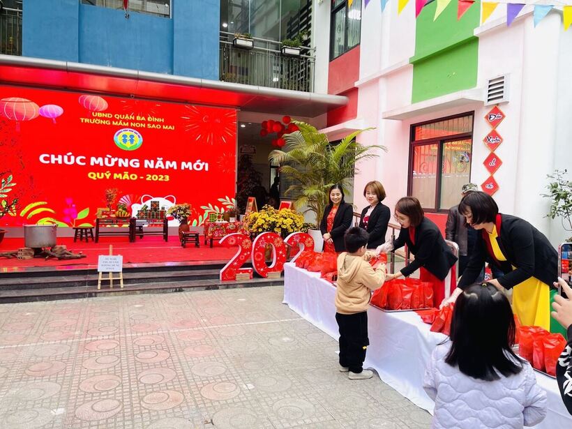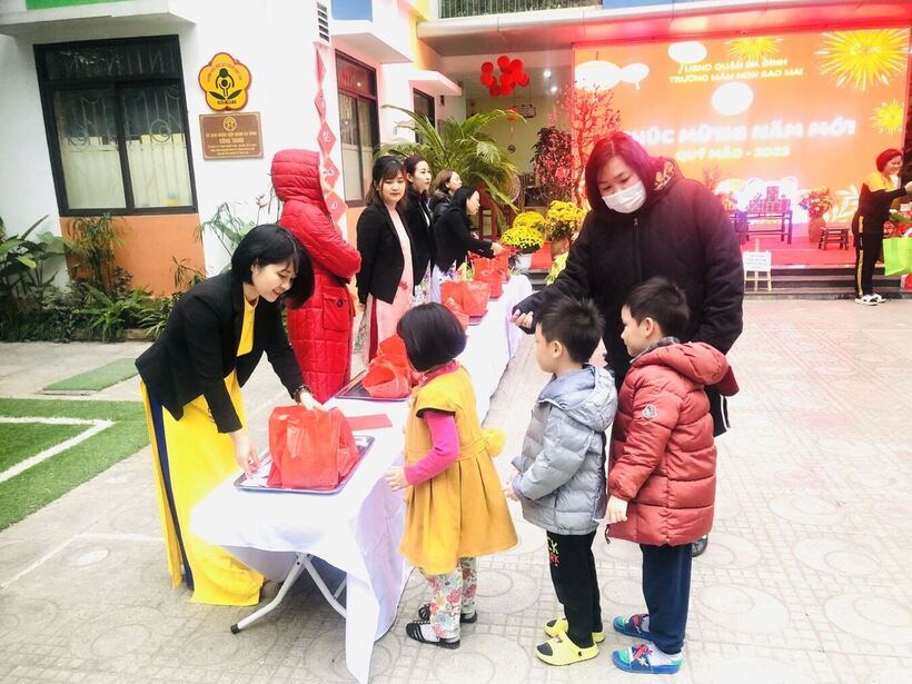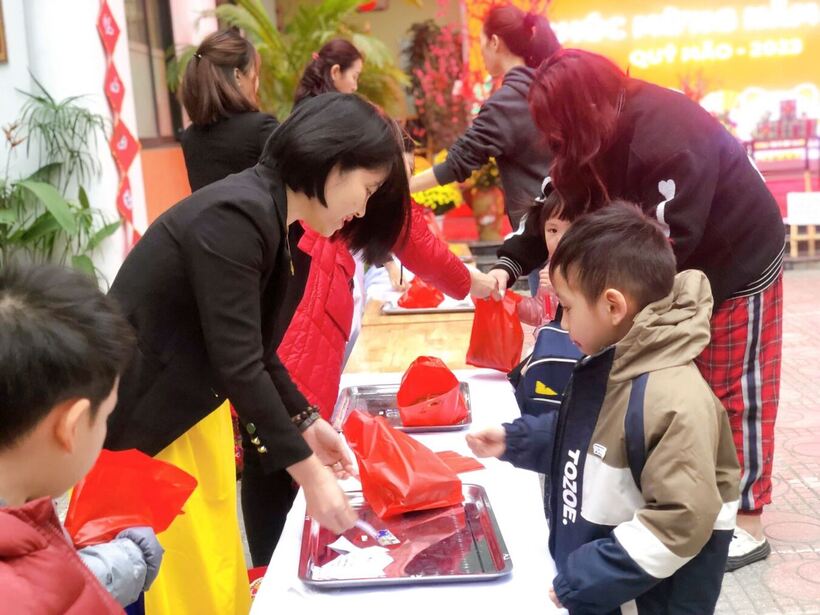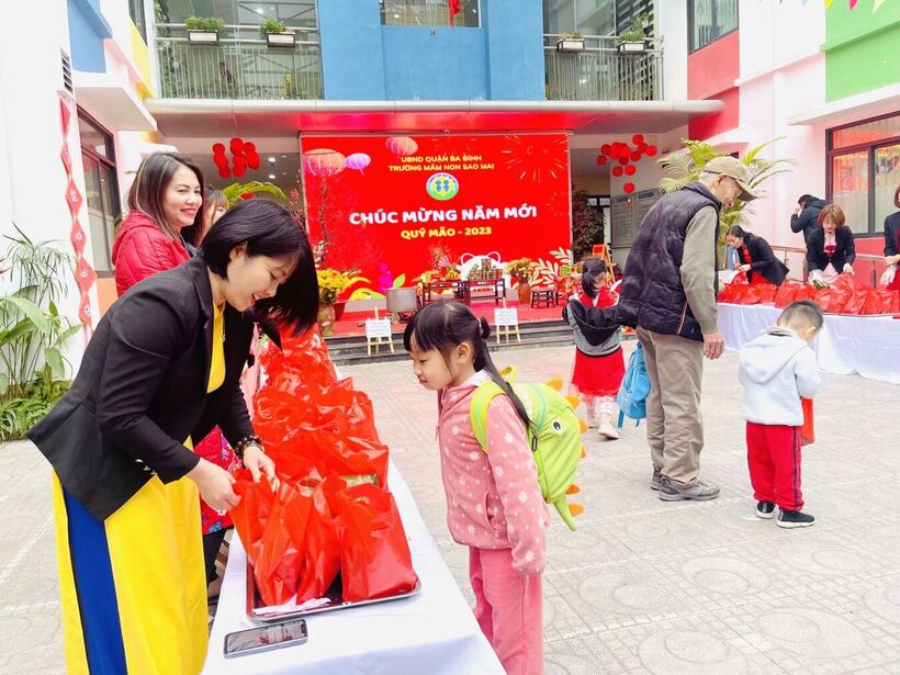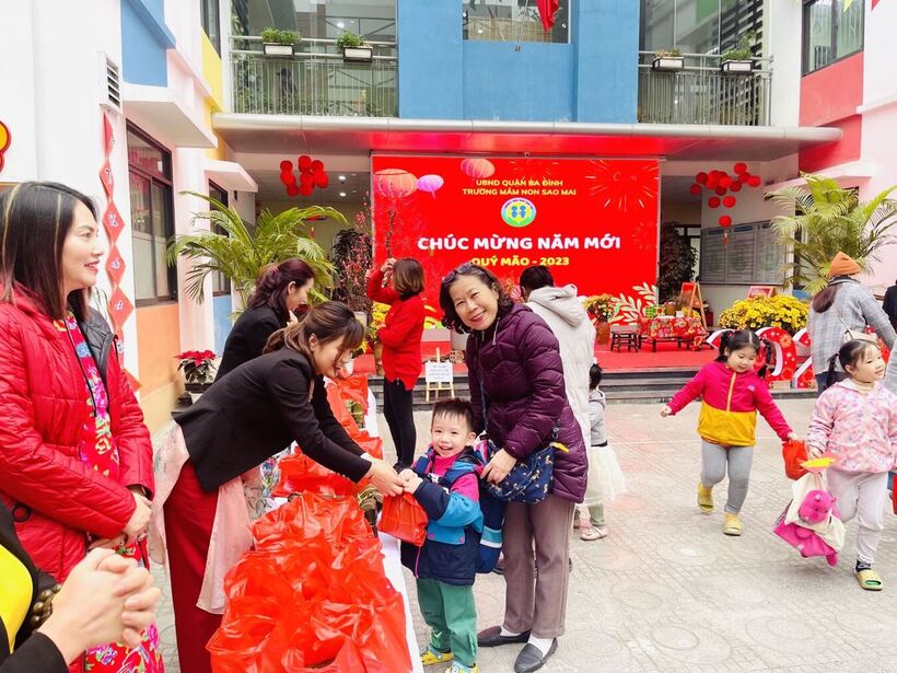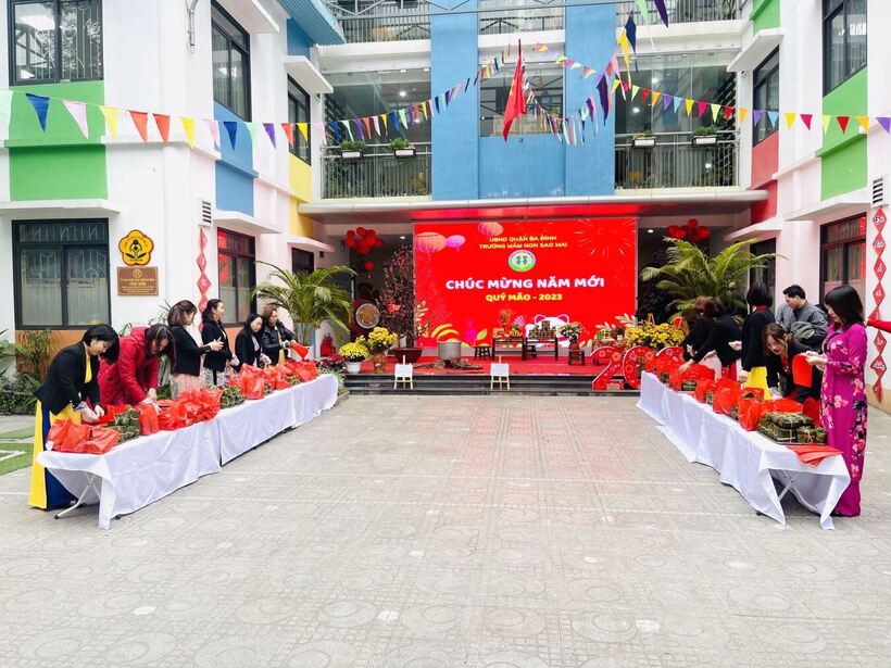 Trường Mầm non Sao Mai tổ chức phát bánh chưng cho trẻ nhân dịp Xuân Quý Mão 2023.