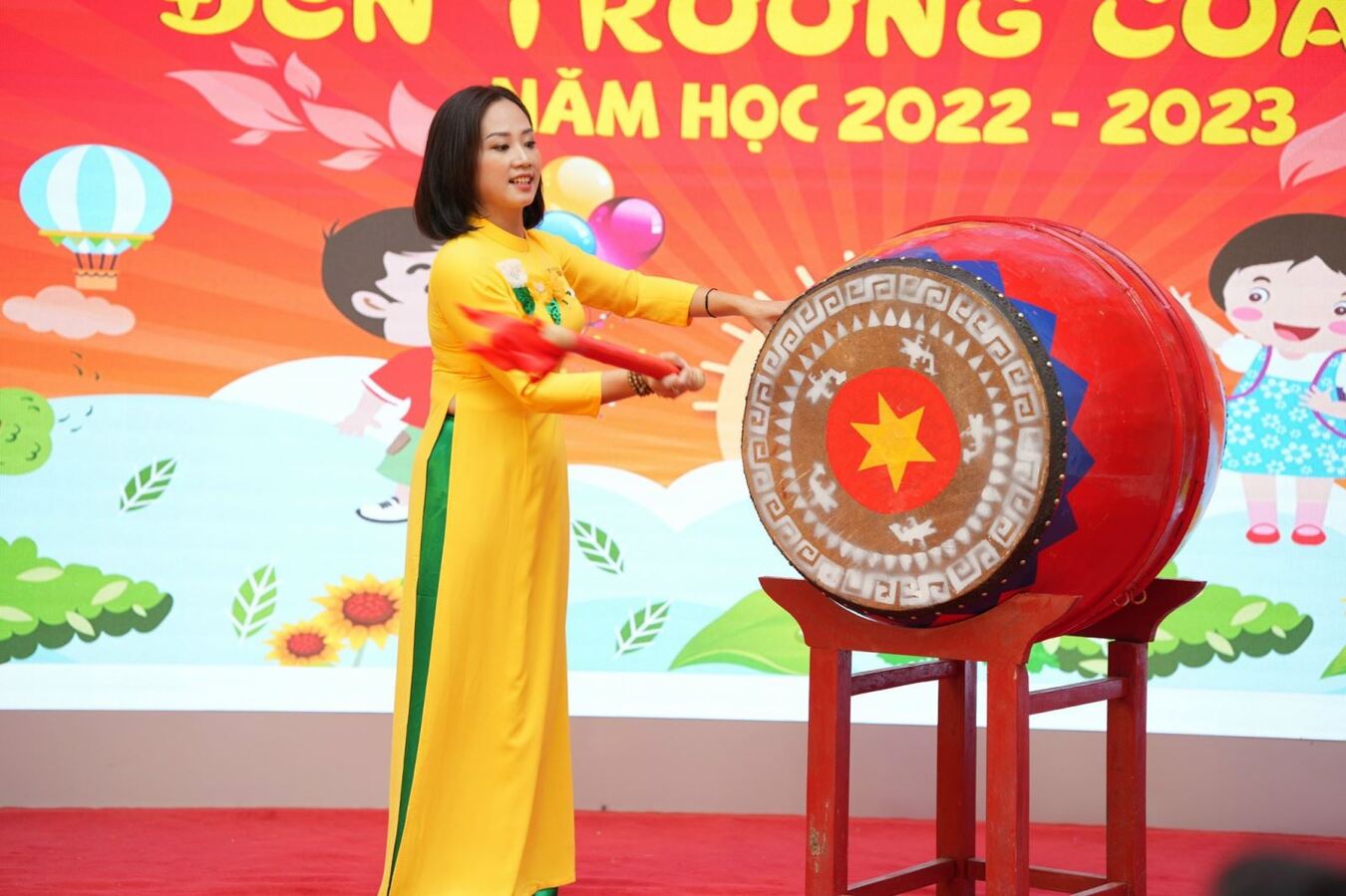 Tại Lễ khai giảng, Cô giáo Nguyễn Thị Thanh Hương – Bí thư Chi bộ, Hiệu trưởng nhà trường đọc diễn văn Khai giảng và đánh trống khai trường.
