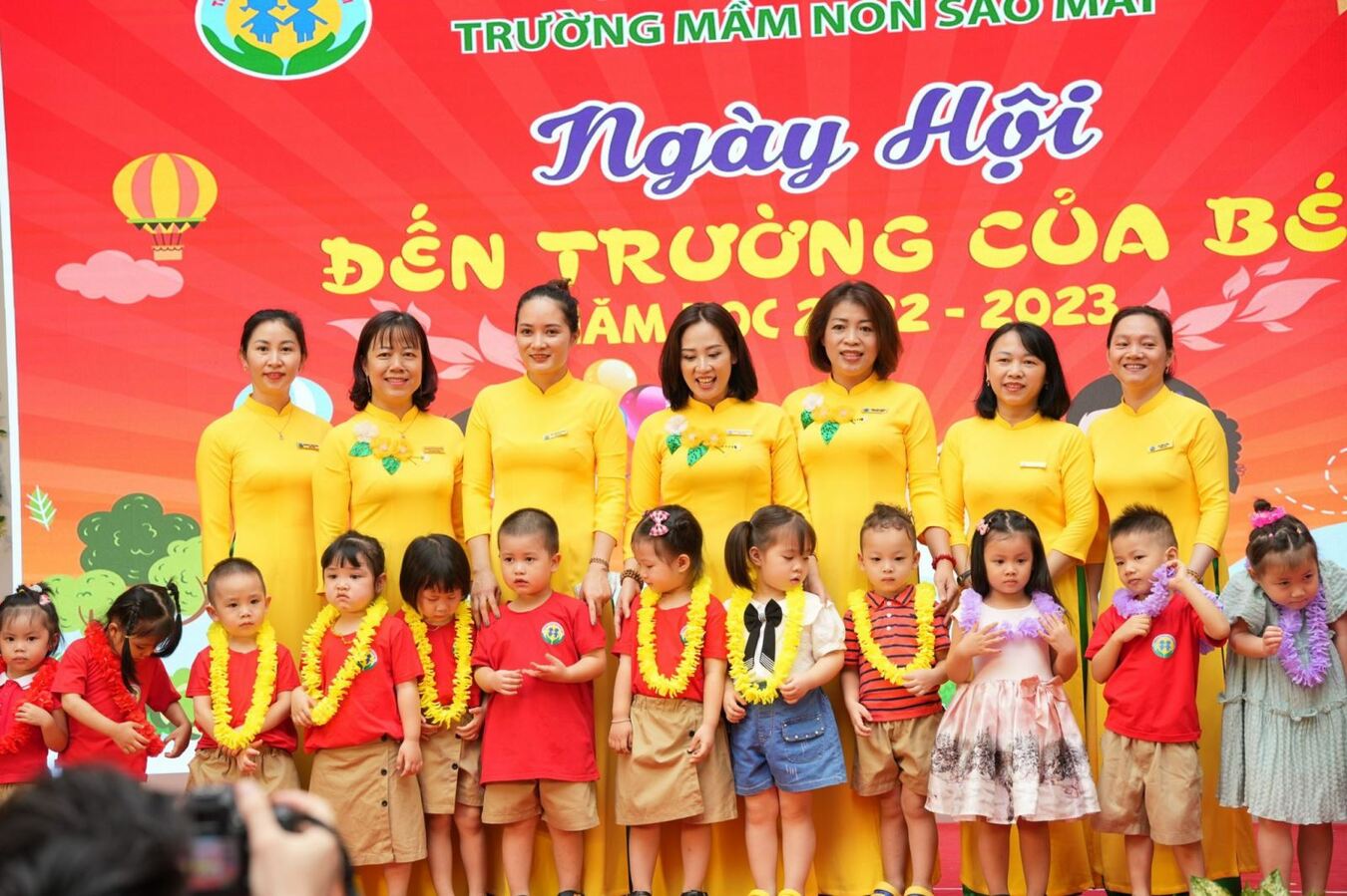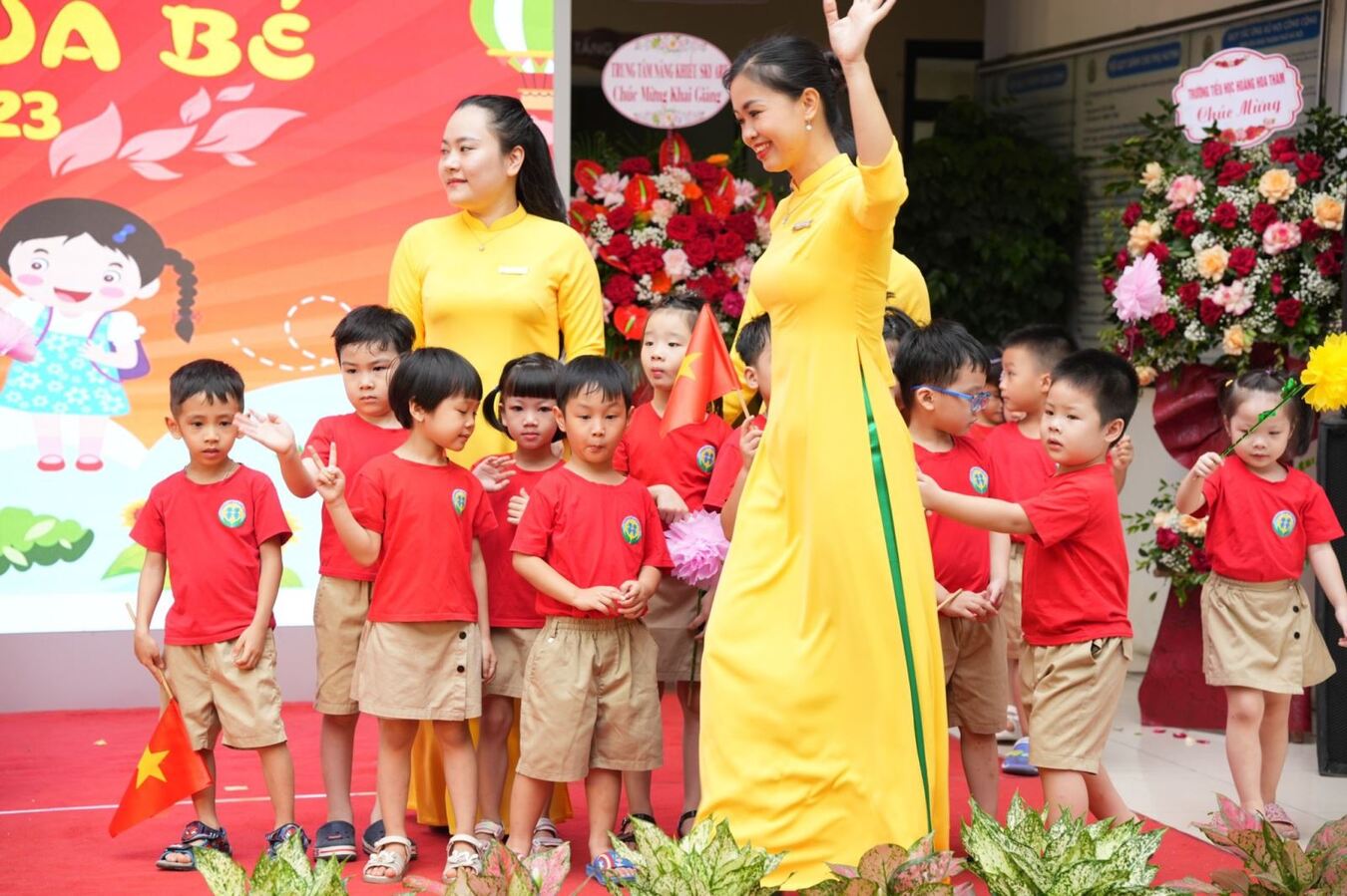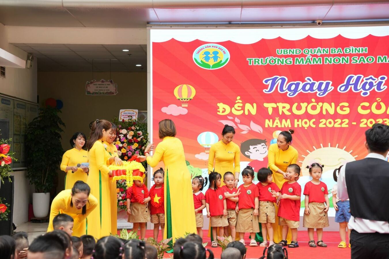 Hôm nay 05/09/2022, hòa chung với không khí vui tươi của cả nước thi đua lập thành tích chào mừng kỉ niệm 77 năm Cách mạng tháng Tám và Quốc khánh 2/9, bé và cô trường Mầm non Sao Mai trang trọng tổ chức Lễ Khai giảng năm học mới - Năm học 2022-2023.