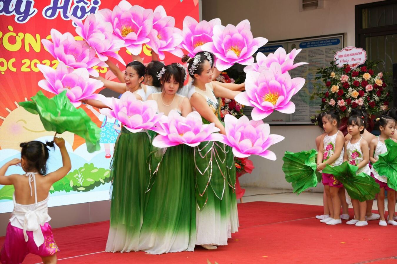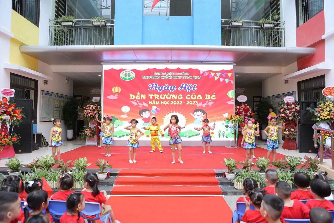 Trong ngày Hội lớn, Cô và trẻ nhà trường đã được đón nhận những bó hoa tươi thắm thể hiện sự quan tâm của Lãnh đạo UBND quận, Phòng Giáo dục quận Ba Đình, Lãnh đạo địa phương, của cha mẹ học sinh, của các tổ chức doanh nghiệp,...