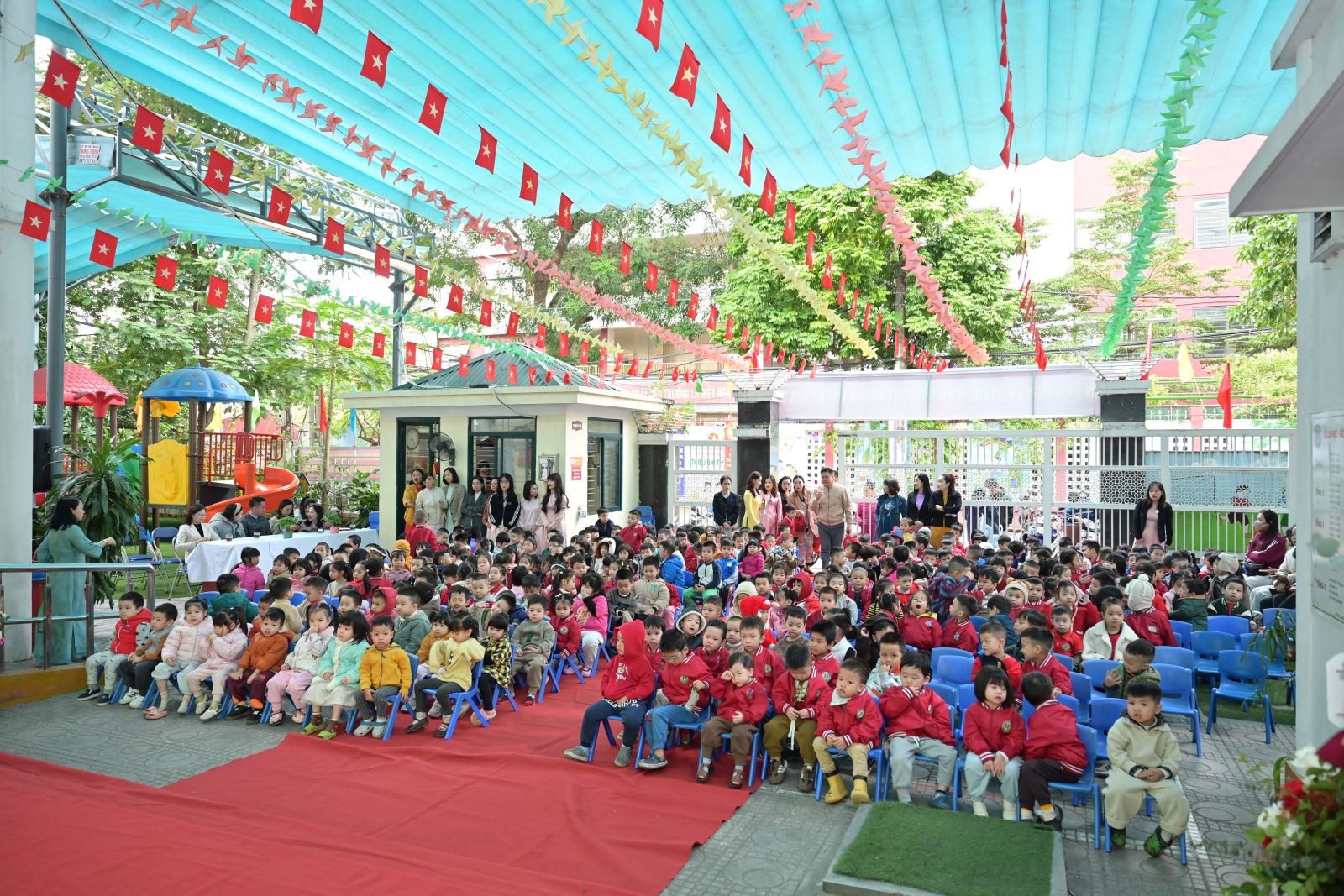 Mở đầu chương trình, các đại biểu tham dự được thưởng thức các tiết mục văn nghệ đặc sắc chào mừng ngày Nhà giáo Việt Nam 20/11 do các cô giáo và các con học sinh các khối lớp của trường thể hiện.