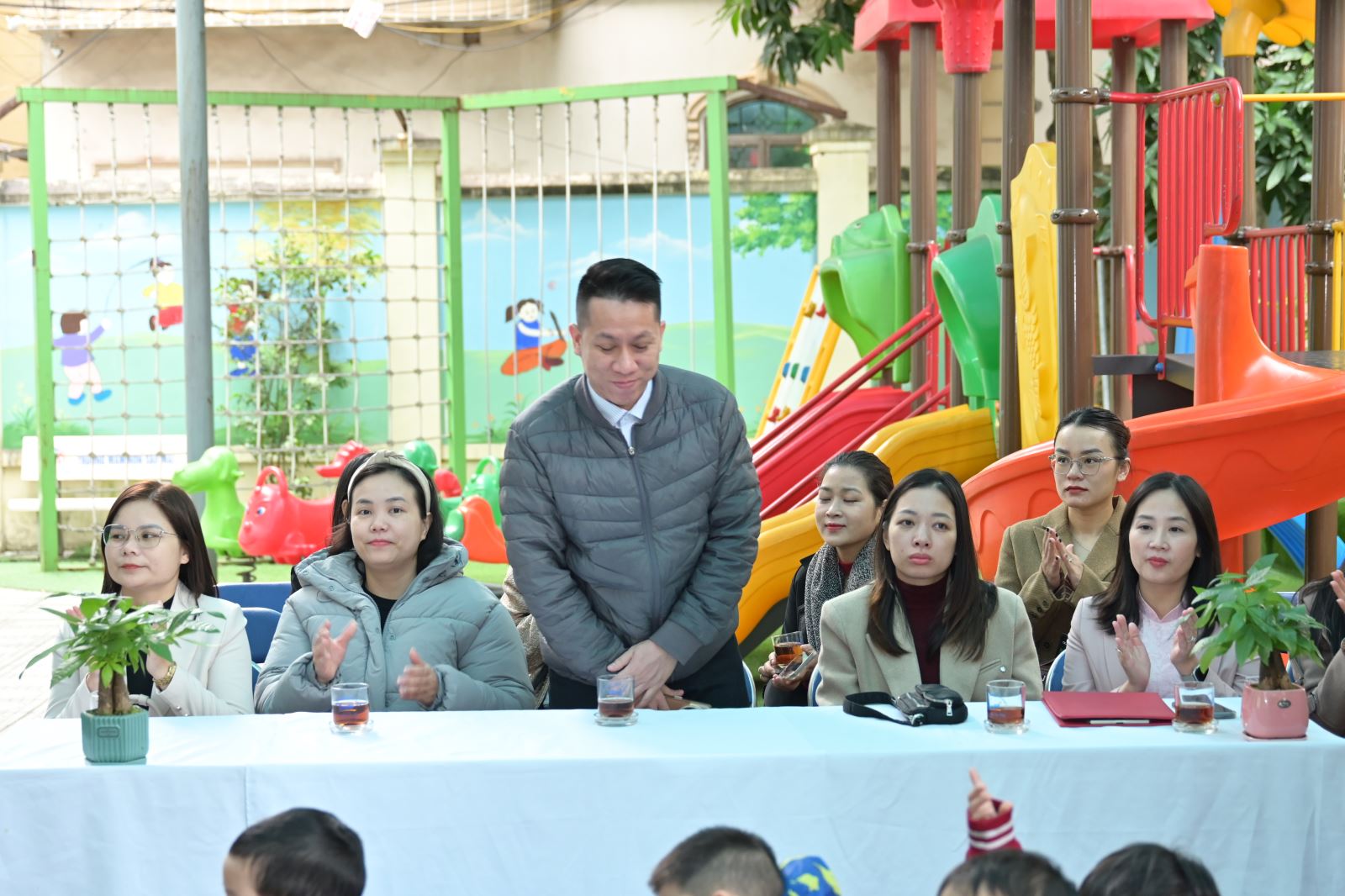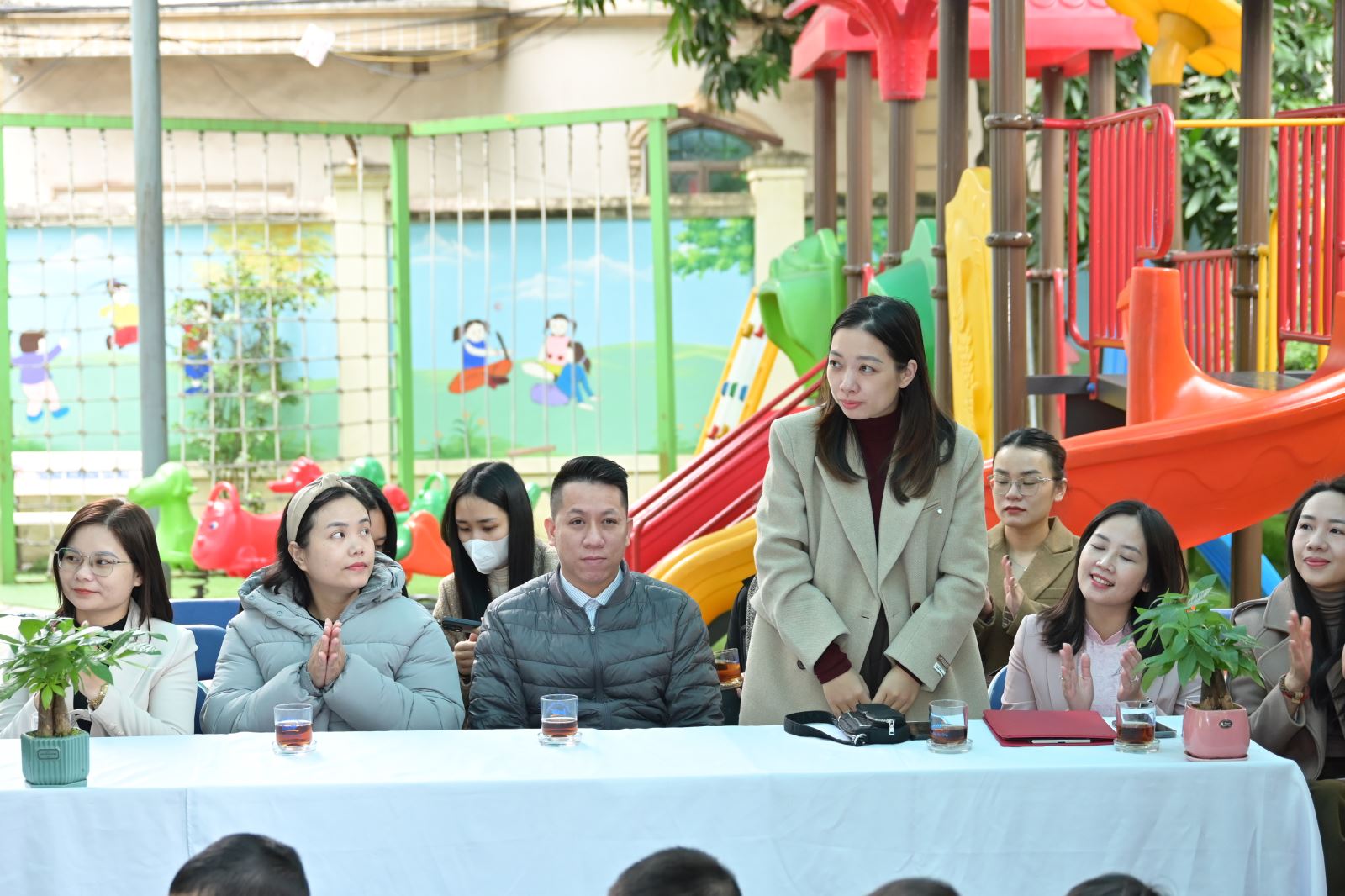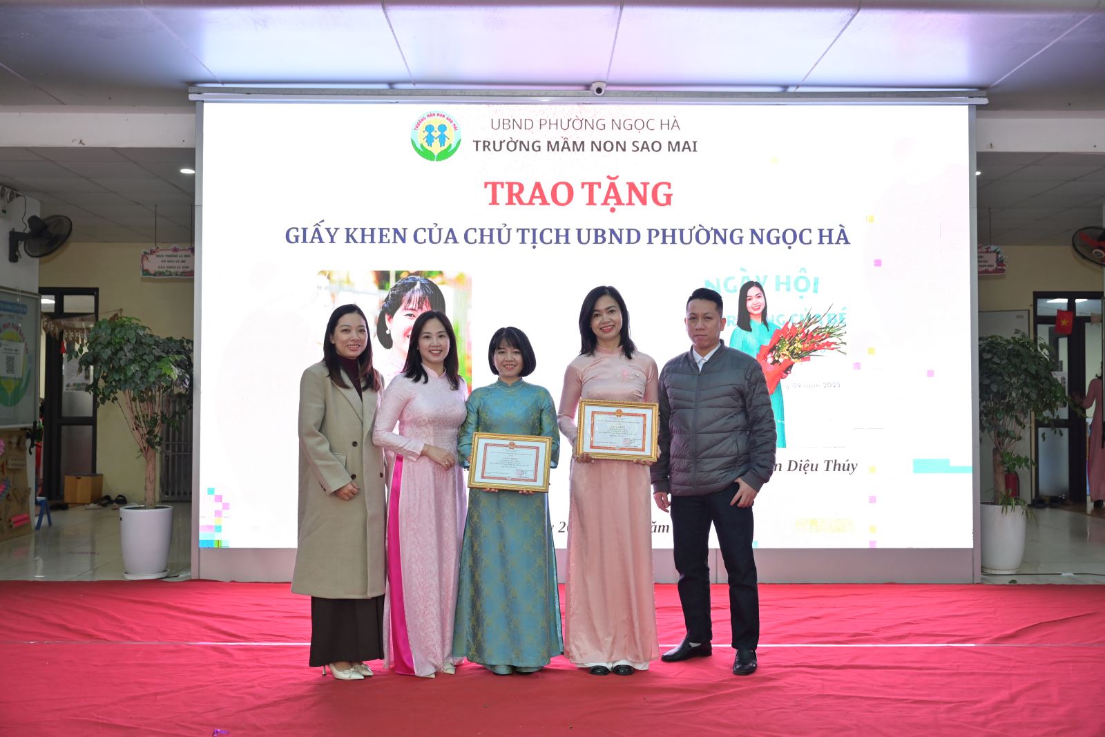 Nhà trường cũng vinh danh 2 cô giáo đạt thành tích cao trong phong trào thi đua: cô giáo Nguyễn Diệu Thúy và cô giáo Nguyễn Thùy Dung