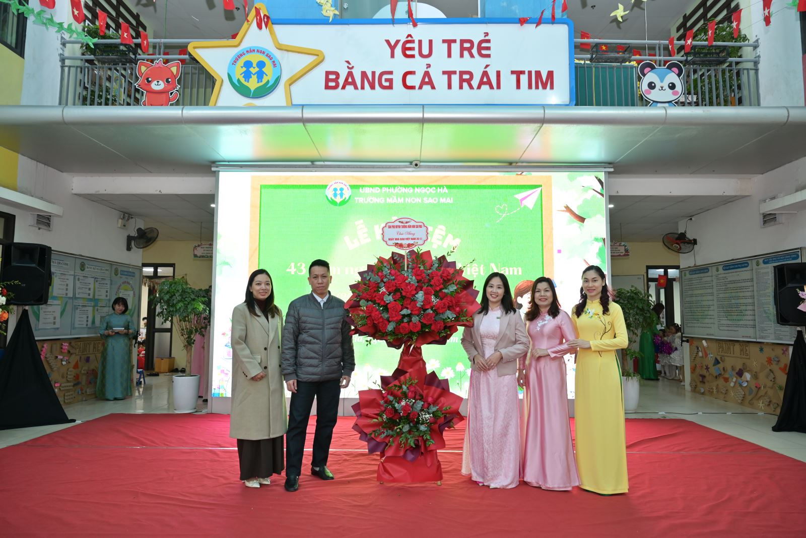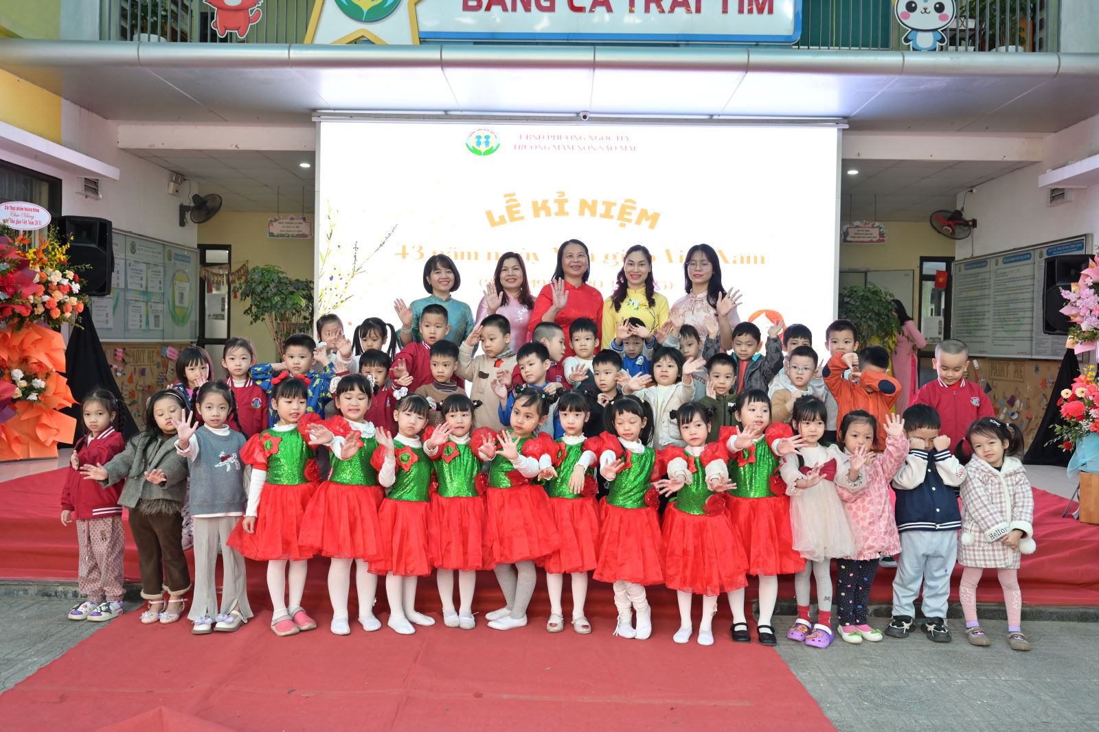 Hoà chung không khí tưng bừng, phấn khởi của ngành giáo dục cả nước kỷ niệm ngày Nhà giáo Việt Nam. Sáng ngày 20/11/20265 Trường Mầm non Sao Mai đã long trọng tổ chức “Lễ kỷ niệm 43 năm ngày Nhà giáo Việt Nam 20/11” (20/11/1982 - 20/11/2025) trong không khí vui tươi và đầy cảm xúc. Đây là hoạt động thường niên của nhà trường nhằm tôn vinh, thể hiện tình cảm biết ơn, kính trọng và truyền thống tôn sư trọng đạo đối với các thầy cô giáo đã và đang ngày đêm miệt mài chăm sóc, dạy dỗ những mầm non tương lai của Đất nước.