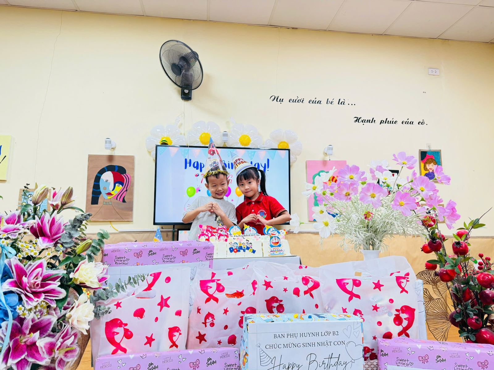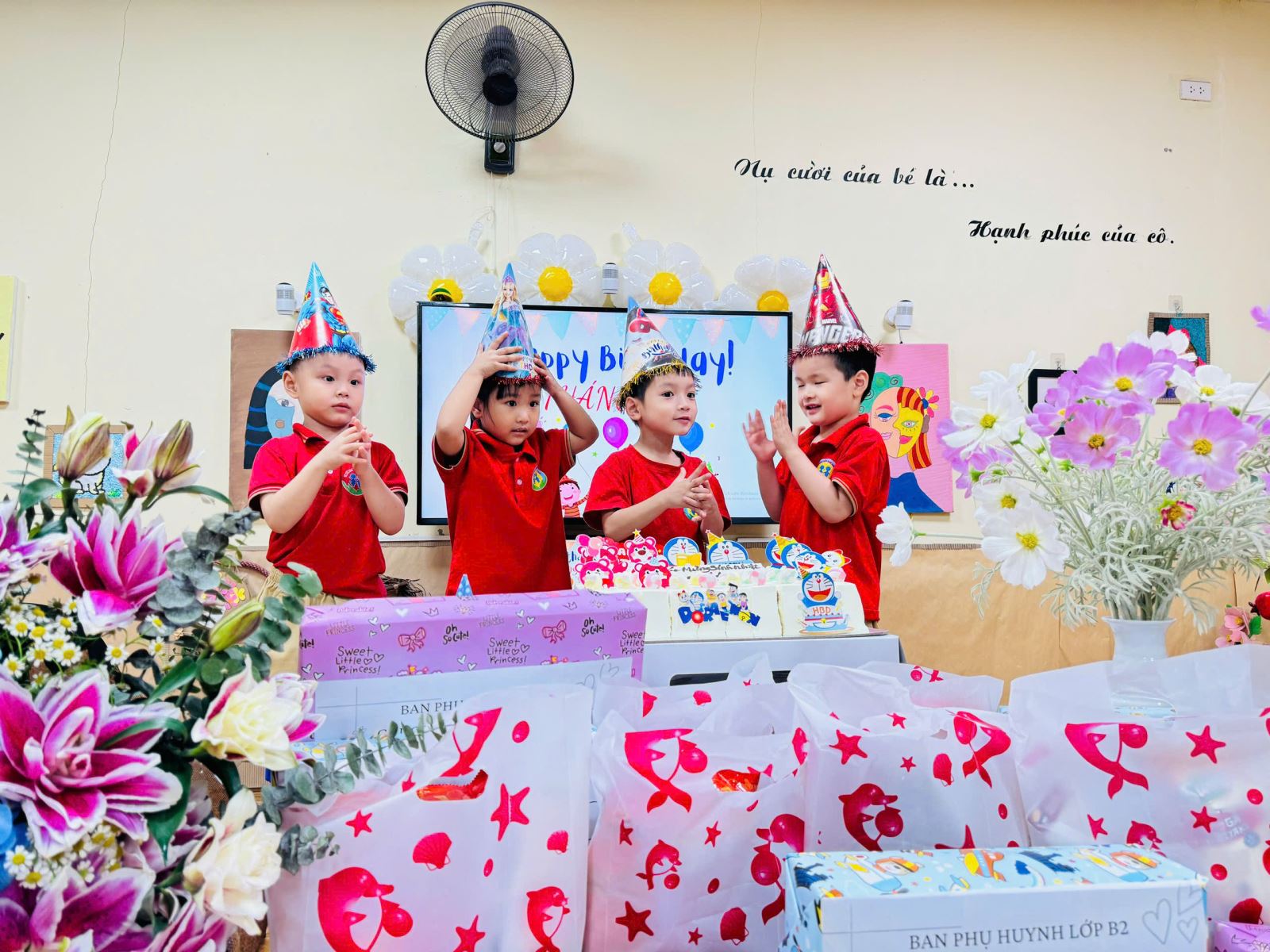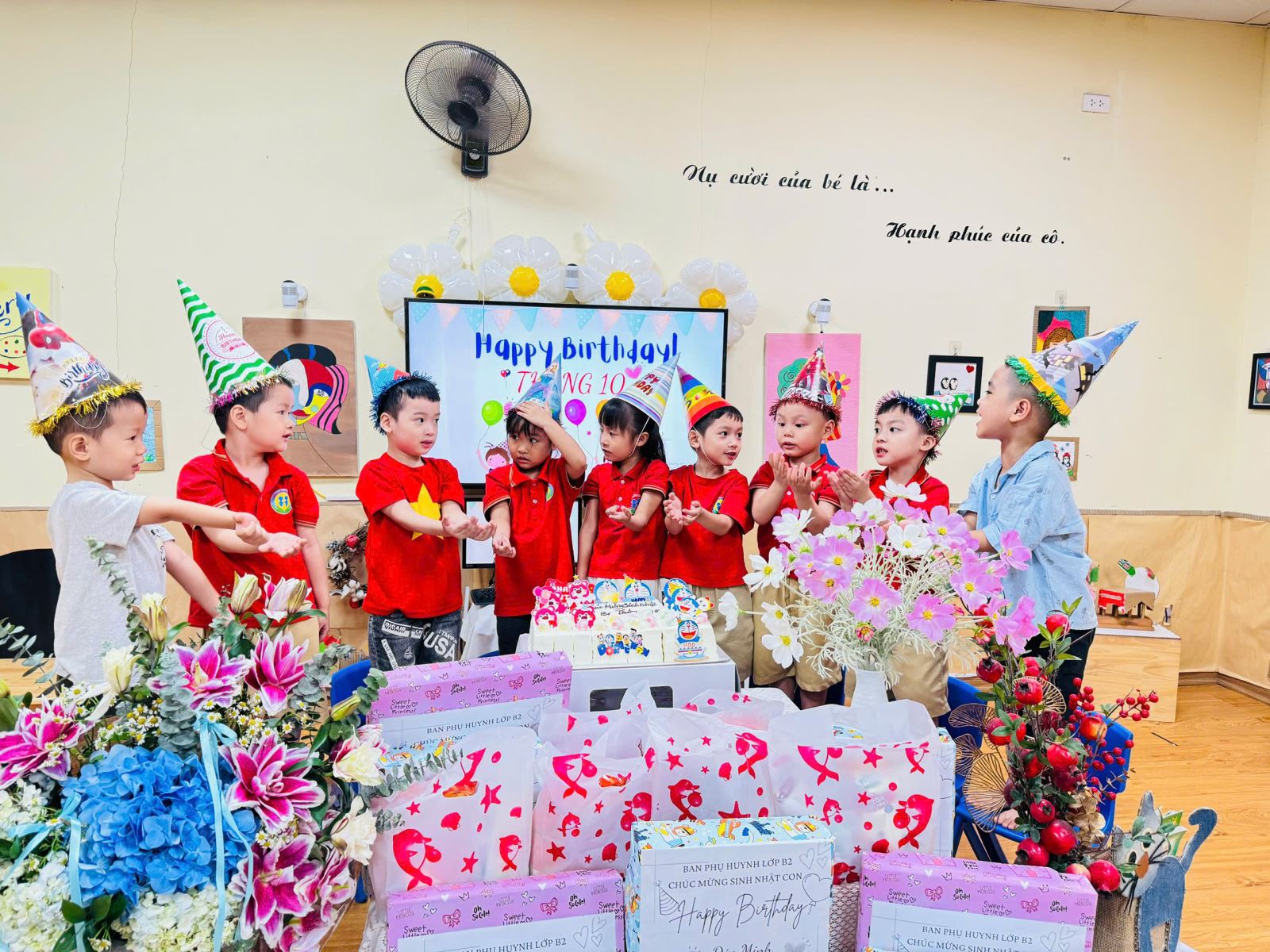 Hàng ngày khi đến lớp các con không chỉ được vui chơi với bạn bè mà còn được các cô yêu thương chăm sóc, dạy dỗ. Các cô luôn tạo cho các con môi trường vui vẻ, thân thiện, tạo không khí và tâm lý vui vẻ cho các con khi đến lớp thông qua việc tổ chức các hoạt động trên lớp hàng ngày. Hiểu được điều đó nên với hoạt động tổ chức sinh nhật tháng cho các con lớp B2 luôn là một hoạt động rất ý nghĩa, giúp trẻ mạnh dạn, tự tin, thân thiện hơn khi giao tiếp hòa mình với các bạn trong buổi sinh nhật ngoài ra bữa tiệc sinh nhật theo tháng tại lớp còn tạo cho trẻ sự vui vẻ phấn khích, niềm vui hứng khởi mỗi khi tới lớp.