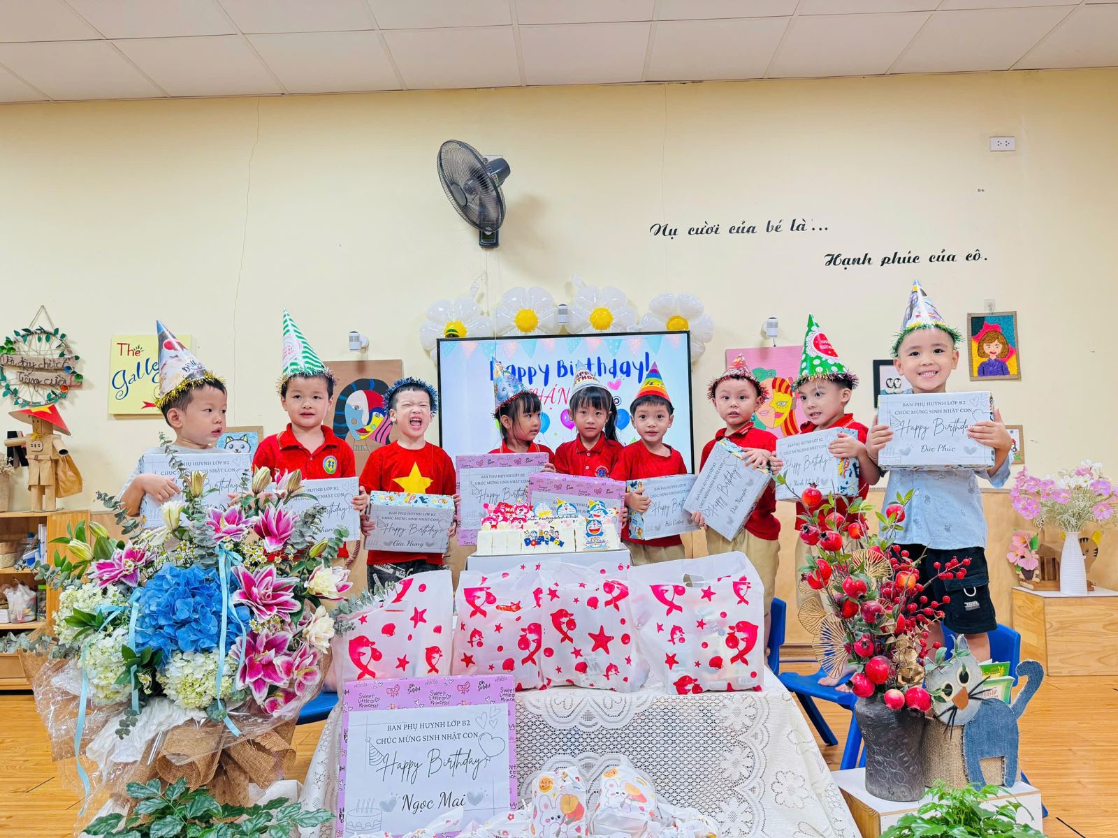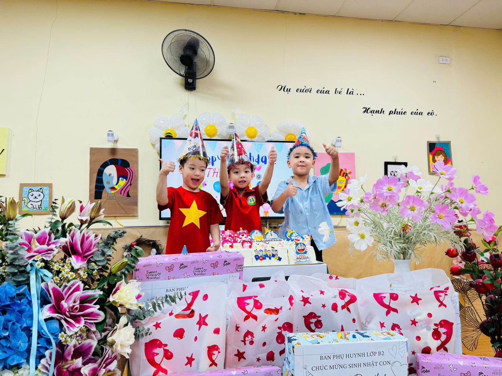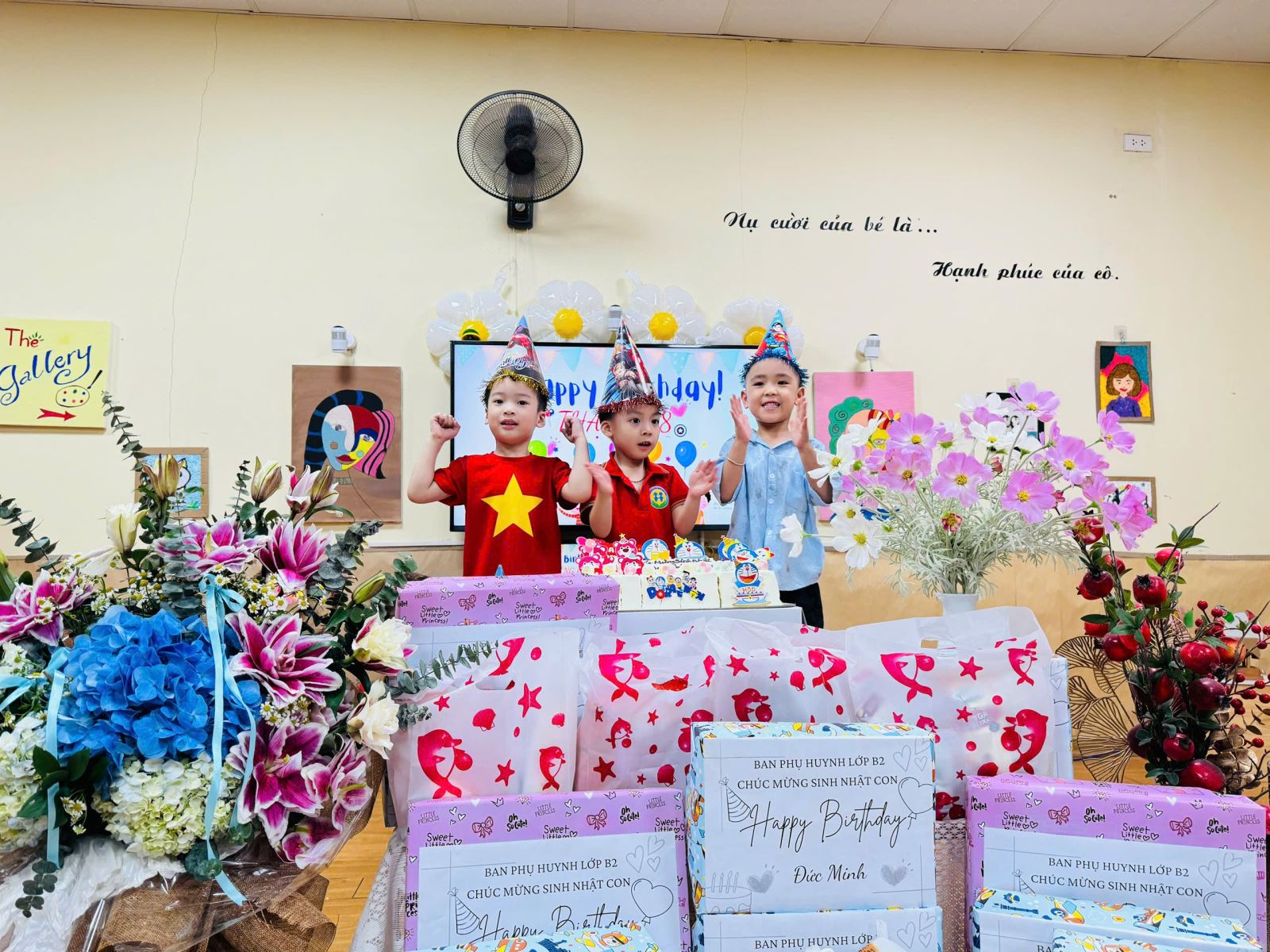 Hàng ngày khi đến lớp các con không chỉ được vui chơi với bạn bè mà còn được các cô yêu thương chăm sóc, dạy dỗ. Các cô luôn tạo cho các con môi trường vui vẻ, thân thiện, tạo không khí và tâm lý vui vẻ cho các con khi đến lớp thông qua việc tổ chức các hoạt động trên lớp hàng ngày. Hiểu được điều đó nên với hoạt động tổ chức sinh nhật tháng cho các con lớp B2 luôn là một hoạt động rất ý nghĩa, giúp trẻ mạnh dạn, tự tin, thân thiện hơn khi giao tiếp hòa mình với các bạn trong buổi sinh nhật ngoài ra bữa tiệc sinh nhật theo tháng tại lớp còn tạo cho trẻ sự vui vẻ phấn khích, niềm vui hứng khởi mỗi khi tới lớp.
