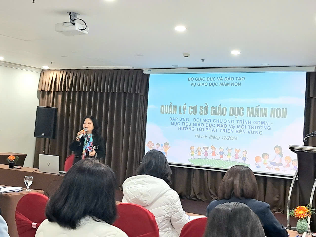 Tại hội nghị, Bộ GD&ĐT hướng dẫn các cán bộ quản lý, giáo viên về công tác quản lý cơ sở GDMN đáp ứng đổi mới chương trình GDMN bao gồm mục tiêu giáo dục bảo vệ môi trường hướng tới phát triển bền vững. Cụ thể, quản lý việc phát triển chương trình giáo dục của nhà trường gắn với mục tiêu giáo dục bảo vệ môi trường hướng tới phát triển bền vững; quản lý việc xây dựng kế hoạch và tổ chức thực hiện kế hoạch các hoạt động giáo dục của giáo viên trong thực hiện chương trình GDMN có lồng ghép gắn với việc thực hiện mục tiêu giáo dục bảo vệ môi trường phù hợp với tâm sinh lý trẻ em, từng độ tuổi theo chương trình GDMN; bảo đảm các điều kiện về cơ sở vật chất, thiết bị dạy học, đồ chơi và nhận thức, năng lực của đội ngũ trong thực hiện các hoạt động trong nhà trường và thực hiện chương trình…