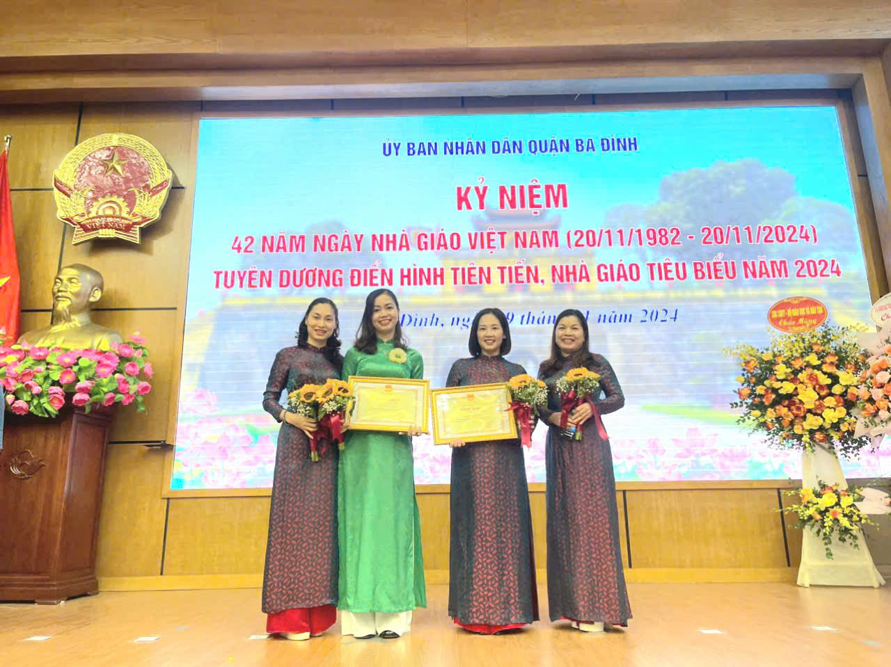 "Lễ kỷ niệm 42 năm Ngày Nhà giáo Việt Nam (20/11/1982 - 20/11/2024), tuyên dương điển hình tiên tiến, nhà giáo tiêu biểu năm 2024" không chỉ là dịp để ghi nhận và tuyên dương các điển hình tiên tiến, nhà giáo tiêu biểu trong toàn quận Ba Đình, mà còn là động lực để các nhà trường và các cá nhân tiếp tục phấn đấu, xây dựng môi trường giáo dục toàn diện.