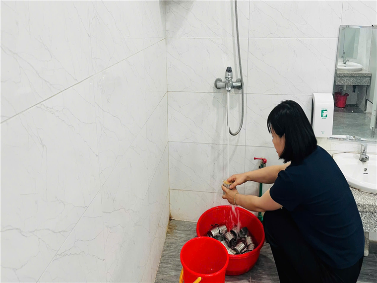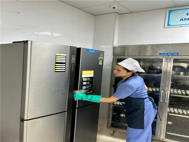 Ngoài việc nghiêm túc thực hiện theo lịch vệ sinh hằng ngày tại các lớp, các phòng chức năng, khu vực bếp ăn, khu vệ sinh, sân chơi…Lịch tổng vệ sinh cuối tuần là việc làm thường xuyên của các bác, các cô Trường Mầm non Sao Mai.