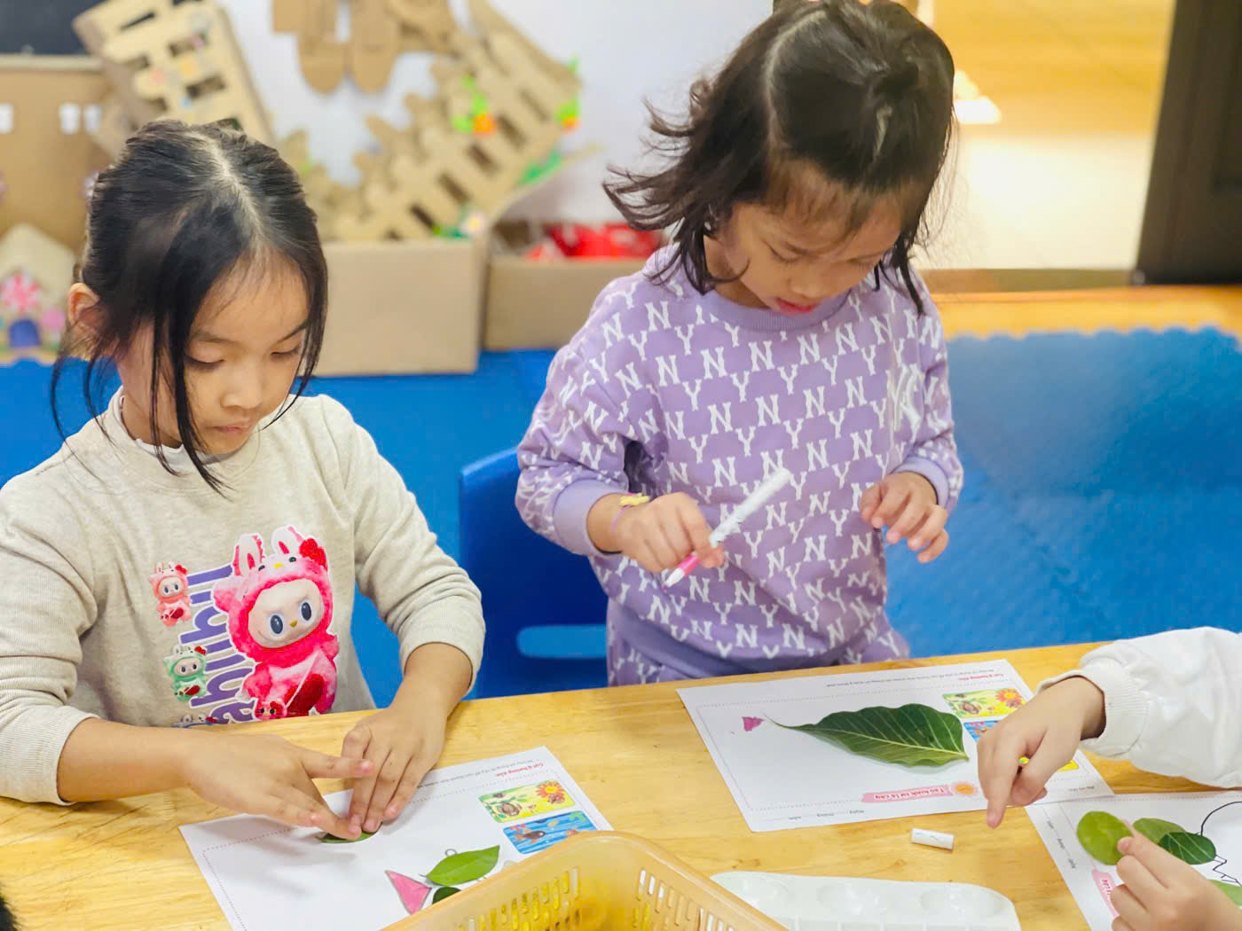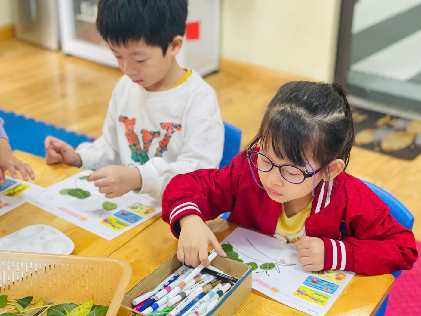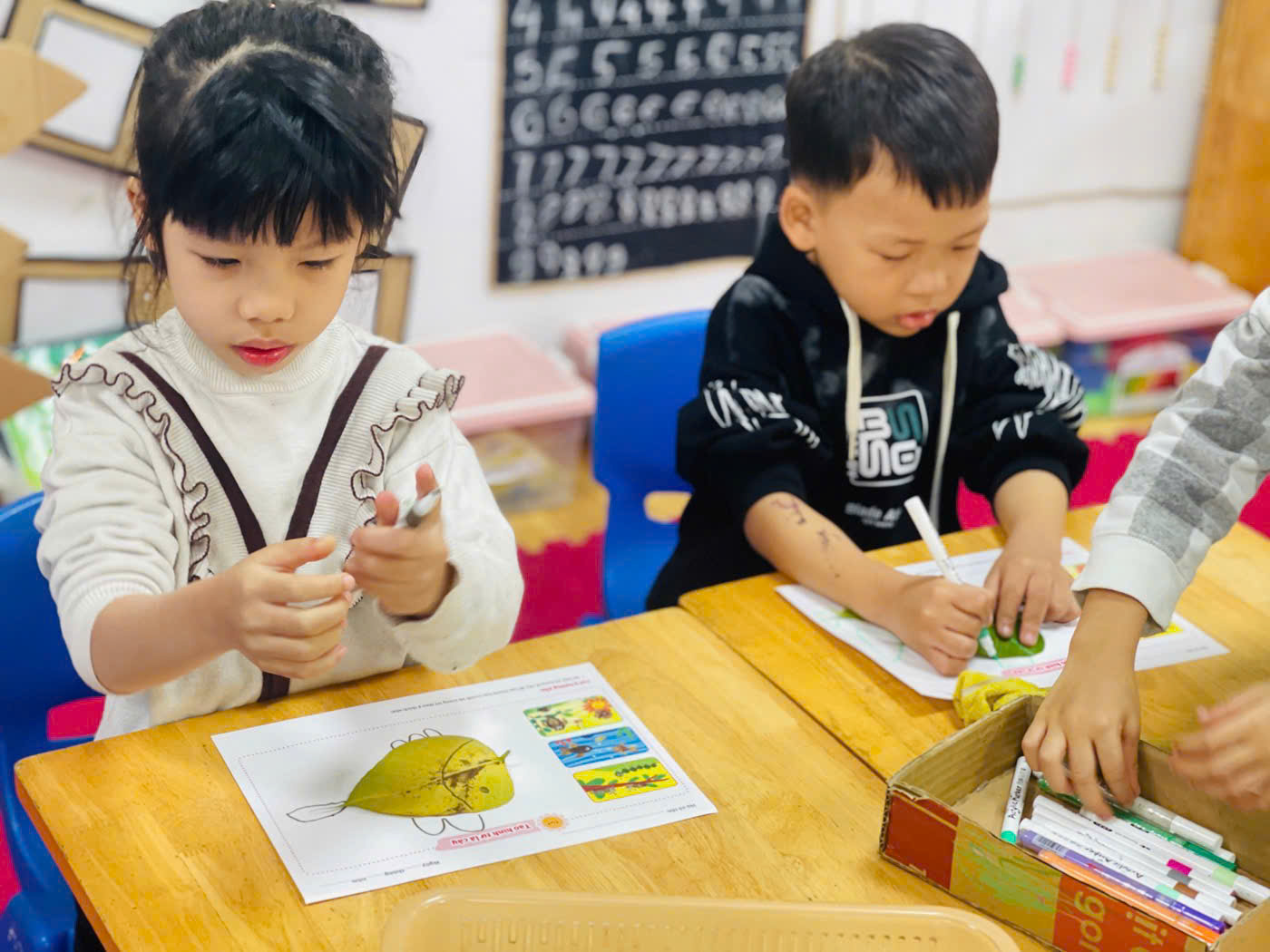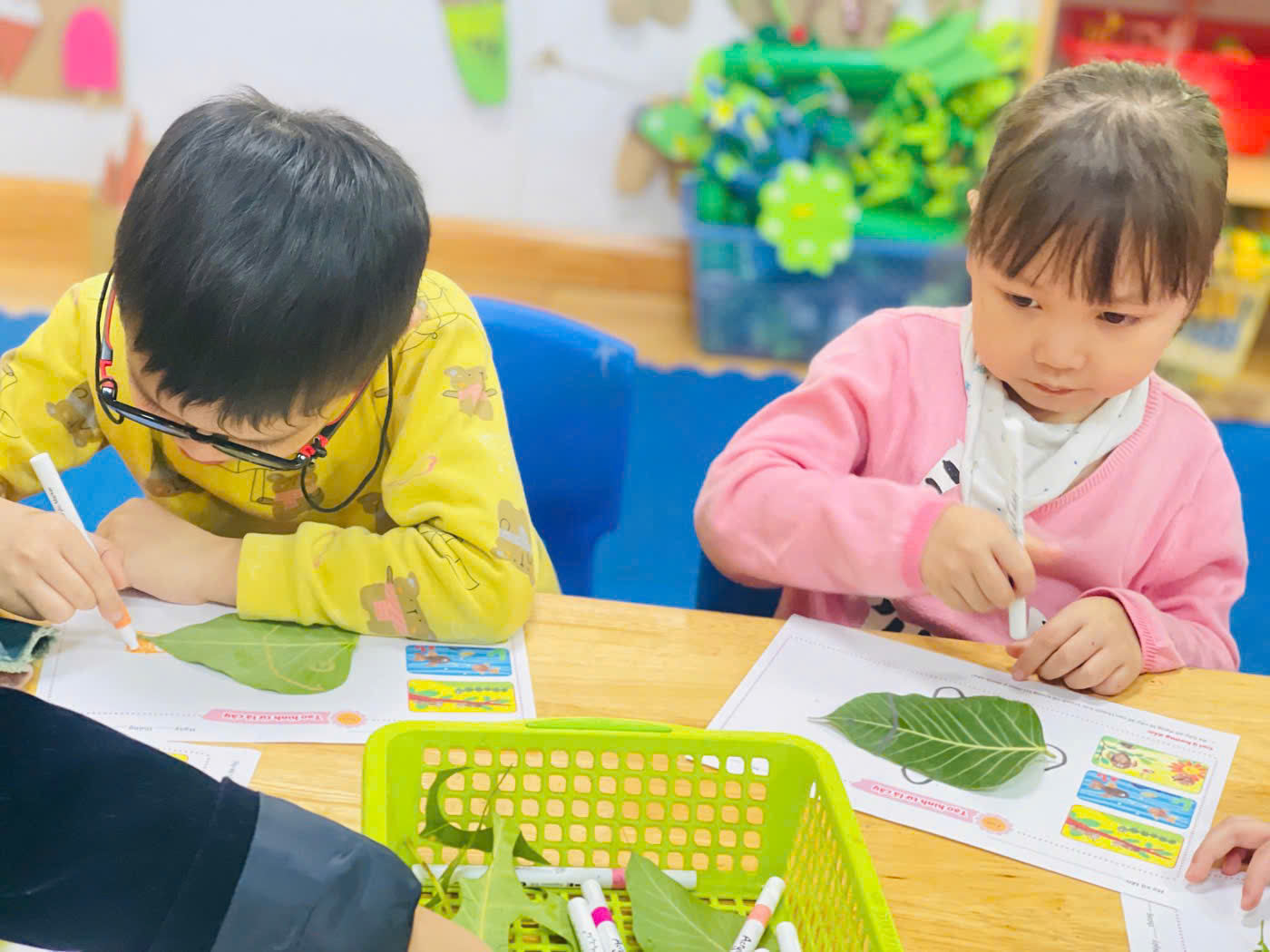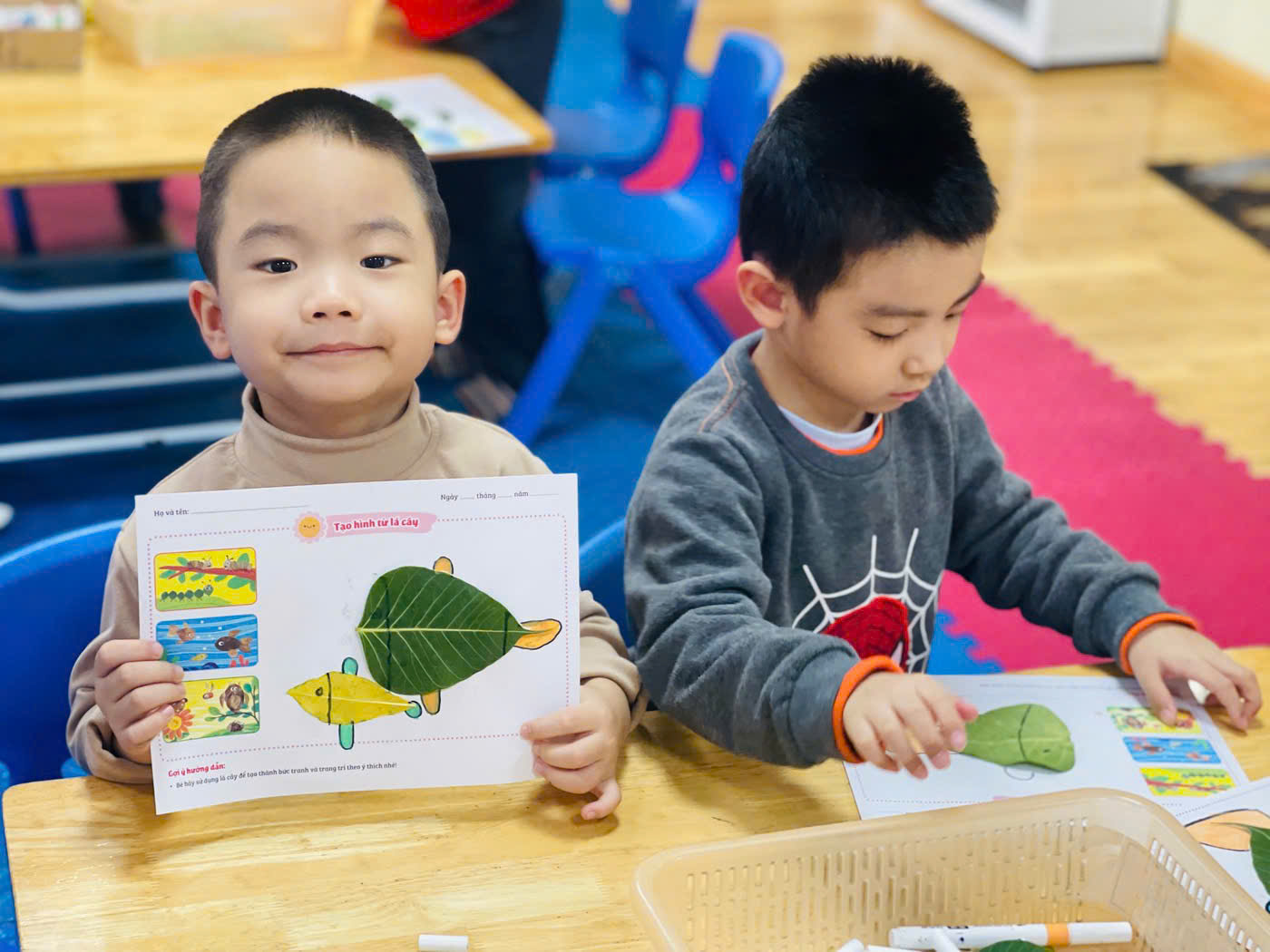 Qua giờ học này sẽ rèn cho bé các kỹ năng tạo hình cơ bản. Từ những chiếc lá không cắt, không gấp mà chỉ xếp đặt từ chiếc lá nguyên bản có hình dạng khác nhau, thêm chút màu và một chút khéo léo của đôi bàn tay dưới sự hướng dẫn của cô các bạn nhỏ đã tạo nên những con vật rất dễ thương và đáng yêu.