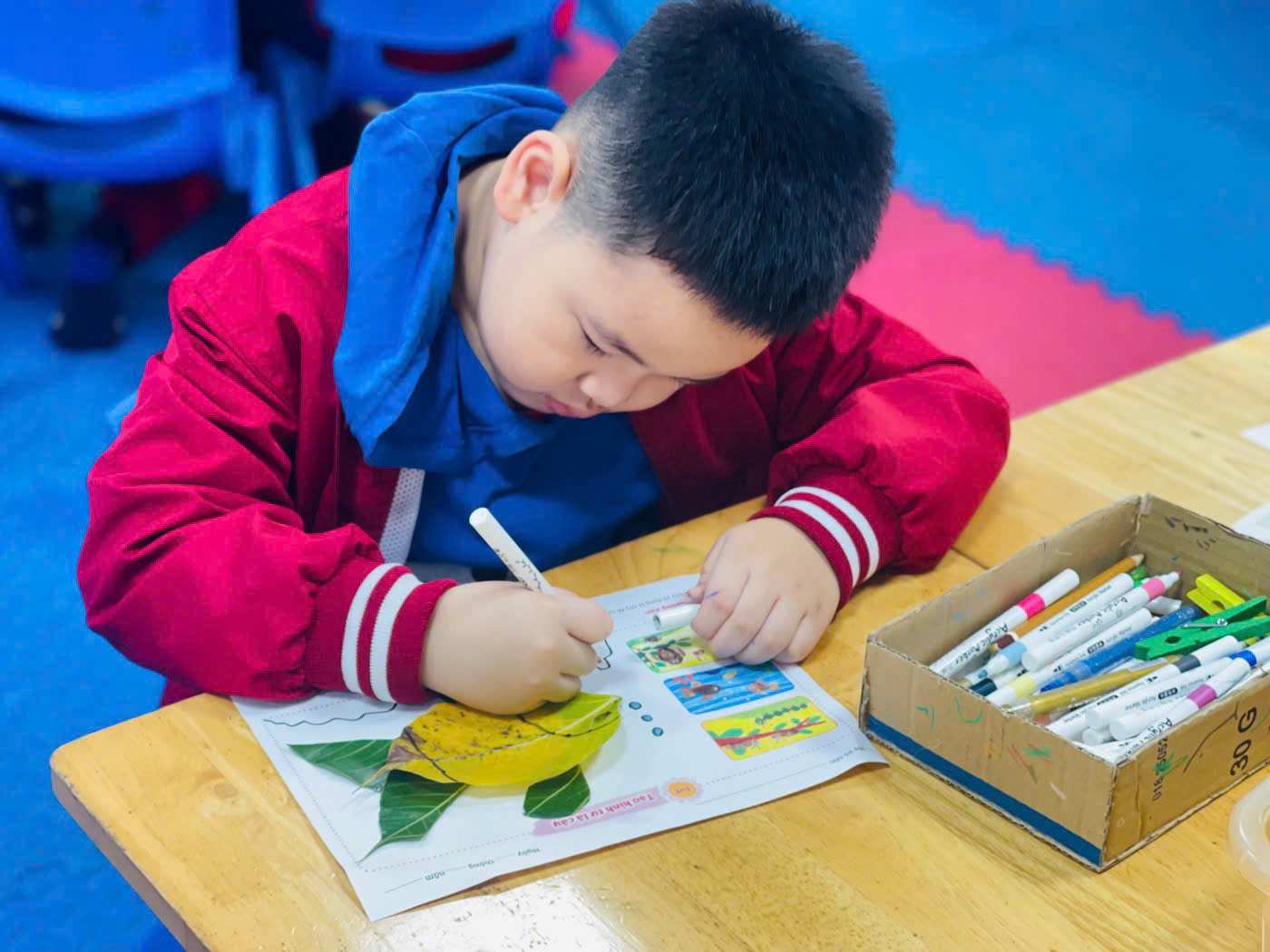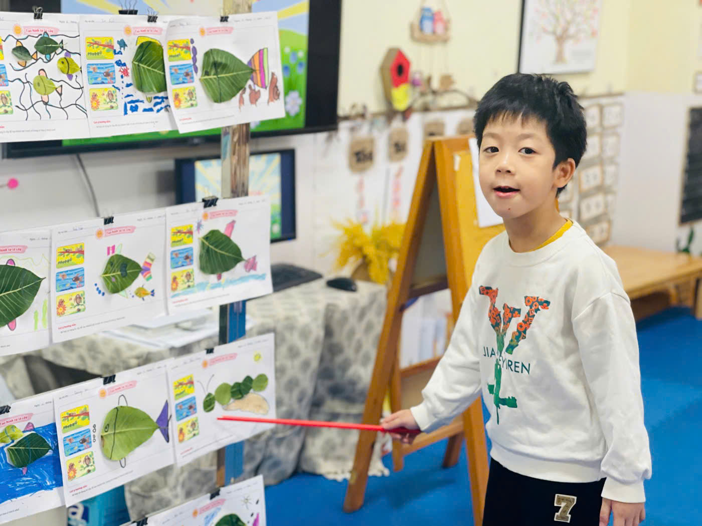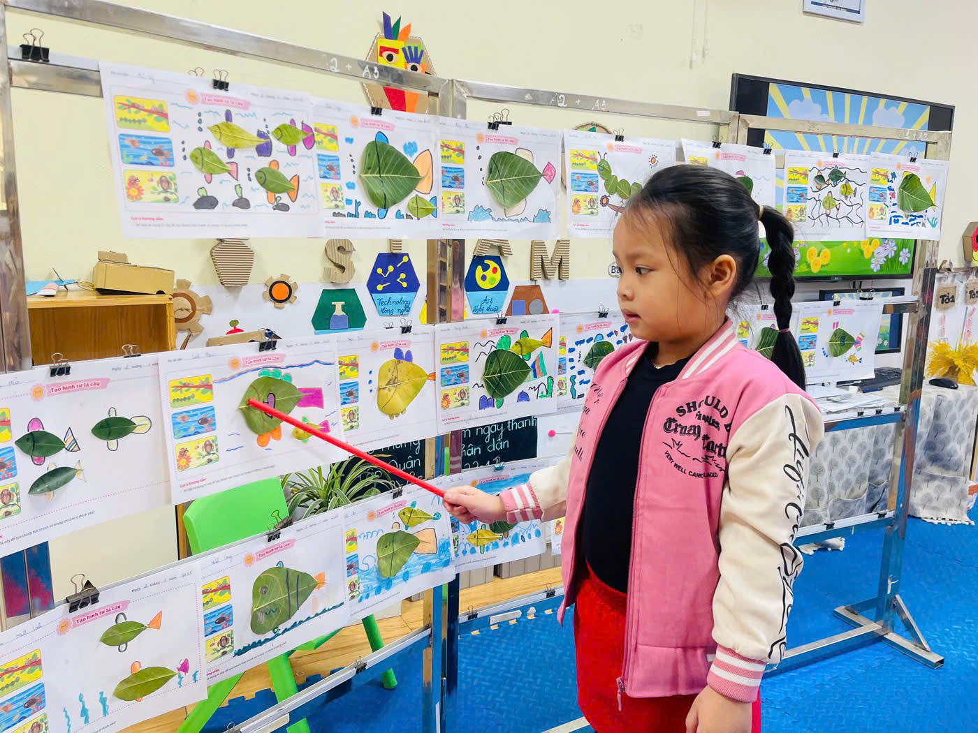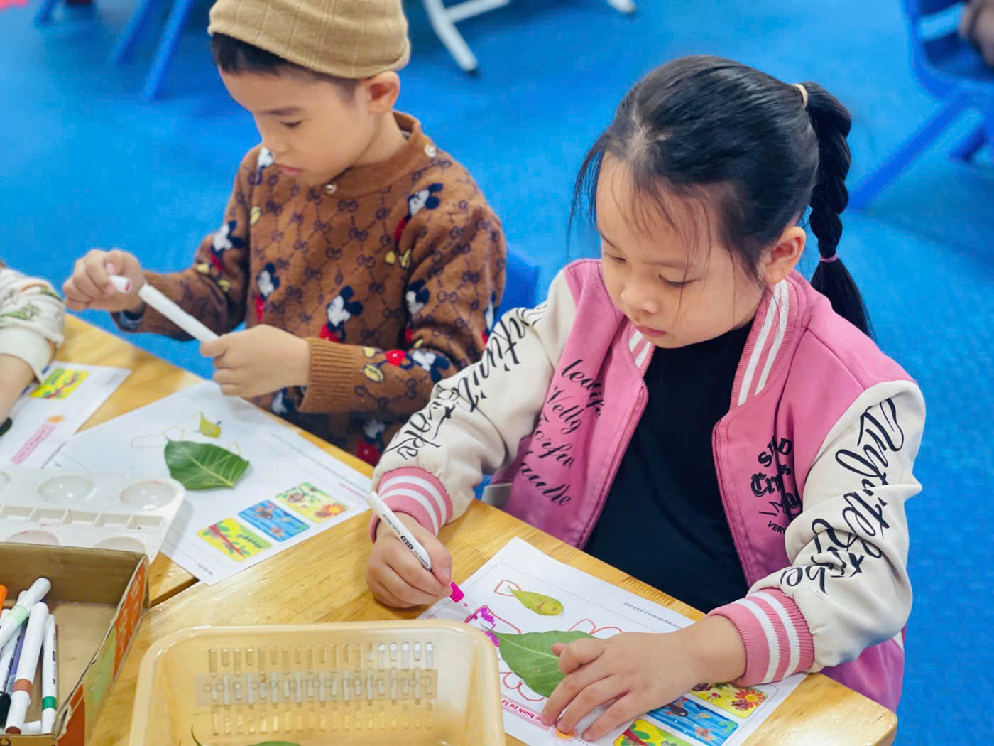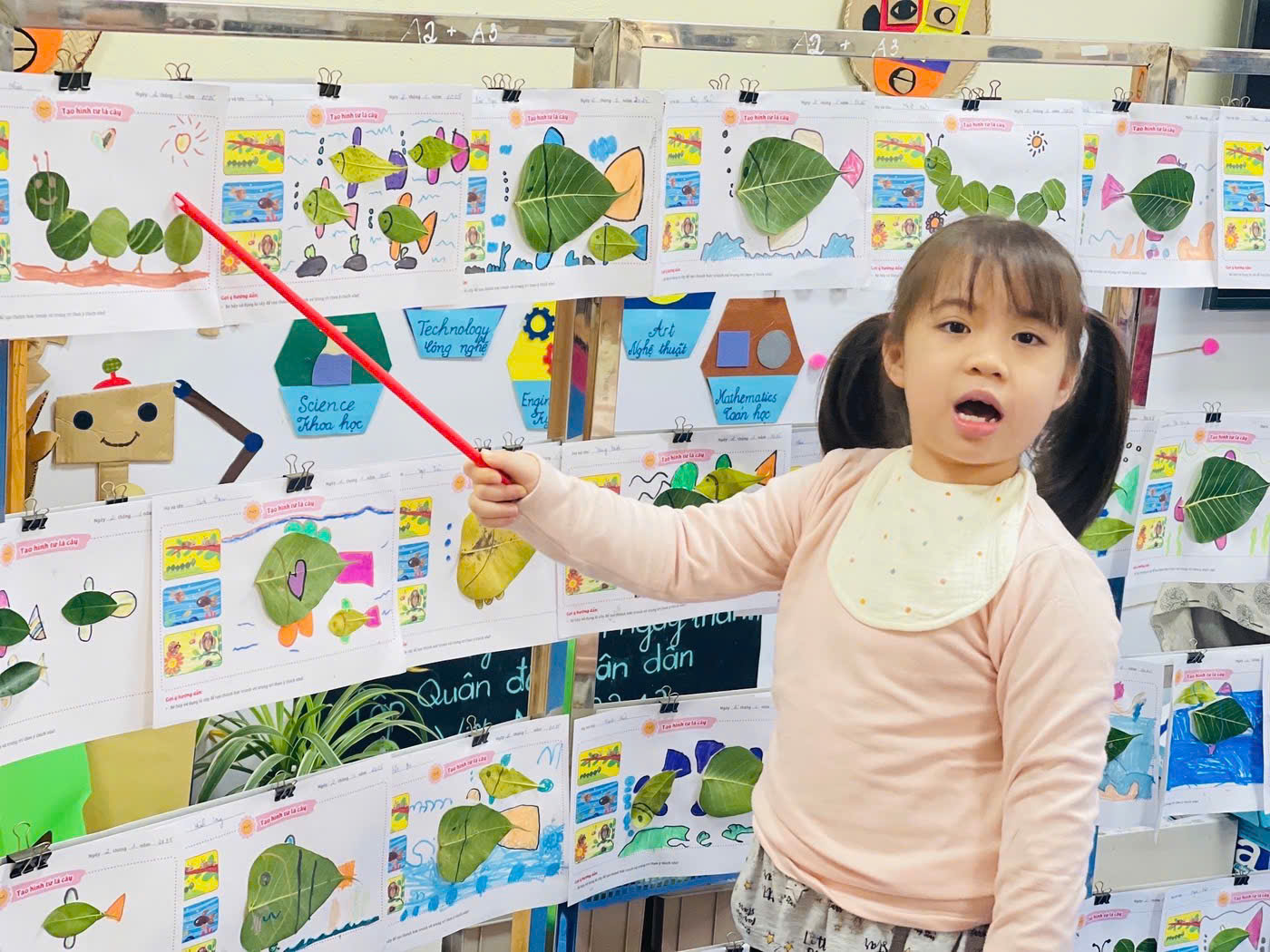 Qua giờ học này sẽ rèn cho bé các kỹ năng tạo hình cơ bản. Từ những chiếc lá không cắt, không gấp mà chỉ xếp đặt từ chiếc lá nguyên bản có hình dạng khác nhau, thêm chút màu và một chút khéo léo của đôi bàn tay dưới sự hướng dẫn của cô các bạn nhỏ đã tạo nên những con vật rất dễ thương và đáng yêu.