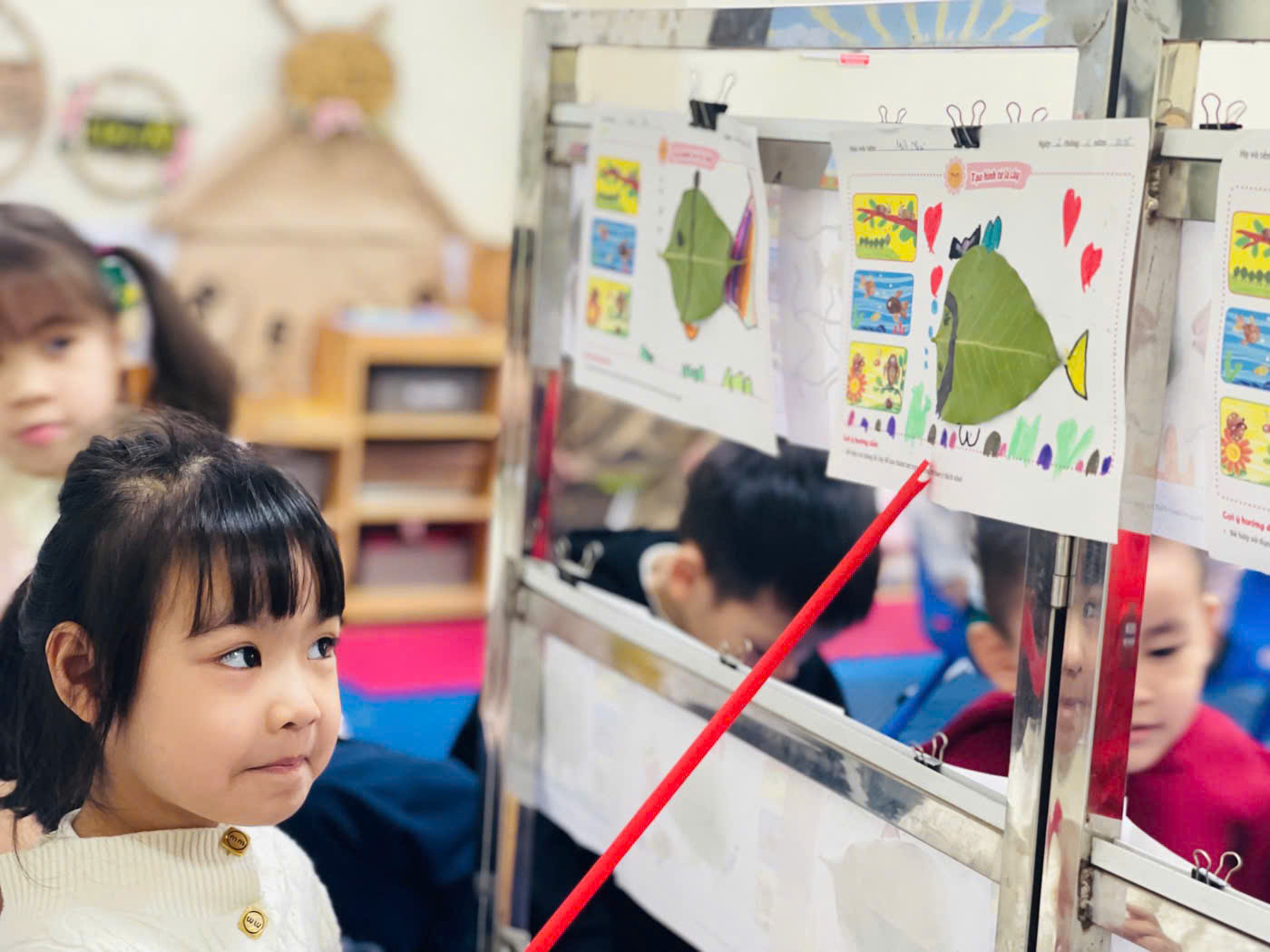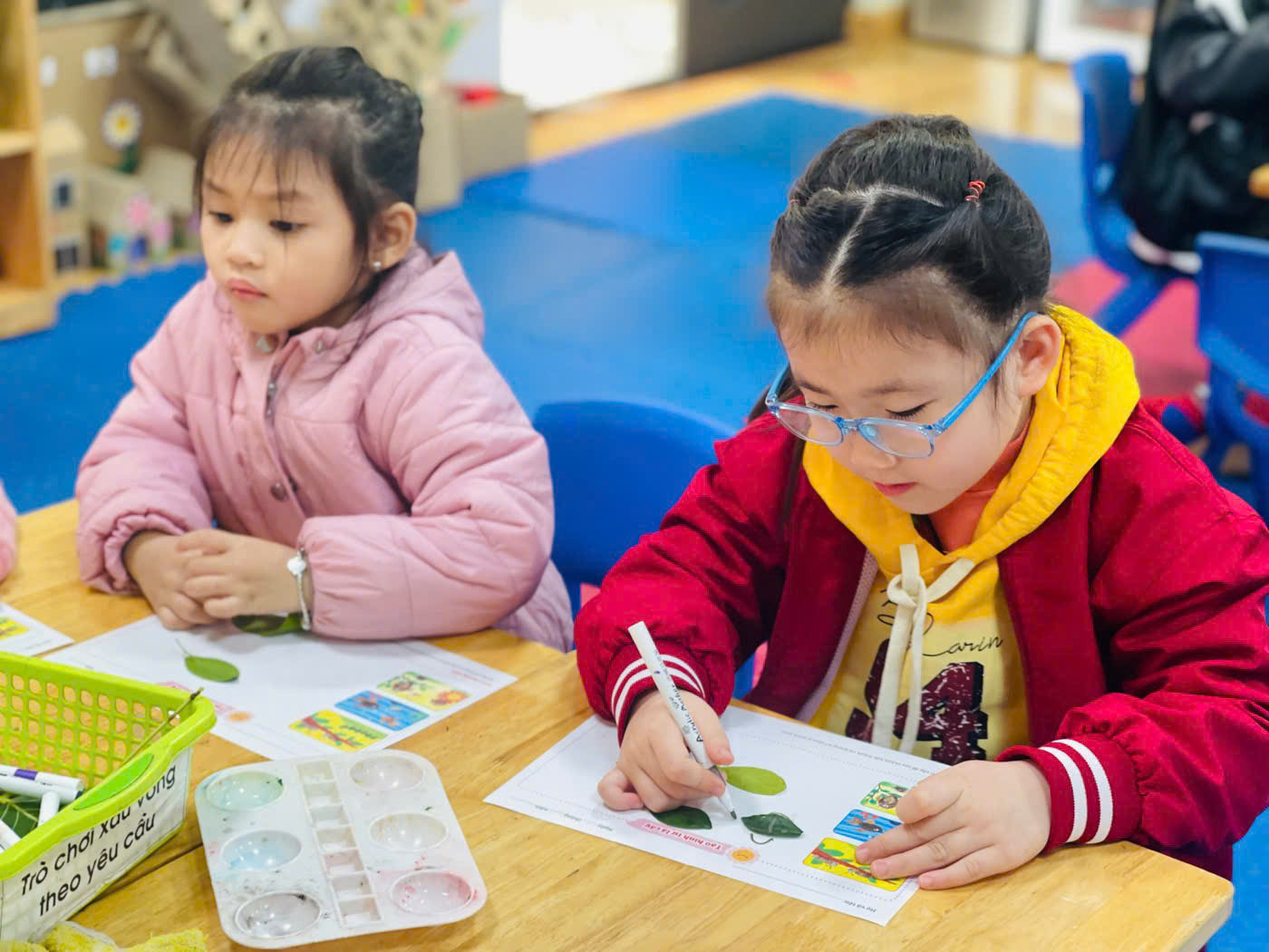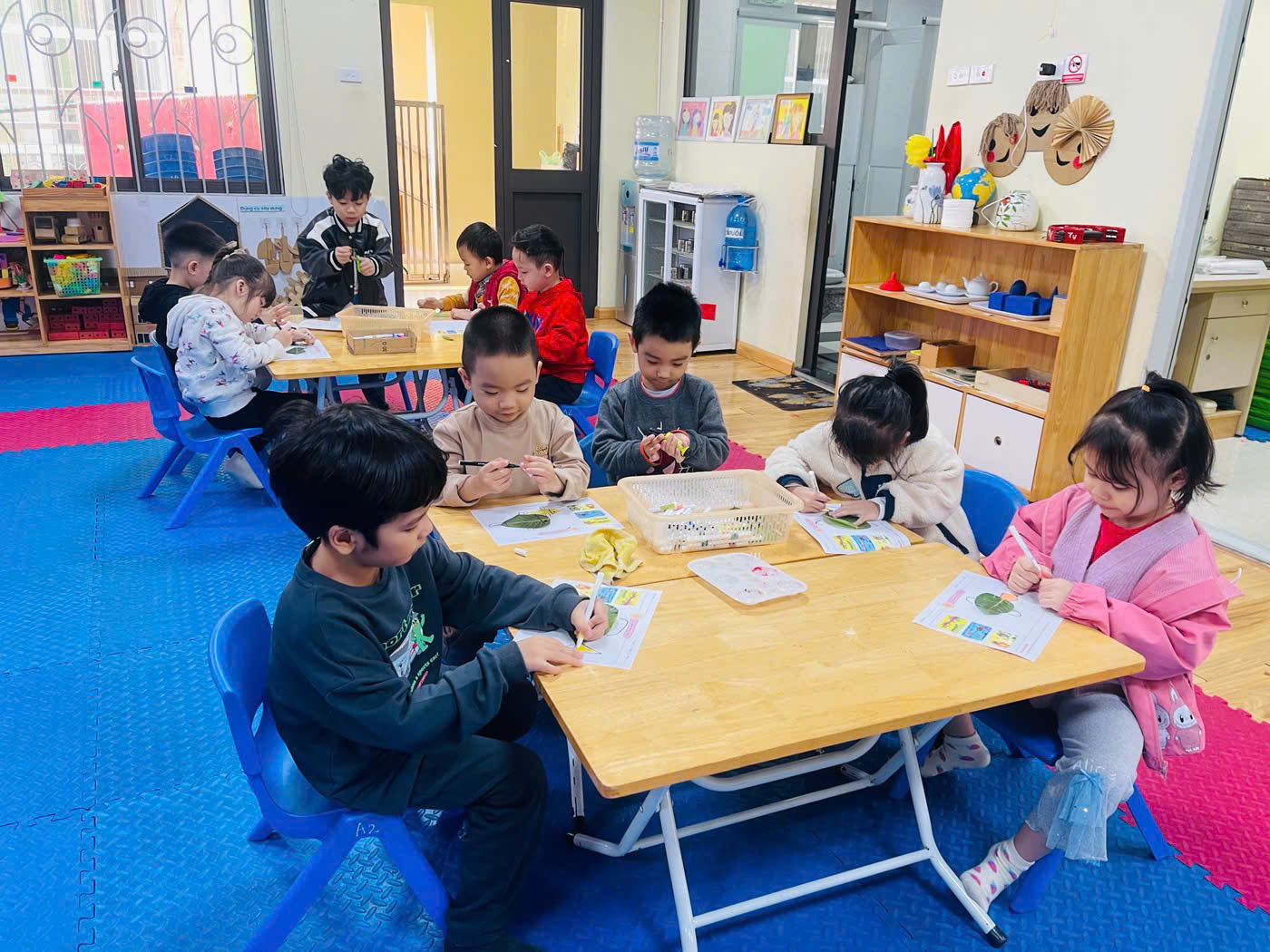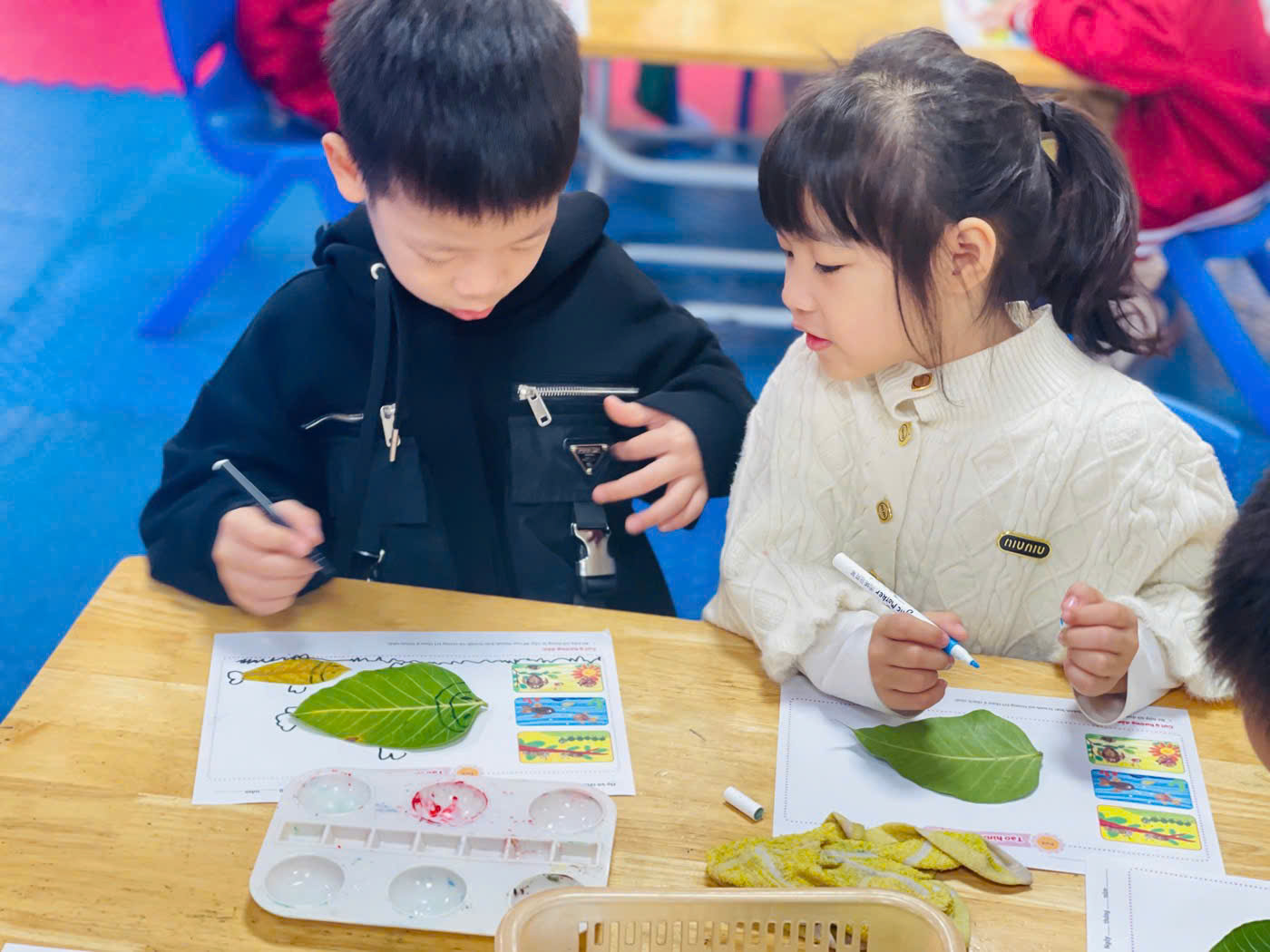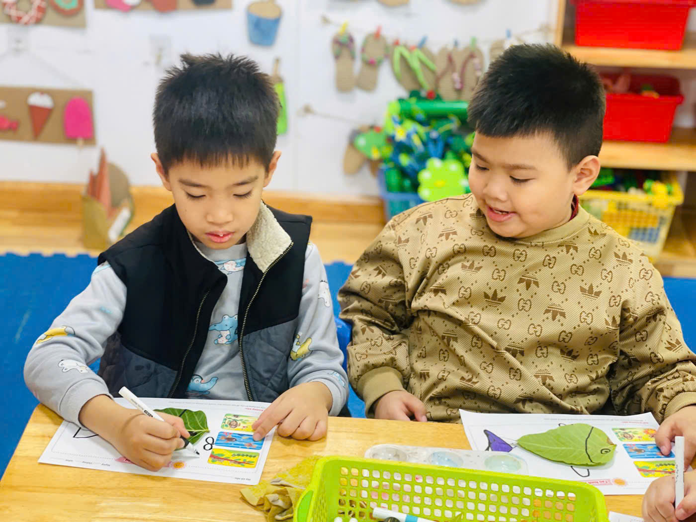 Qua giờ học này sẽ rèn cho bé các kỹ năng tạo hình cơ bản. Từ những chiếc lá không cắt, không gấp mà chỉ xếp đặt từ chiếc lá nguyên bản có hình dạng khác nhau, thêm chút màu và một chút khéo léo của đôi bàn tay dưới sự hướng dẫn của cô các bạn nhỏ đã tạo nên những con vật rất dễ thương và đáng yêu.