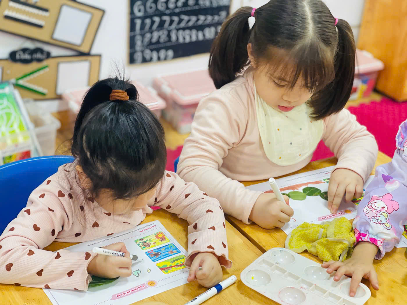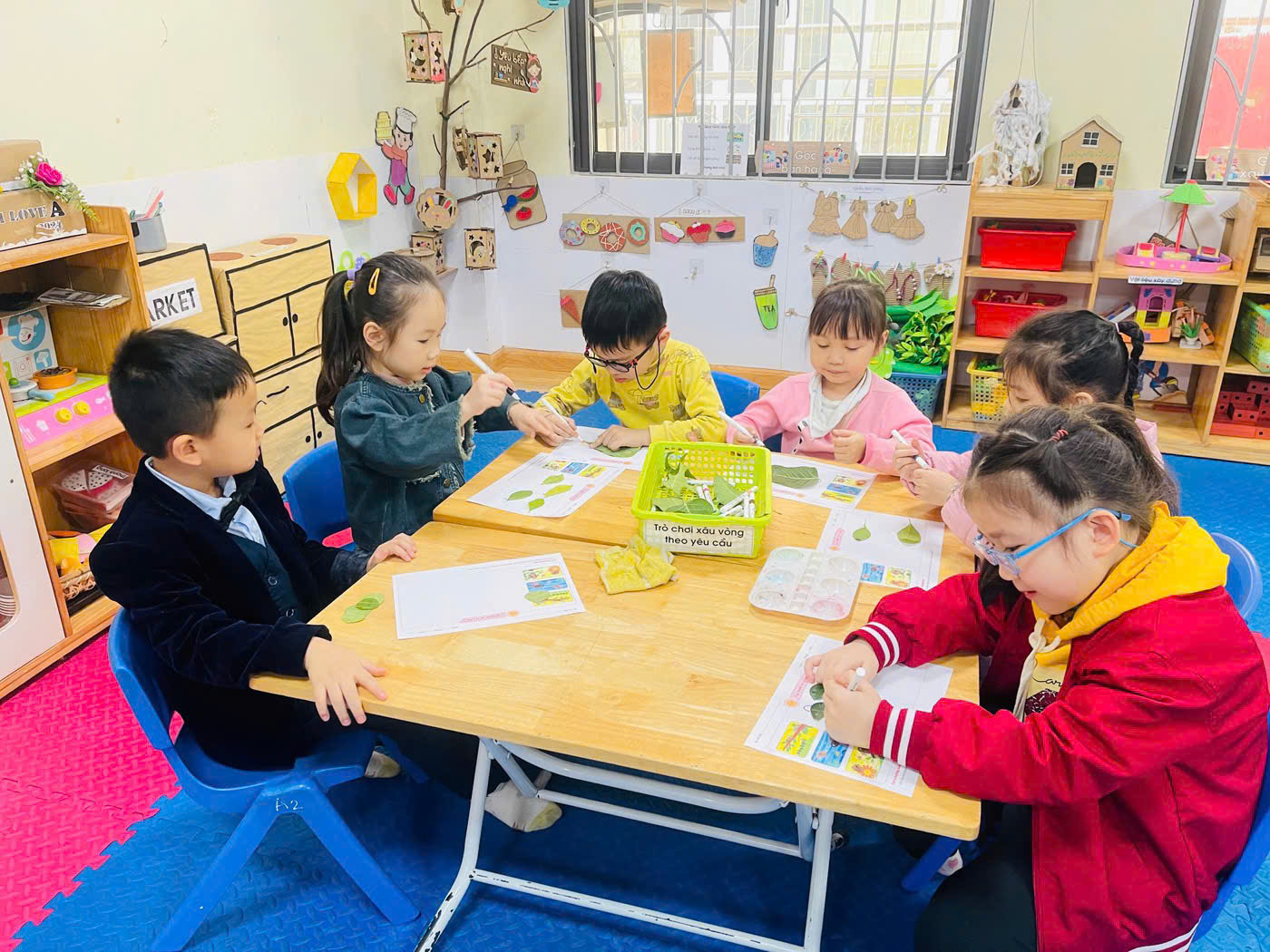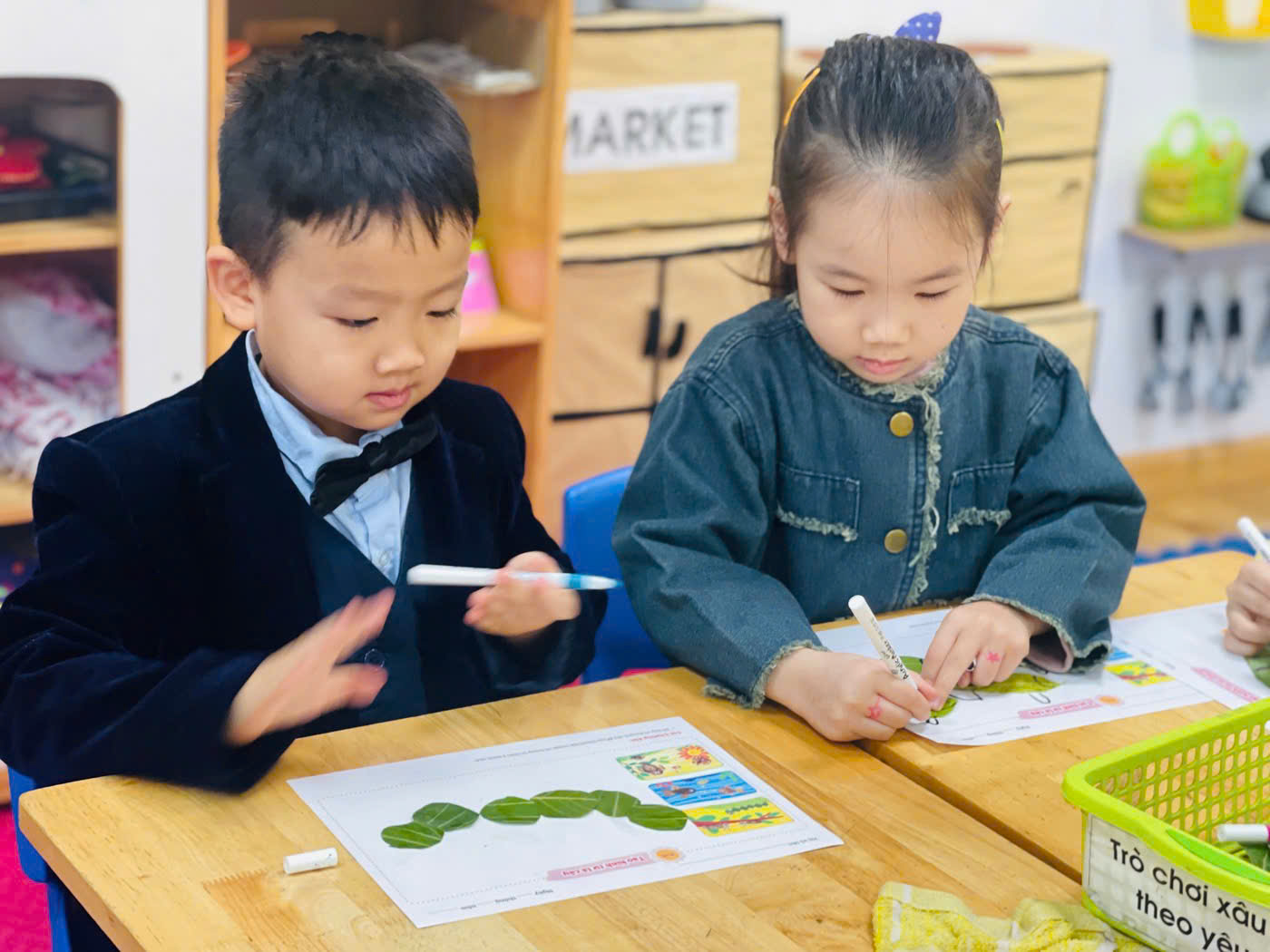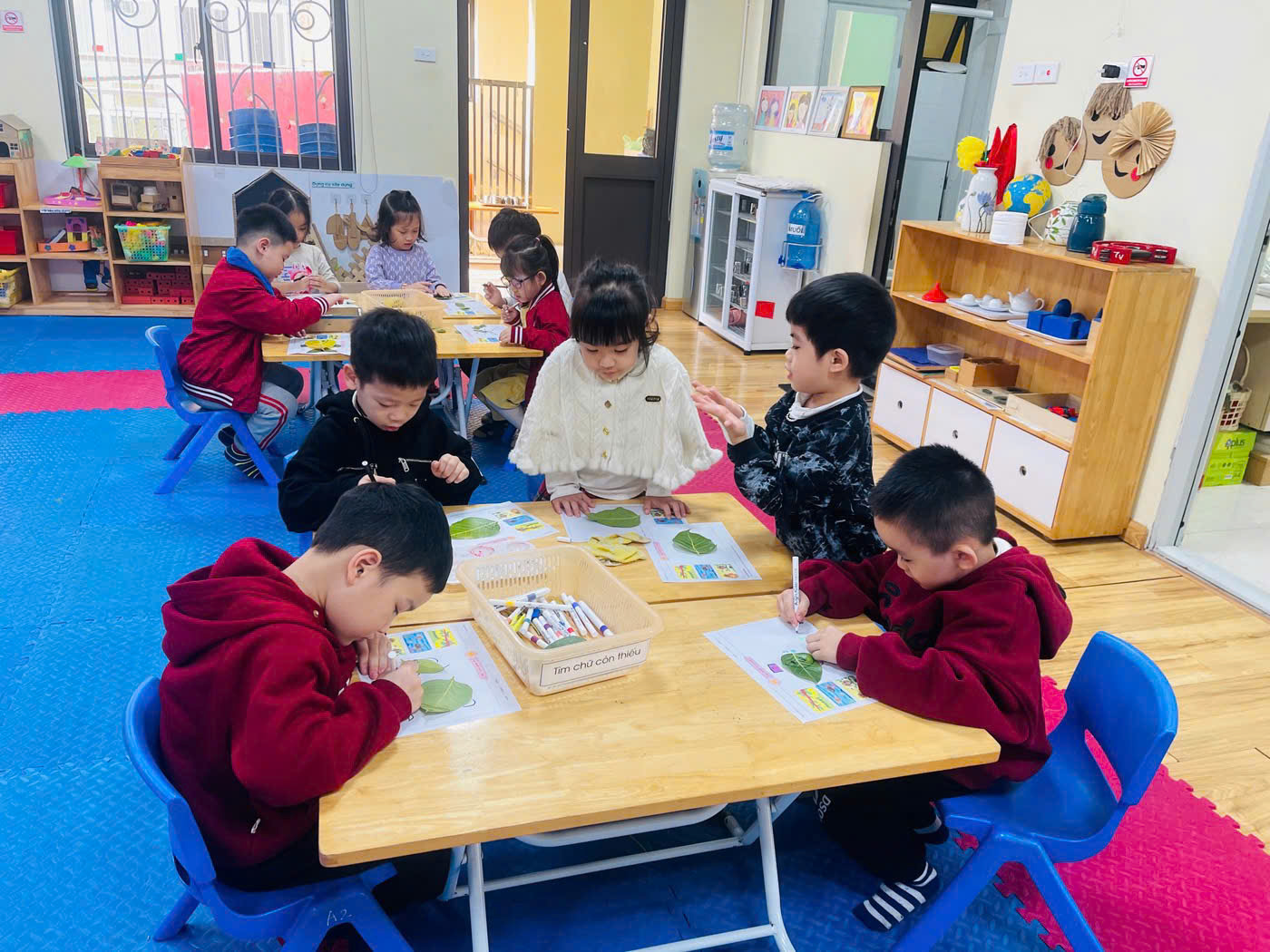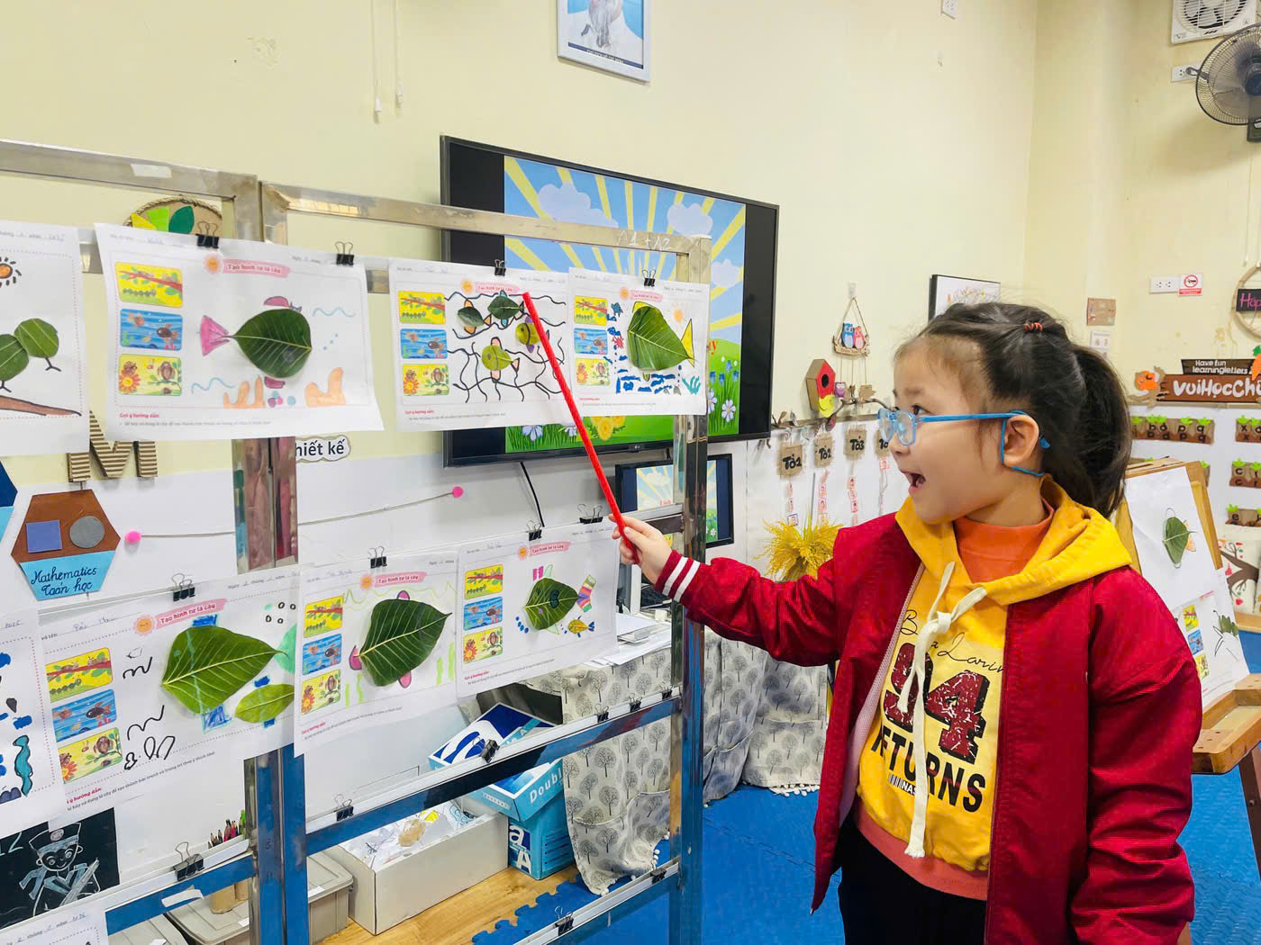 Qua giờ học này sẽ rèn cho bé các kỹ năng tạo hình cơ bản. Từ những chiếc lá không cắt, không gấp mà chỉ xếp đặt từ chiếc lá nguyên bản có hình dạng khác nhau, thêm chút màu và một chút khéo léo của đôi bàn tay dưới sự hướng dẫn của cô các bạn nhỏ đã tạo nên những con vật rất dễ thương và đáng yêu.