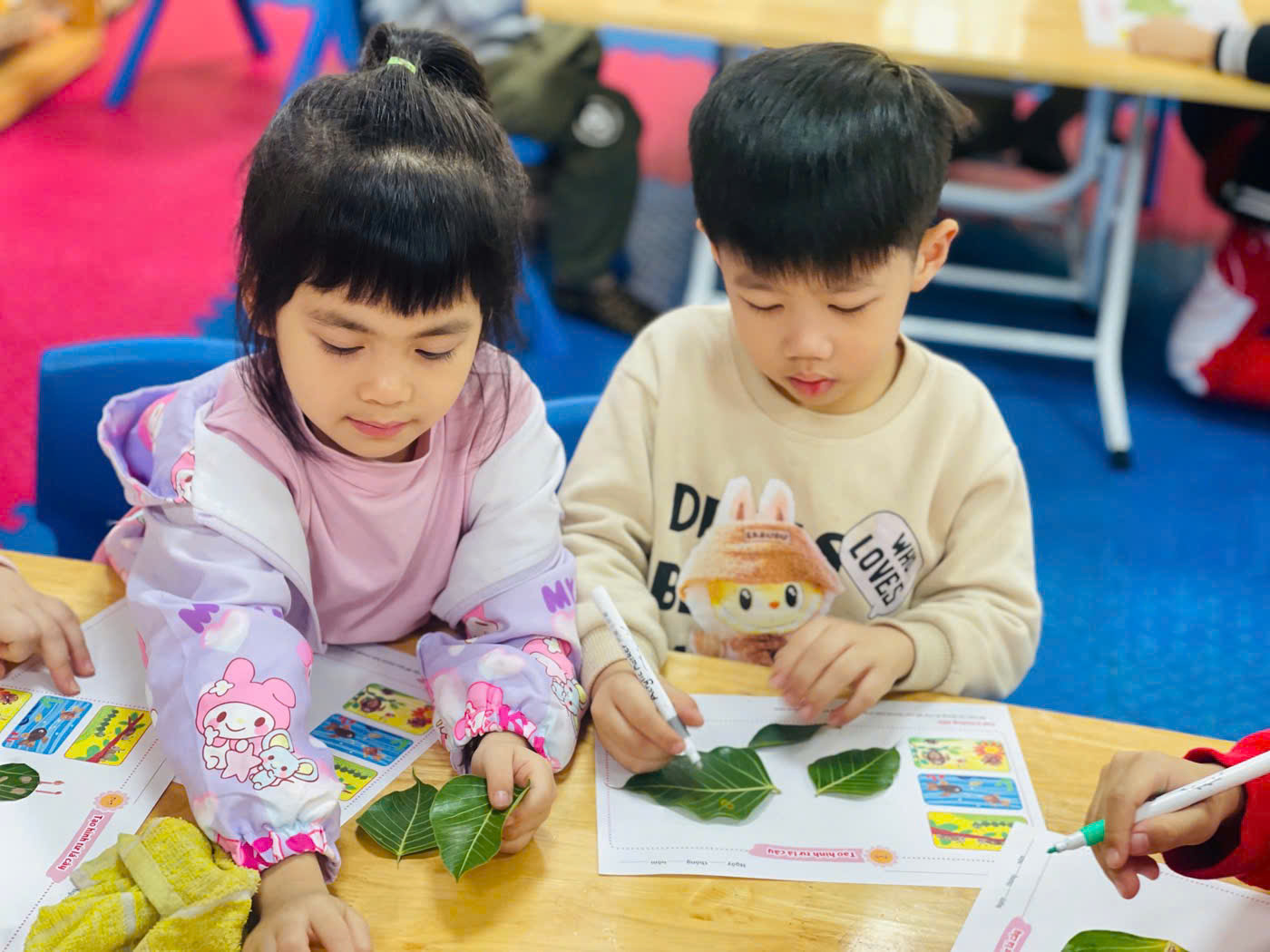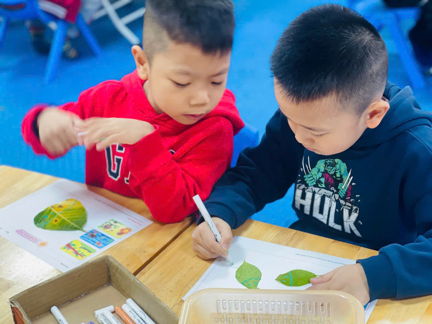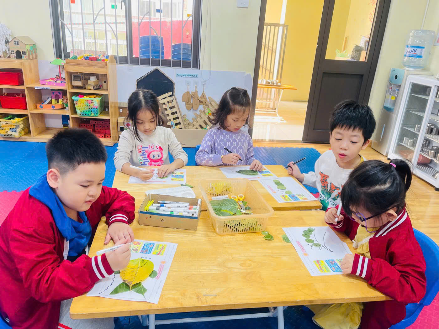 Cùng các bé lớp Mẫu Giáo Lớn A2 sáng tạo với hoạt động " Tạo hình từ lá cây"
