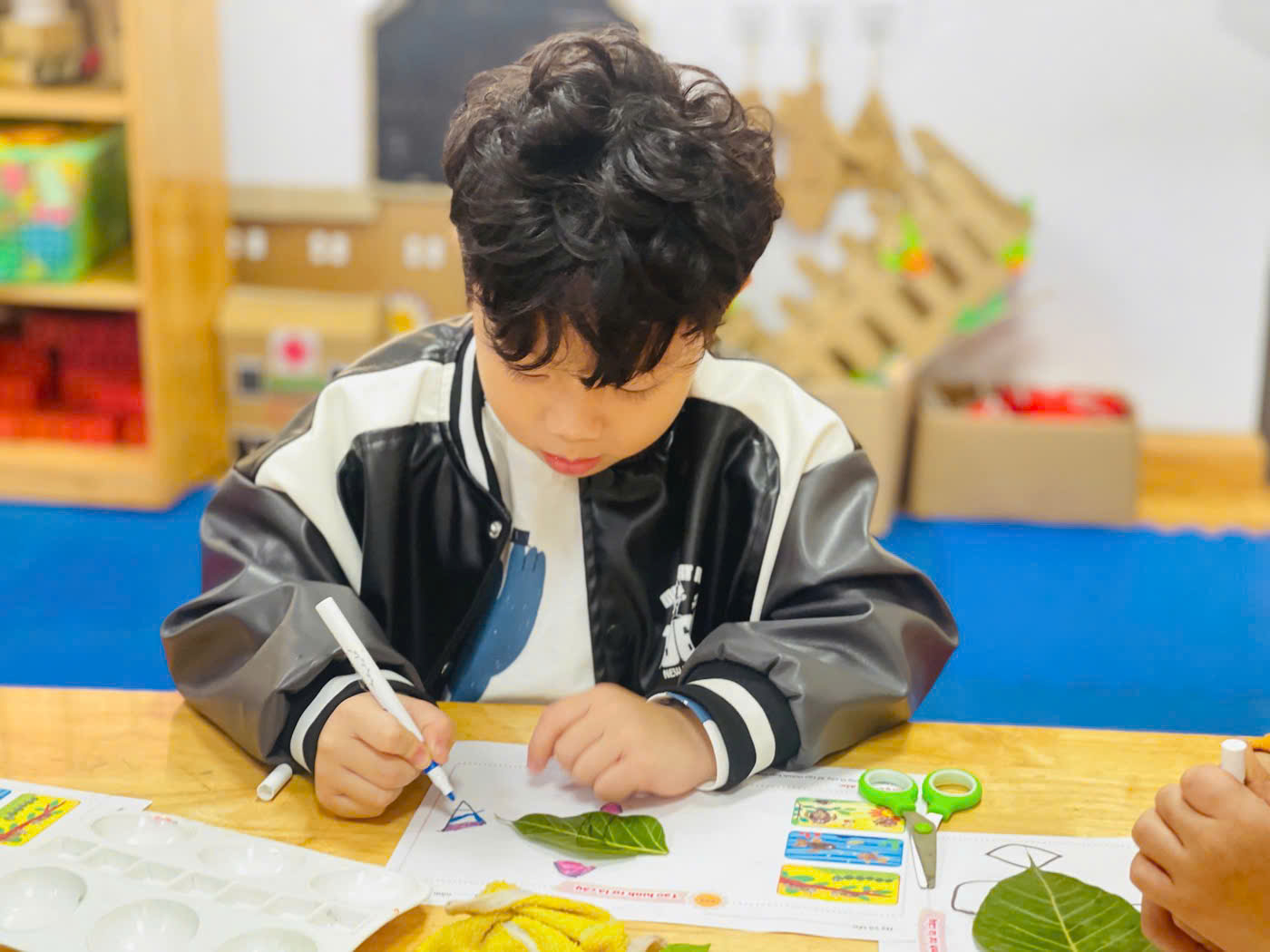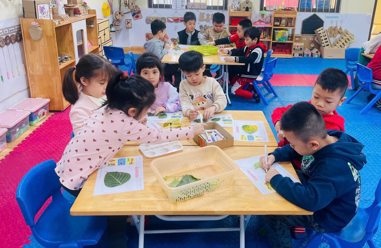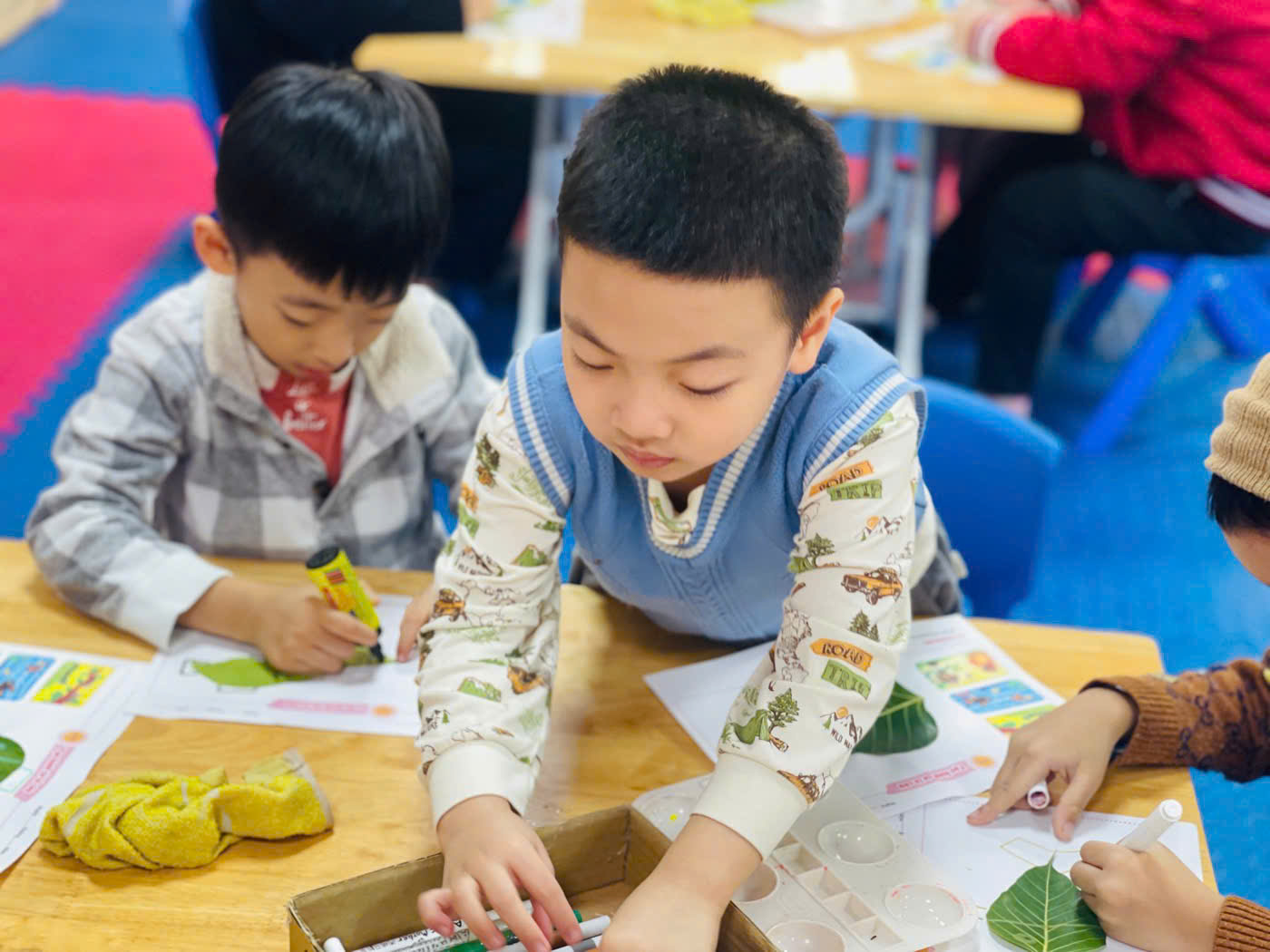 Cùng các bé lớp Mẫu Giáo Lớn A2 sáng tạo với hoạt động " Tạo hình từ lá cây"
