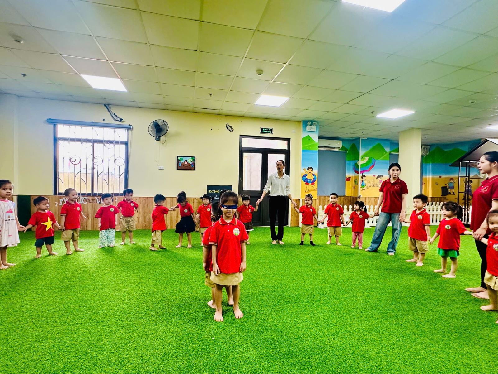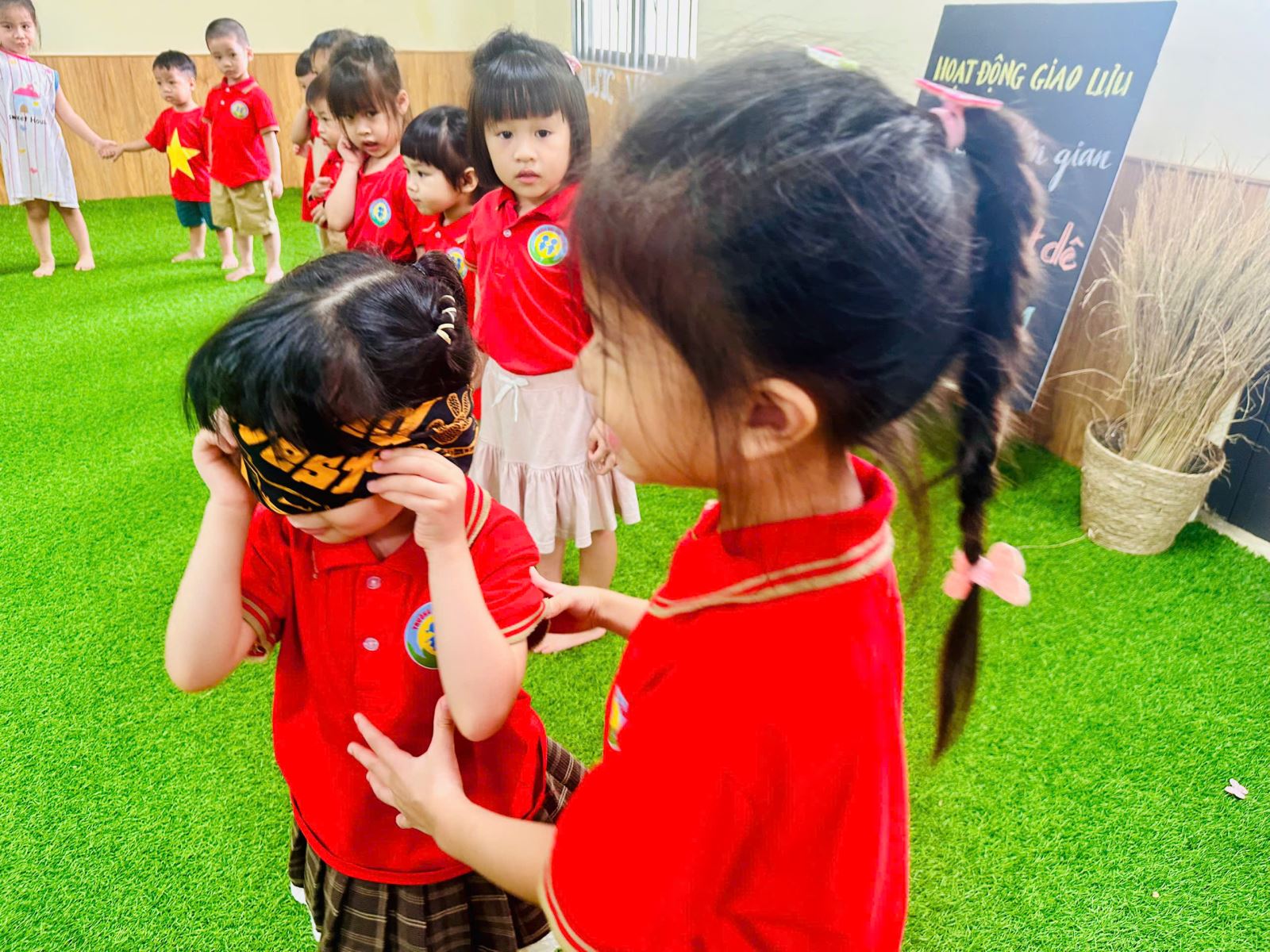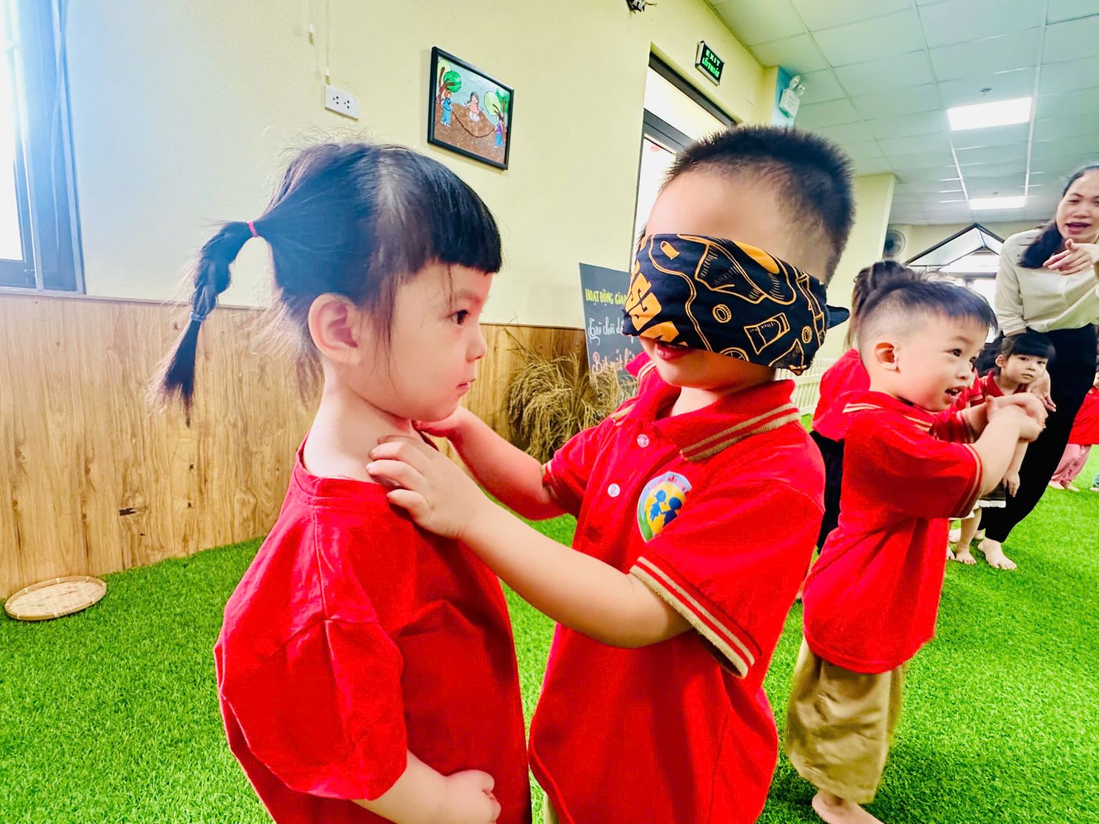 Tiếng cười rộn rã, những bước chân chạy lon ton cùng tiếng hò reo cổ vũ vang lên khắp sân chơi Trường Mầm non Sao Mai – đó chính là không khí đầy hứng khởi trong buổi giao lưu trò chơi dân gian “Bịt mắt bắt dê” của các bé lớp mẫu giáo nhỡ B2 và mẫu giáo bé C1.