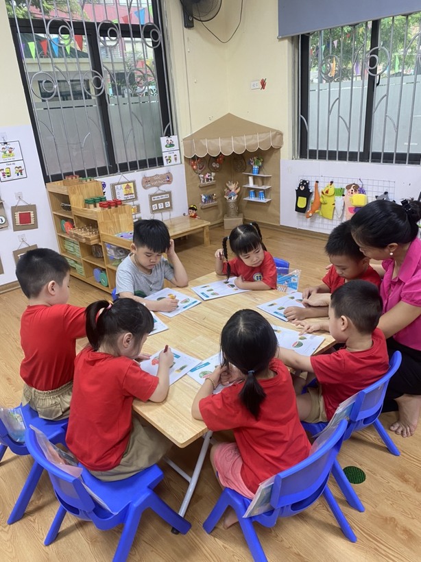 Hoạt động học tập của các bé khối Mẫu giáo nhỡ Trường Mầm non Sao Mai