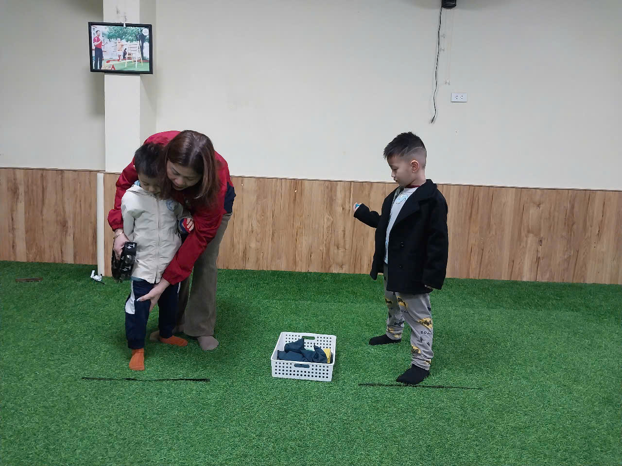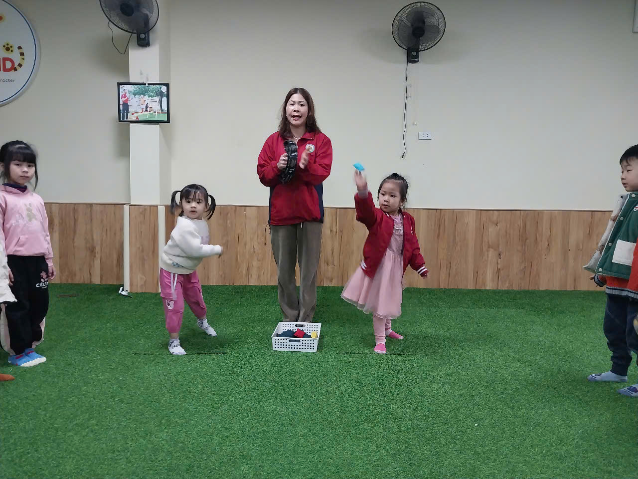 Với hoạt động này, các bé yêu lớp B4 được giải phóng năng lượng qua các hình thức vận động khác nhau của bài tập phát triển chung và sự nhanh mạnh của cánh tay khi được ném bao cát thật xa.