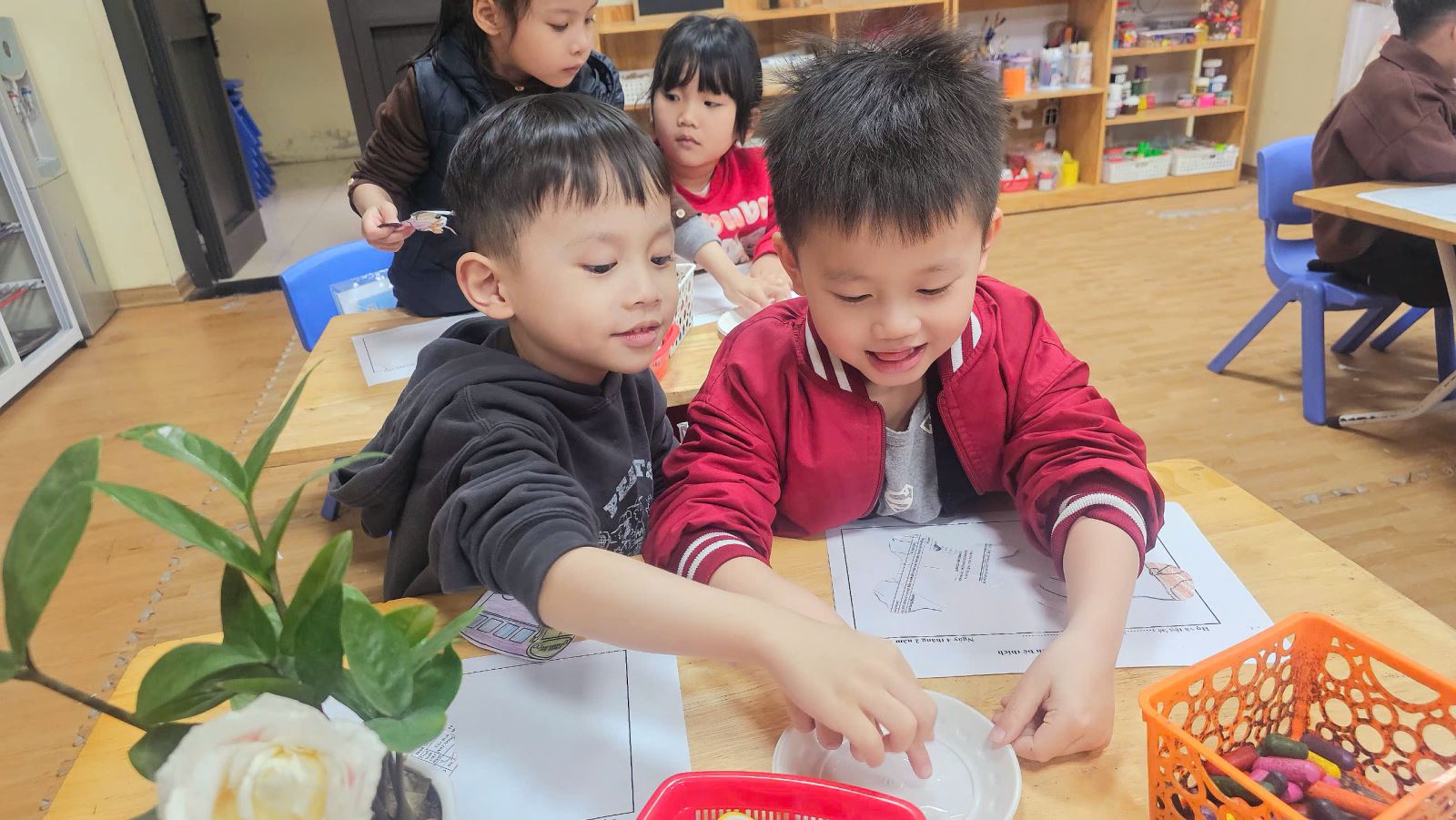 Hứng thú với hoạt động học của các bé yêu lớp mẫu giáo nhỡ B1 và B4 sau kỳ nghỉ Tết Nguyên Đán Ất Tỵ