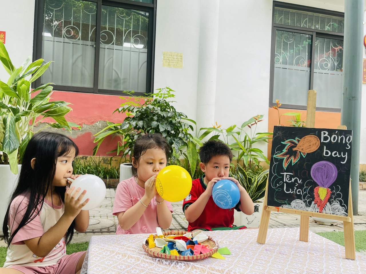 🚀 Lớp mẫu giáo lớn A2 – Hoạt động “Bóng bay tên lửa”