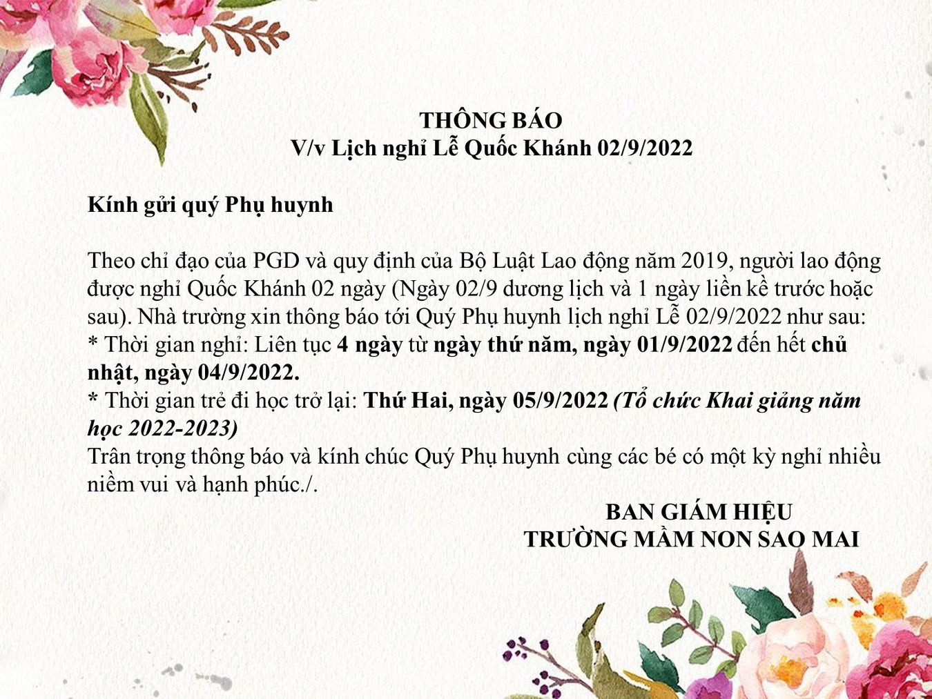 Lịch nghỉ Lễ Quốc Khánh 02/9/2022