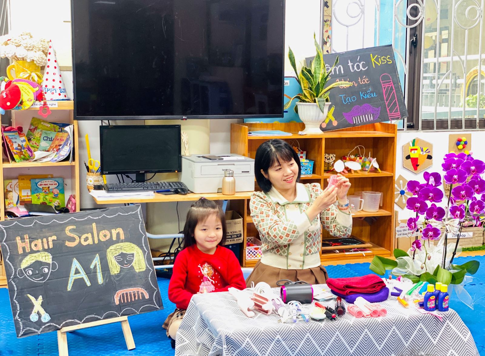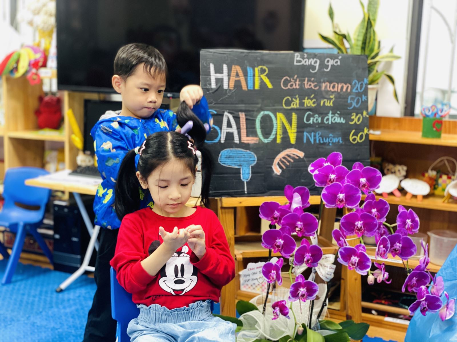 👩🦱👩🦱 Mời ba mẹ ghé thăm Salon chăm sóc tóc siêu đáng yêu tại lớp A1 Trường mầm non Sao Mai.