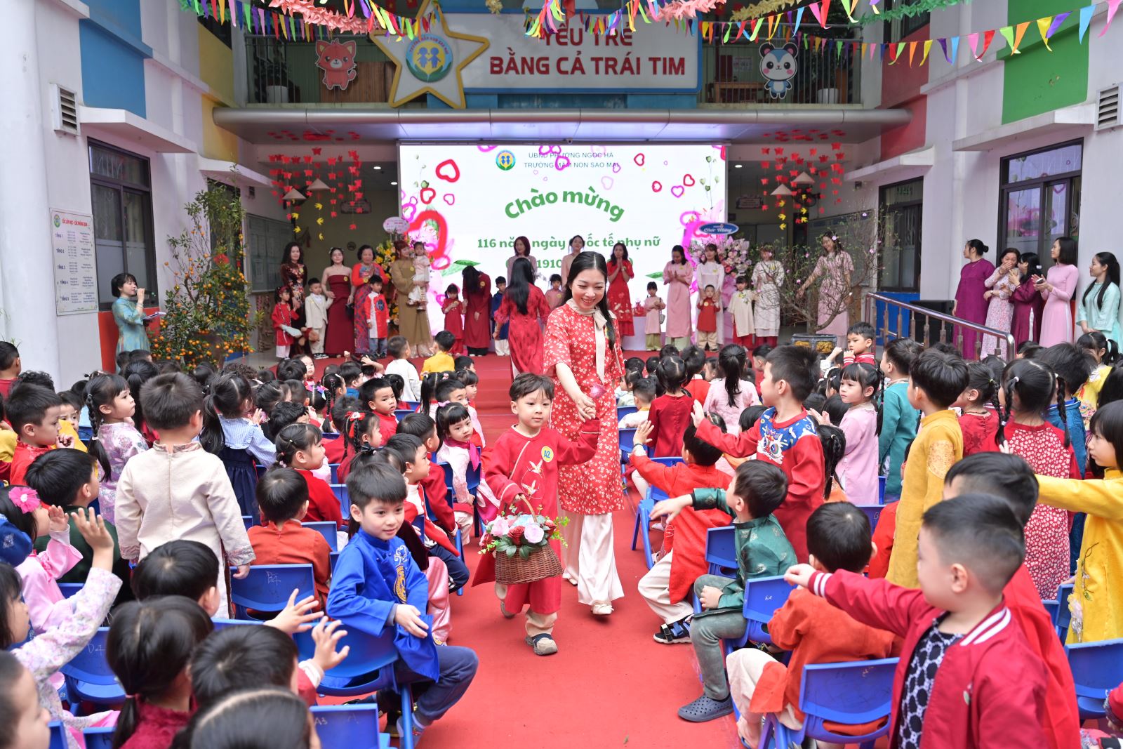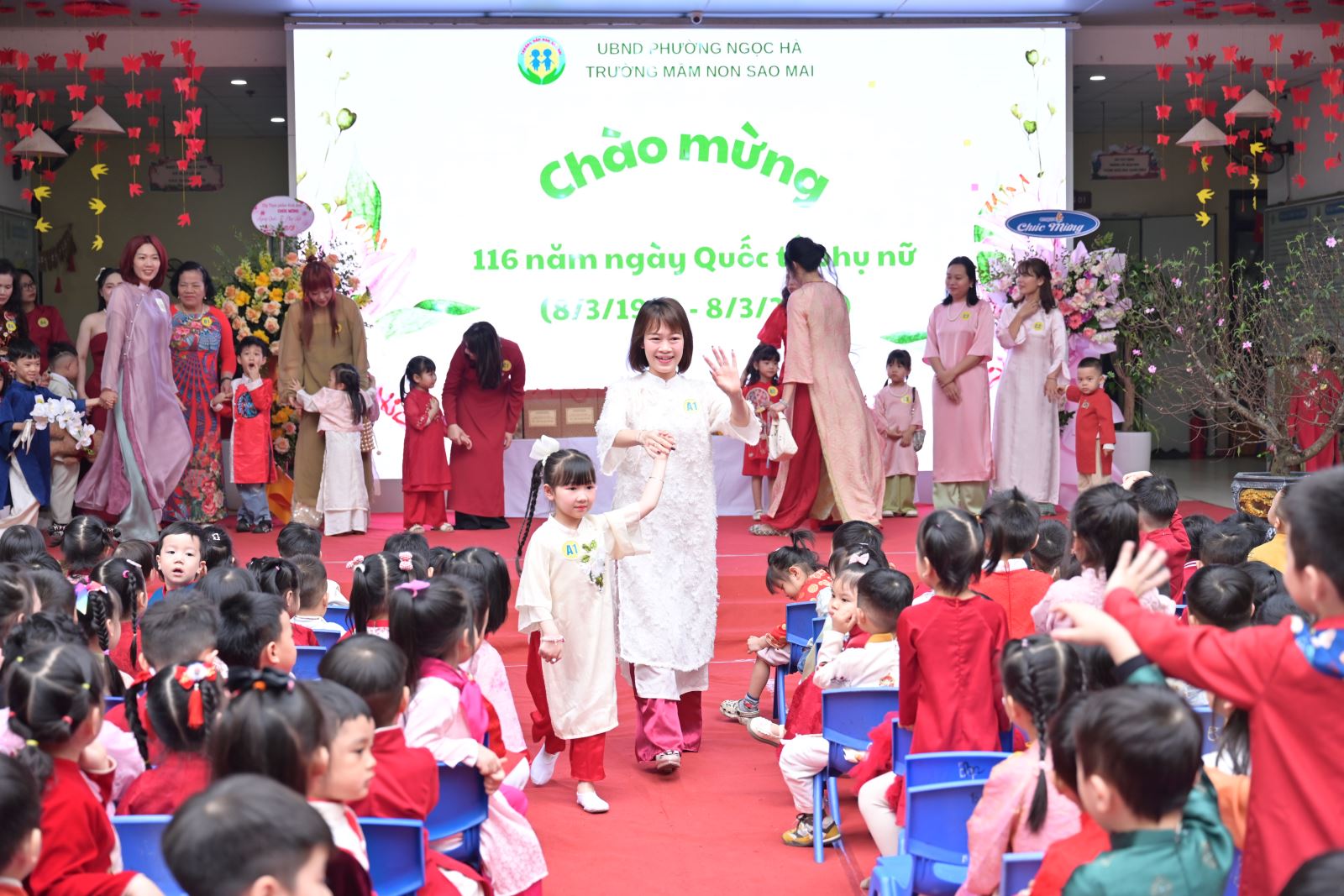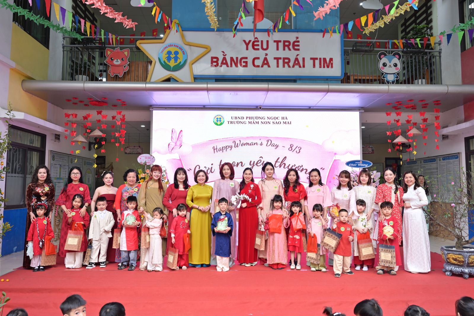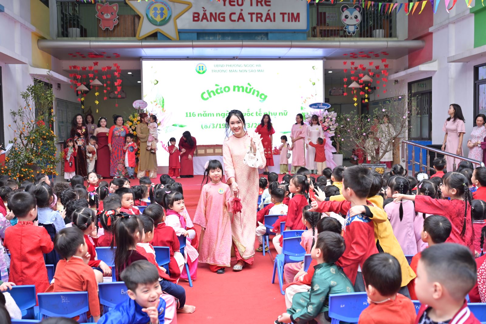 Ngày Quốc tế Phụ nữ 8/3 không chỉ là dịp tôn vinh vẻ đẹp, vai trò và những đóng góp to lớn của người phụ nữ trong gia đình và xã hội, mà còn là cơ hội để giáo dục trẻ lòng biết ơn, tình yêu thương đối với bà, mẹ và cô giáo. Với ý nghĩa đó, Trường Mầm non Sao Mai đã tổ chức chương trình kỷ niệm 116 năm ngày Quốc tế phụ nữ 8/3 kết hợp các hoạt động trải nghiệm, thi đua sôi nổi, tạo sân chơi bổ ích cho trẻ, đồng thời tăng cường sự gắn kết giữa gia đình và nhà trường.