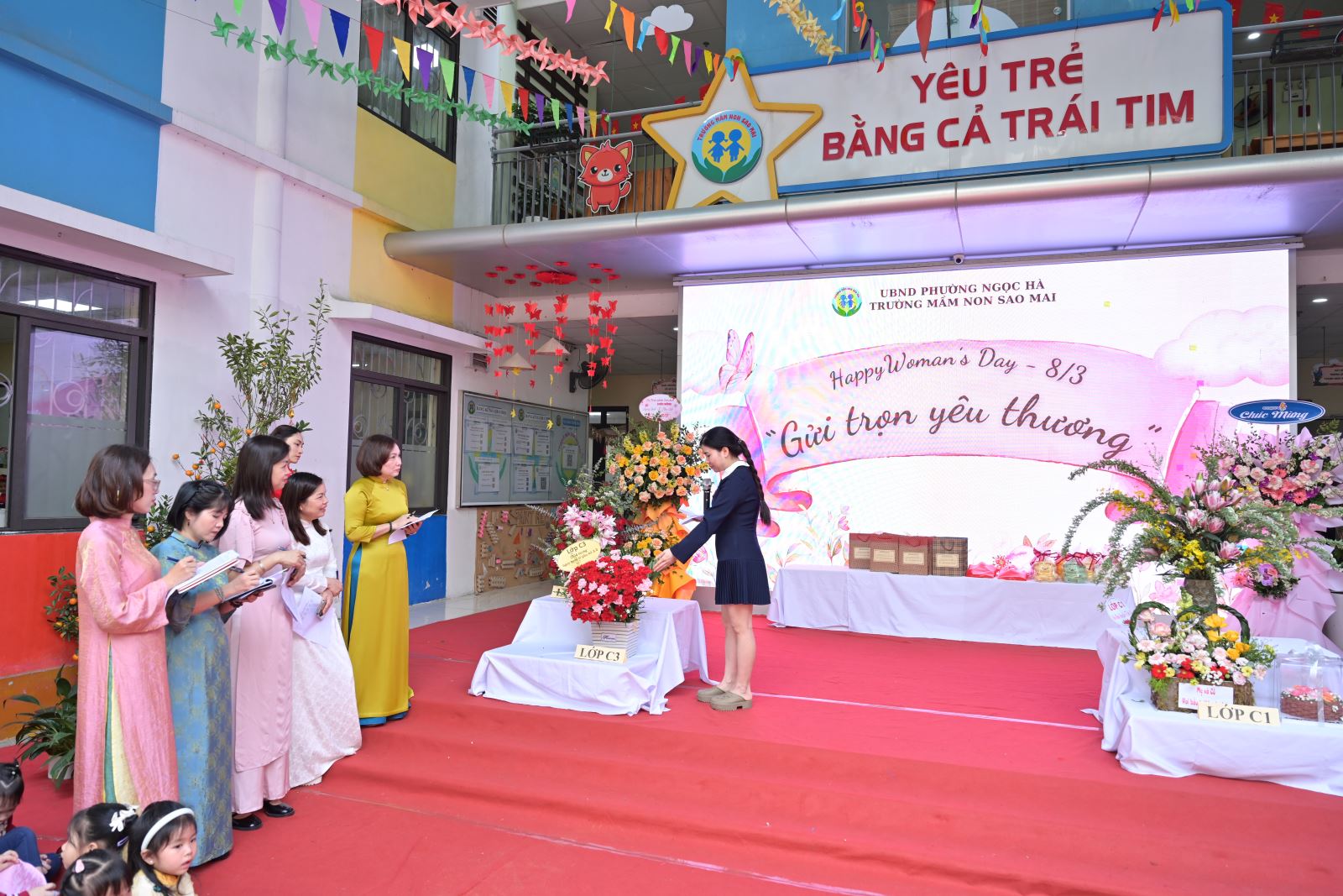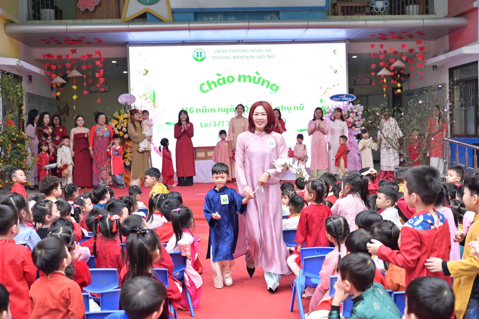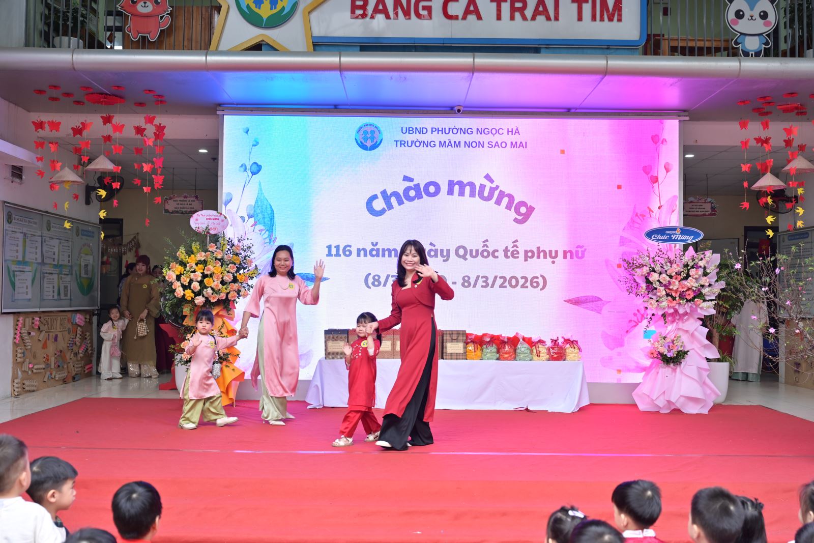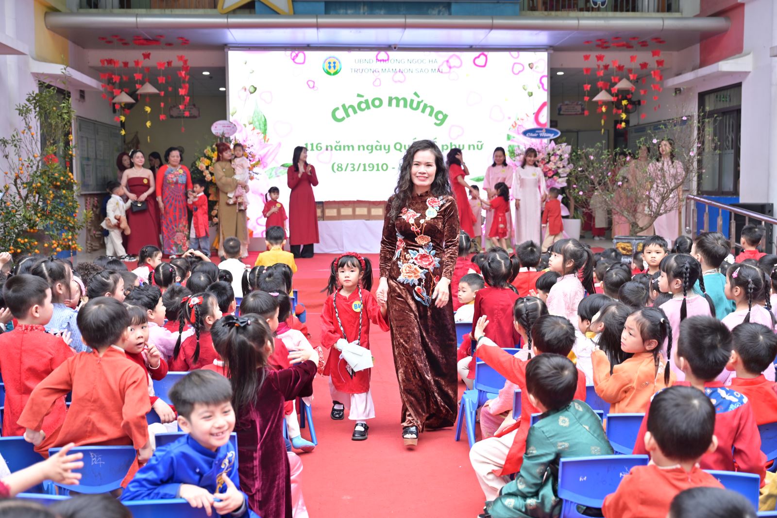 Ngày Quốc tế Phụ nữ 8/3 không chỉ là dịp tôn vinh vẻ đẹp, vai trò và những đóng góp to lớn của người phụ nữ trong gia đình và xã hội, mà còn là cơ hội để giáo dục trẻ lòng biết ơn, tình yêu thương đối với bà, mẹ và cô giáo. Với ý nghĩa đó, Trường Mầm non Sao Mai đã tổ chức chương trình kỷ niệm 116 năm ngày Quốc tế phụ nữ 8/3 kết hợp các hoạt động trải nghiệm, thi đua sôi nổi, tạo sân chơi bổ ích cho trẻ, đồng thời tăng cường sự gắn kết giữa gia đình và nhà trường.