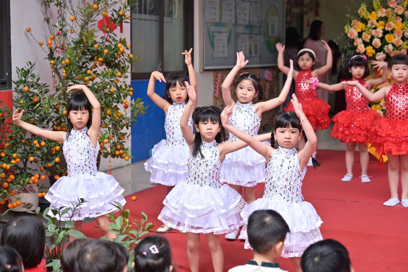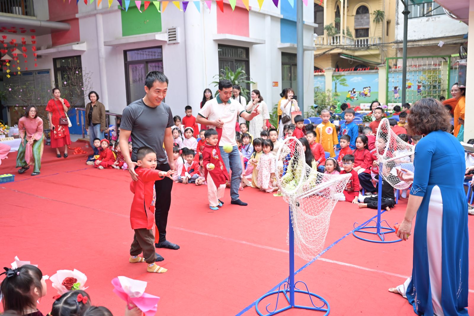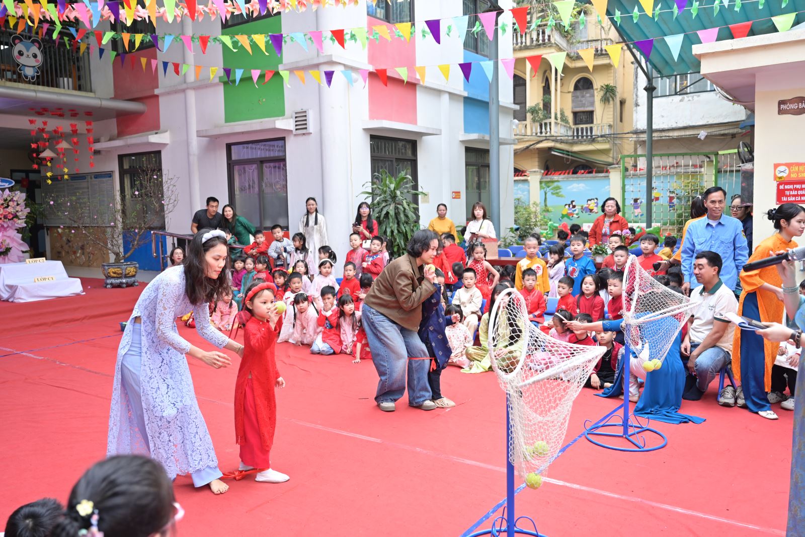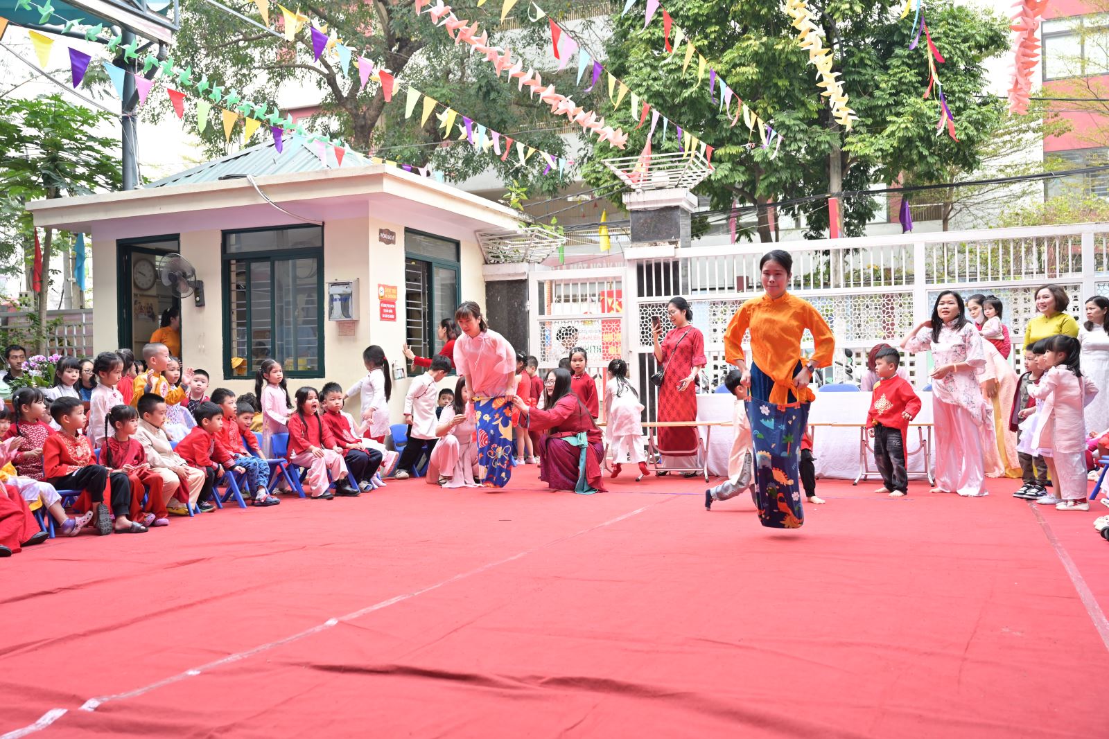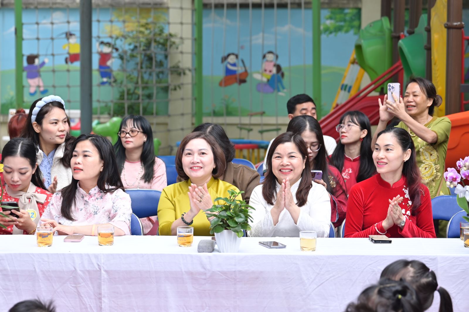 Chương trình mở đầu bằng phần tuyên bố lý do, giới thiệu đại biểu và phát biểu khai mạc của đồng chí Hiệu trưởng Bùi Thị Thu Hiền. Tiếp đó là các tiết mục văn nghệ đặc sắc của các con khối Mẫu giáo Nhỡ và Mẫu giáo Lớn, thể hiện tình cảm yêu thương, kính trọng dành cho bà, cho mẹ và cô giáo.