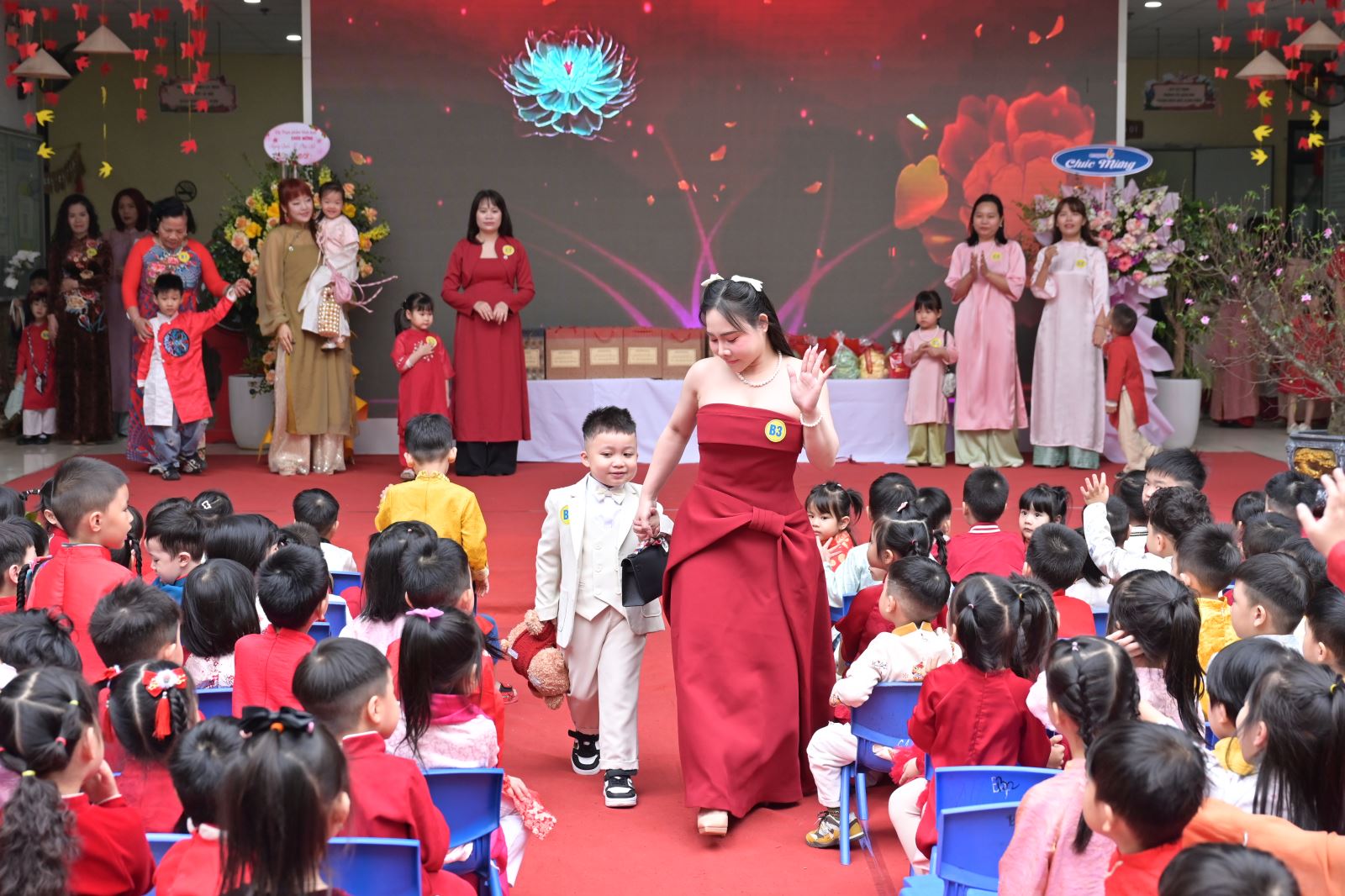 Điểm nhấn nổi bật của chương trình là phần biểu diễn thời trang với sự tham gia của các cặp phụ huynh và học sinh. Những tà áo dài thướt tha, áo bà ba, áo tứ thân cùng các trang phục truyền thống và hiện đại đã tạo nên một “sàn diễn” đầy màu sắc, tôn vinh vẻ đẹp người phụ nữ Việt Nam trong nhiều vai trò khác nhau.