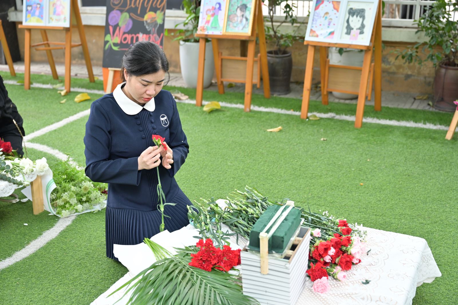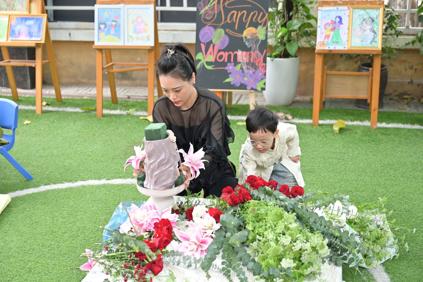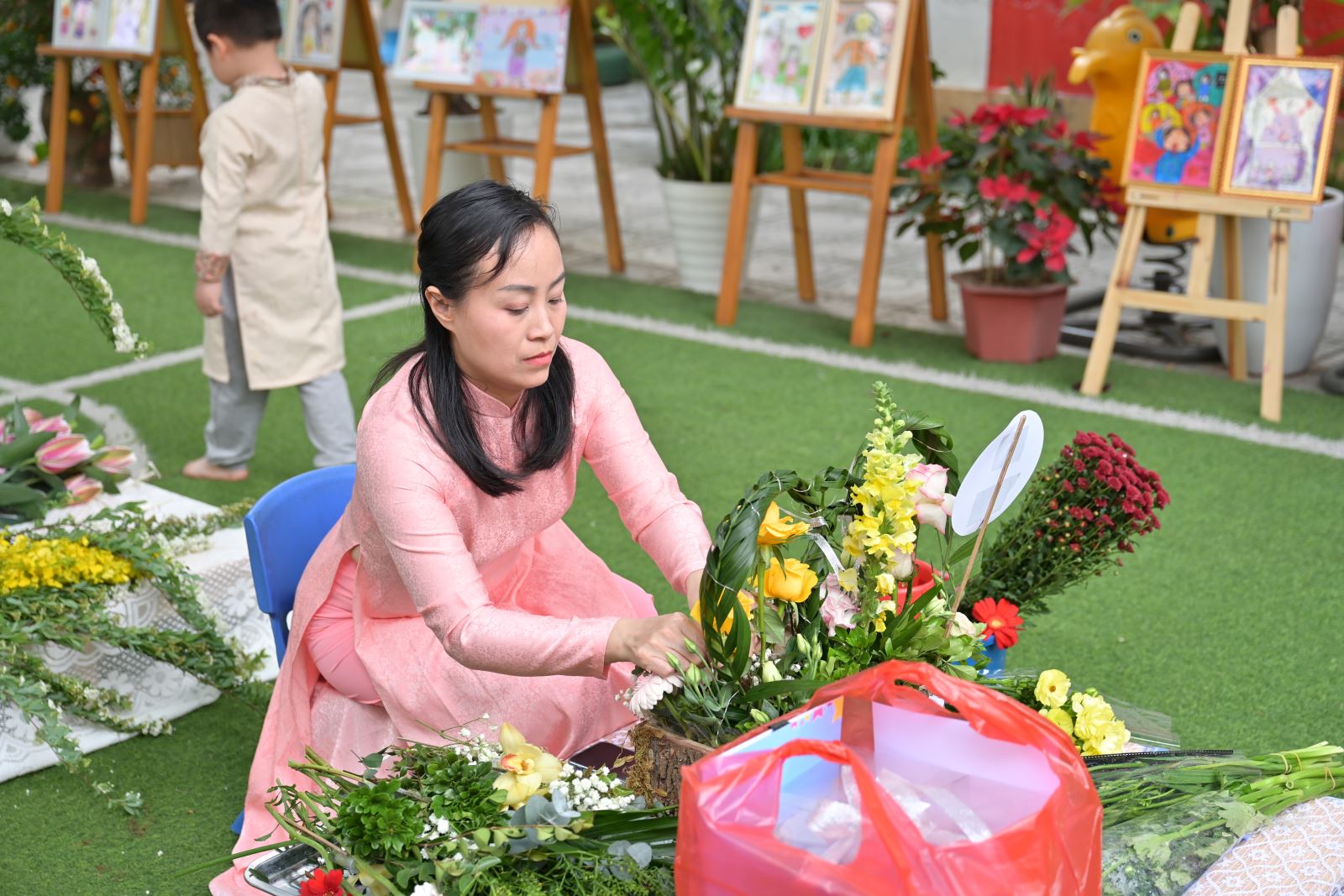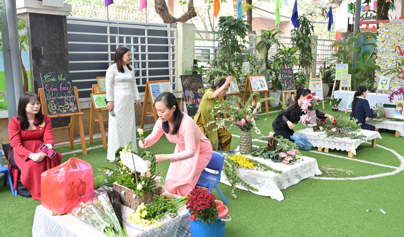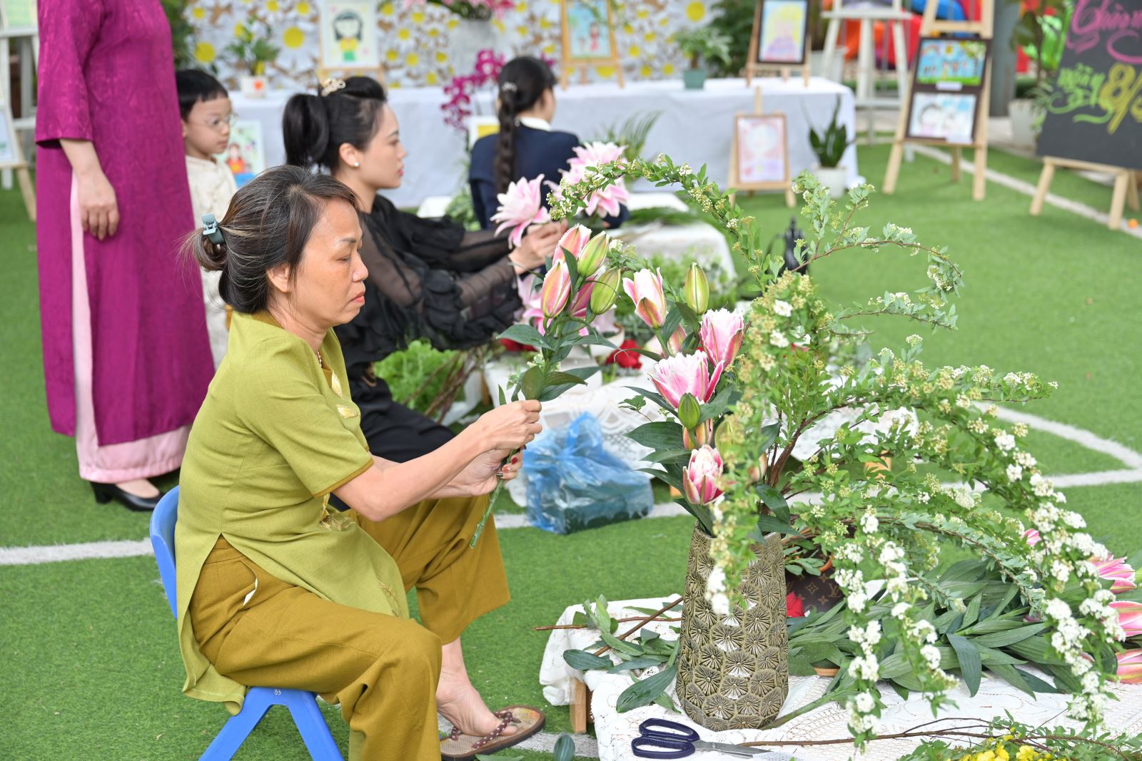 Khối Mẫu giáo Bé tham gia thi cắm hoa và thuyết trình sản phẩm