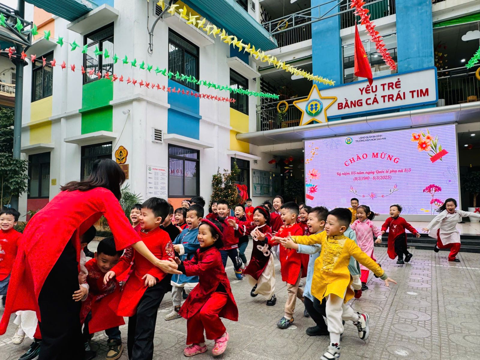 Rạng rỡ nụ cười cô và trò trường mầm non Sao Mai hưởng ứng Tuần lễ áo dài 2025