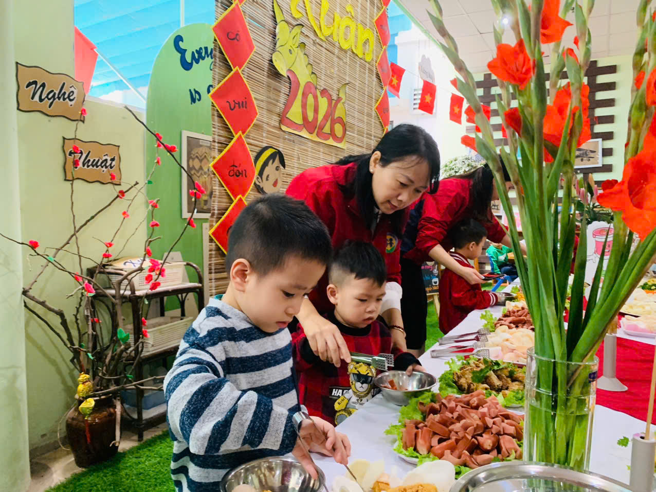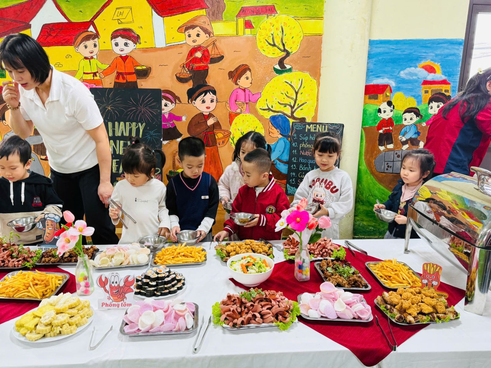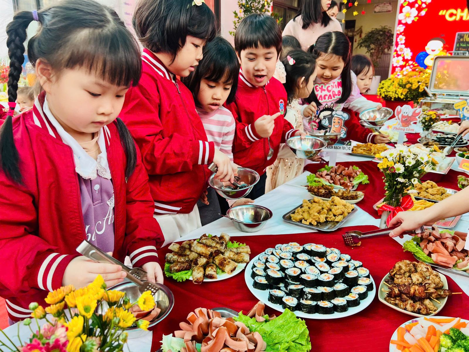 Một số hình ảnh trong buổi tiệc Buffet Chào xuân Bính Ngọ tại trường Mầm non Sao Mai: