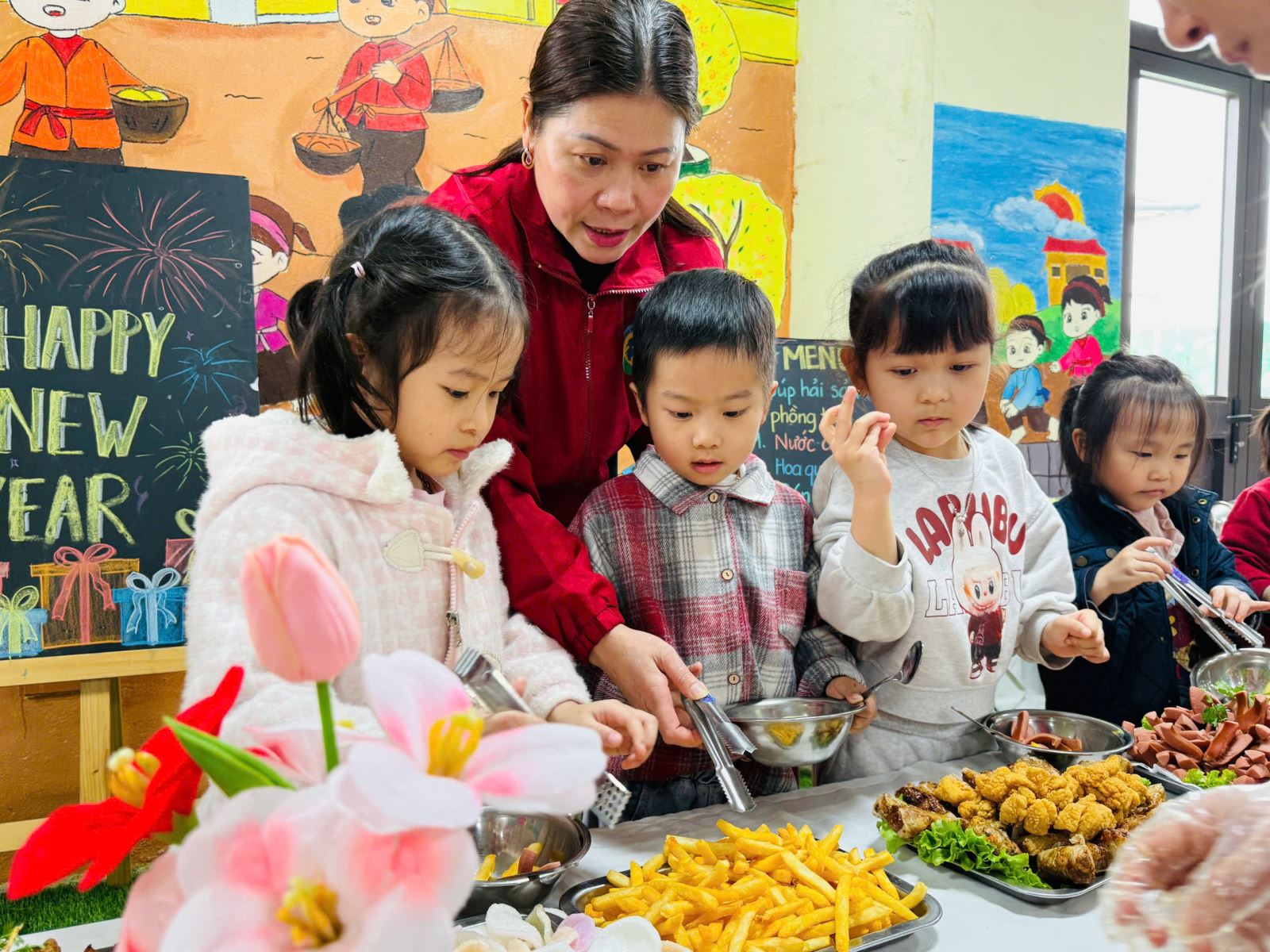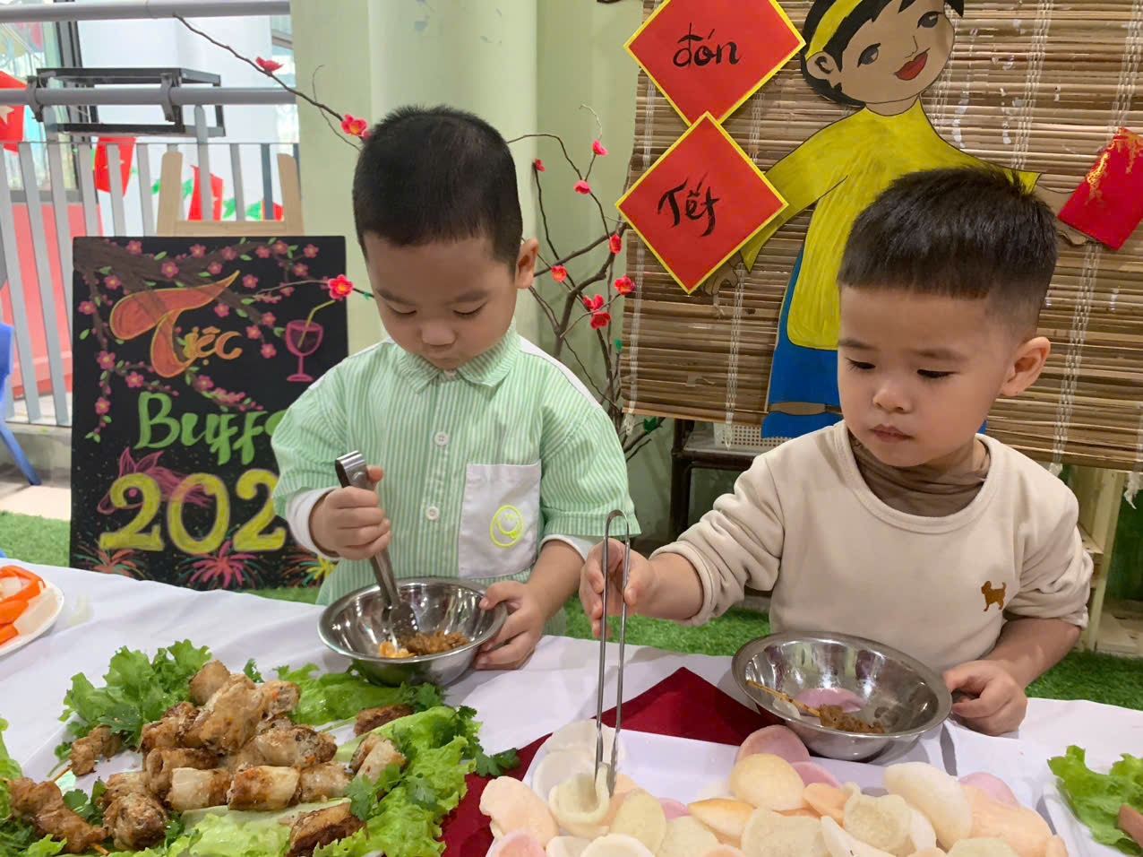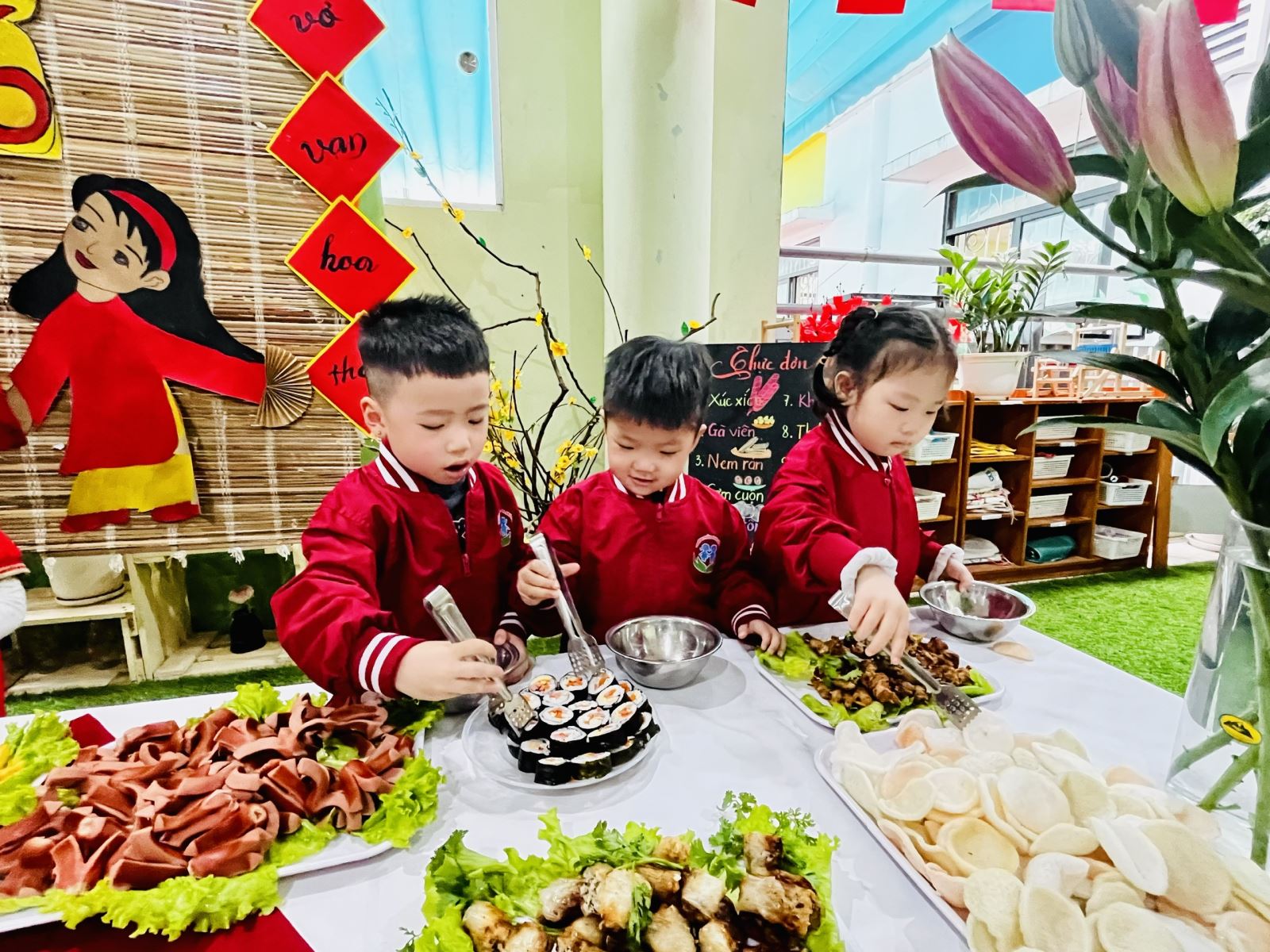 Một số hình ảnh trong buổi tiệc Buffet Chào xuân Bính Ngọ tại trường Mầm non Sao Mai: