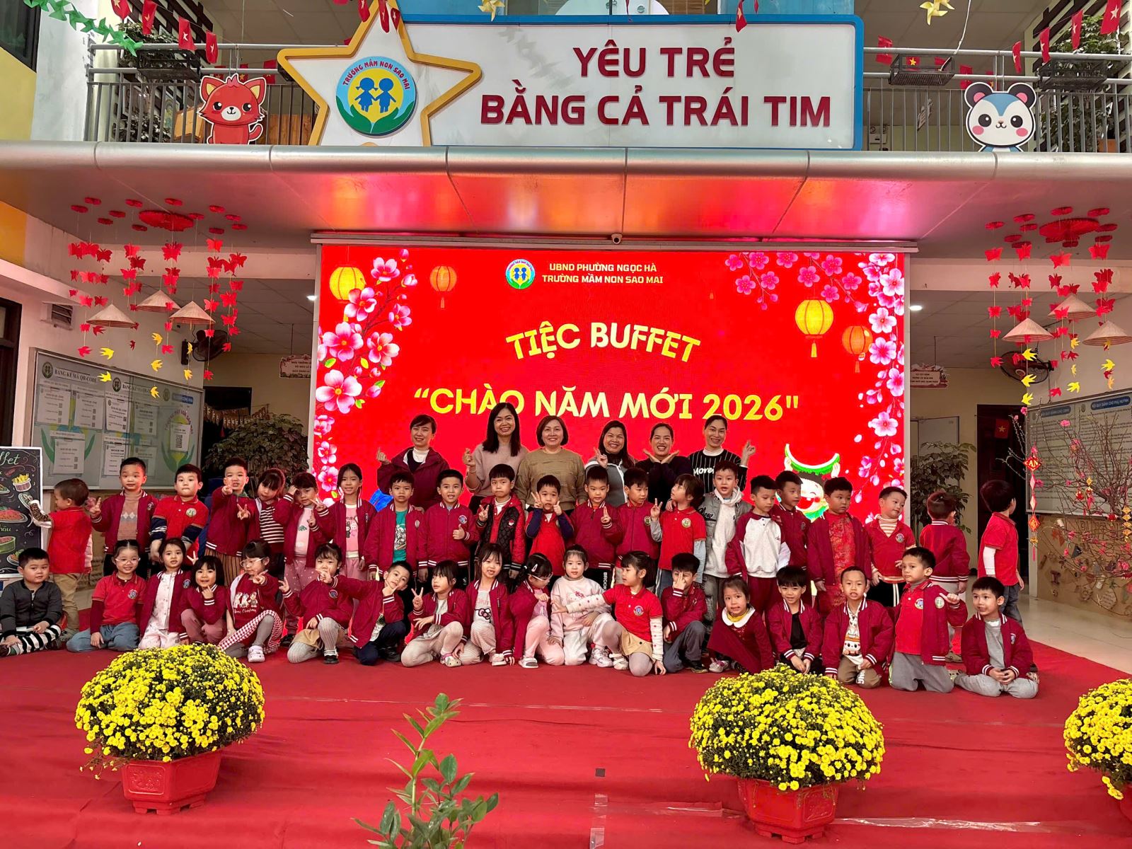 Nhân dịp Xuân Bính Ngọ, Trường Mầm non Sao Mai chúc các bé luôn mạnh khỏe, chăm ngoan; chúc quý phụ huynh cùng toàn thể cán bộ, giáo viên nhà trường một năm mới an khang, hạnh phúc, vạn sự như ý. Nhà trường sẽ tiếp tục tổ chức nhiều hoạt động trải nghiệm ý nghĩa, góp phần nuôi dưỡng và phát triển toàn diện cho trẻ.