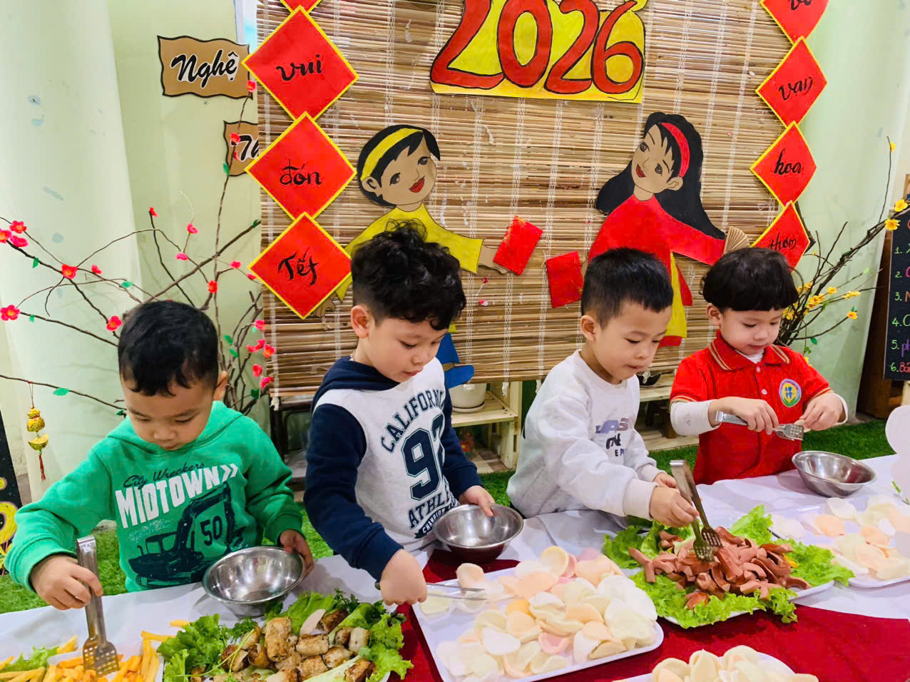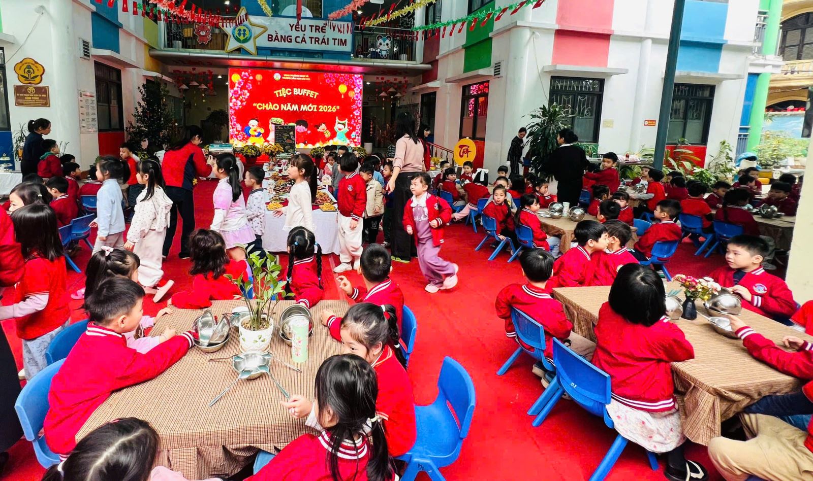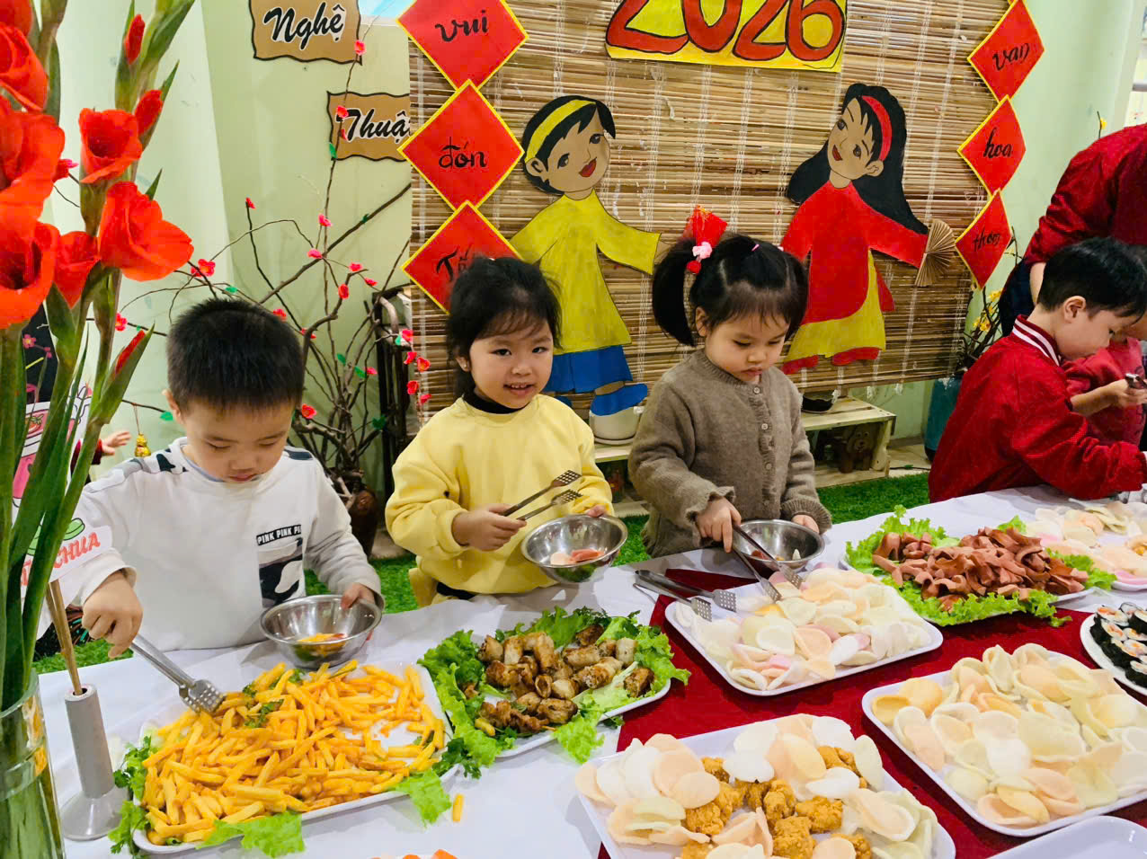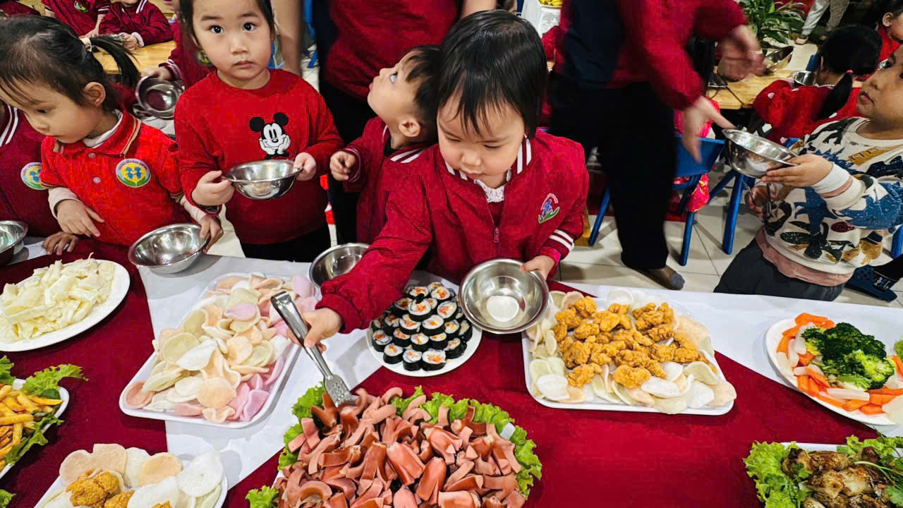 Những nụ cười rạng rỡ, ánh mắt háo hức và niềm vui hồn nhiên của các bé chính là minh chứng cho ý nghĩa thiết thực của hoạt động. Bữa tiệc buffet chào Xuân Bính Ngọ đã góp phần tạo nên không khí “mỗi ngày đến trường là một ngày vui”, giúp các con cảm nhận được sự ấm áp, yêu thương và nét đẹp của ngày Tết cổ truyền.