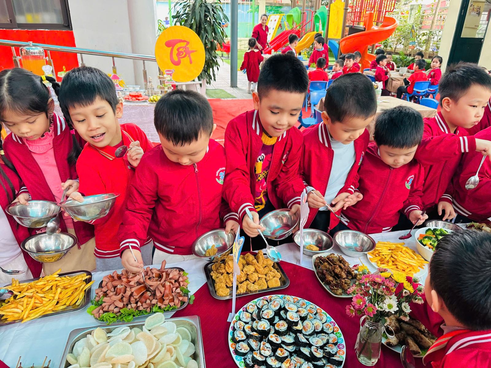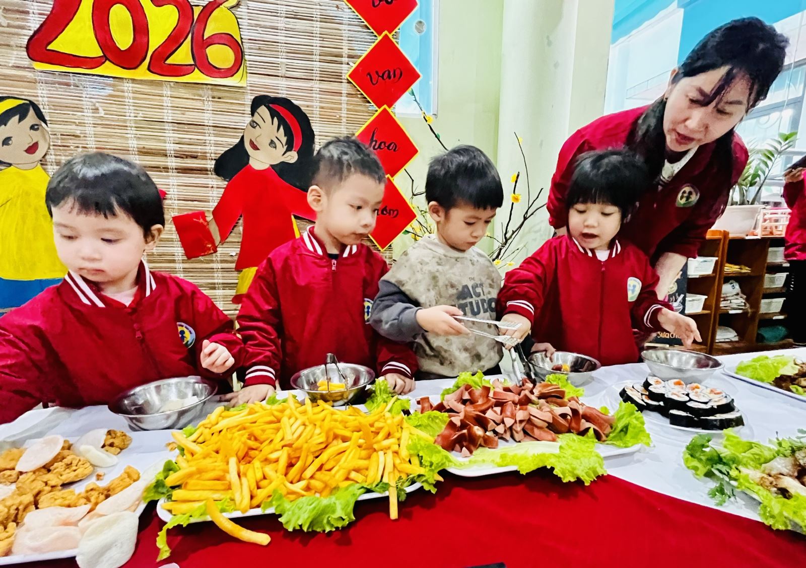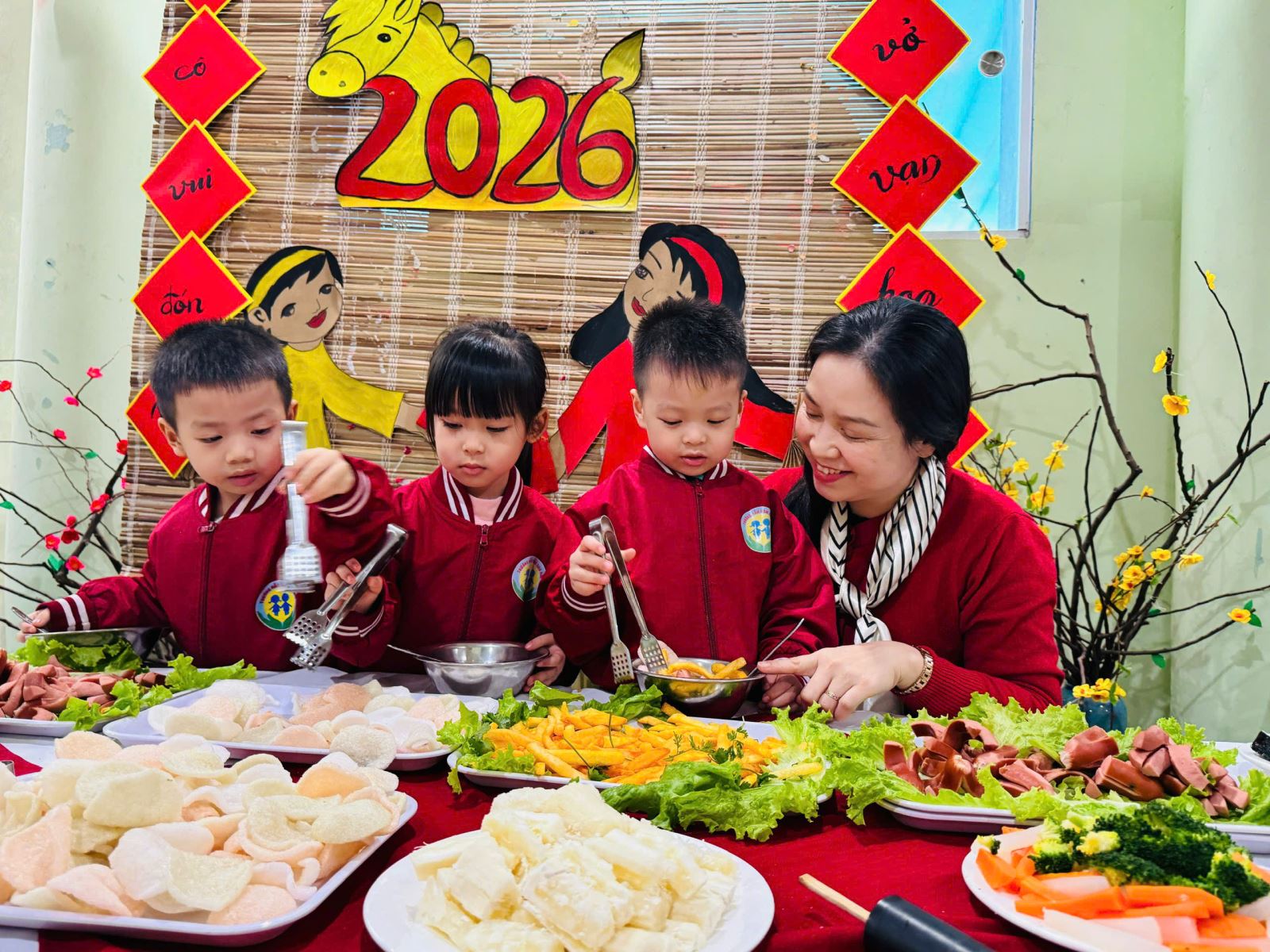 Những nụ cười rạng rỡ, ánh mắt háo hức và niềm vui hồn nhiên của các bé chính là minh chứng cho ý nghĩa thiết thực của hoạt động. Bữa tiệc buffet chào Xuân Bính Ngọ đã góp phần tạo nên không khí “mỗi ngày đến trường là một ngày vui”, giúp các con cảm nhận được sự ấm áp, yêu thương và nét đẹp của ngày Tết cổ truyền.