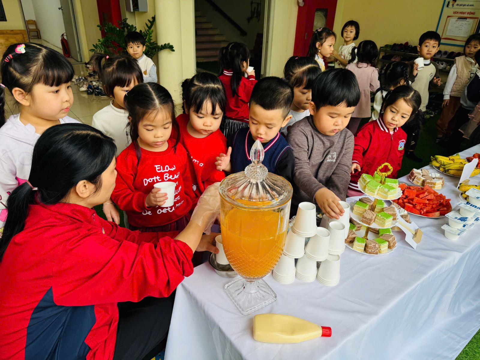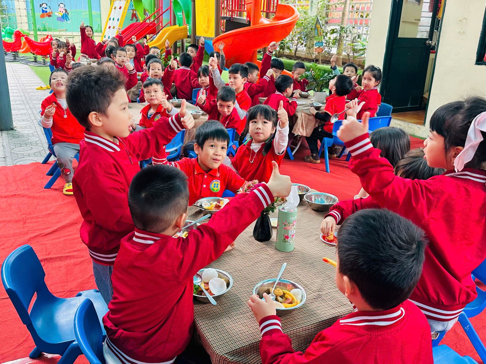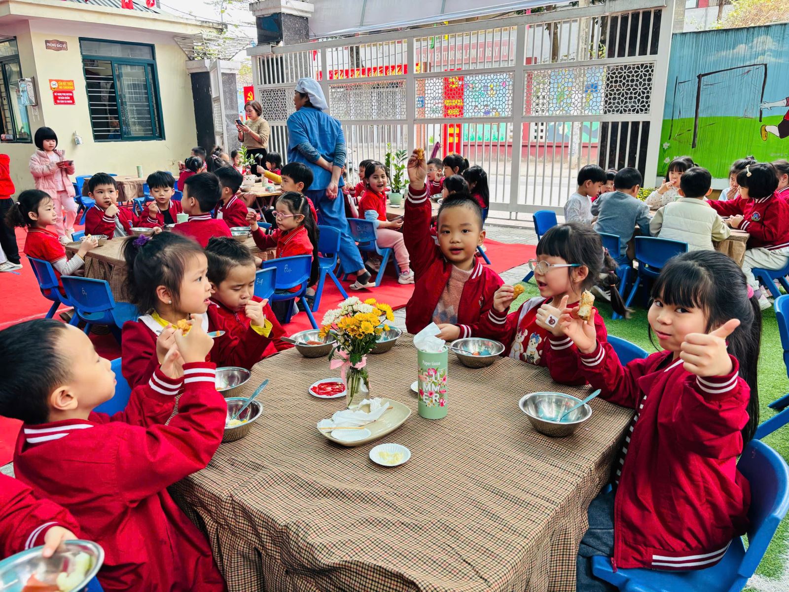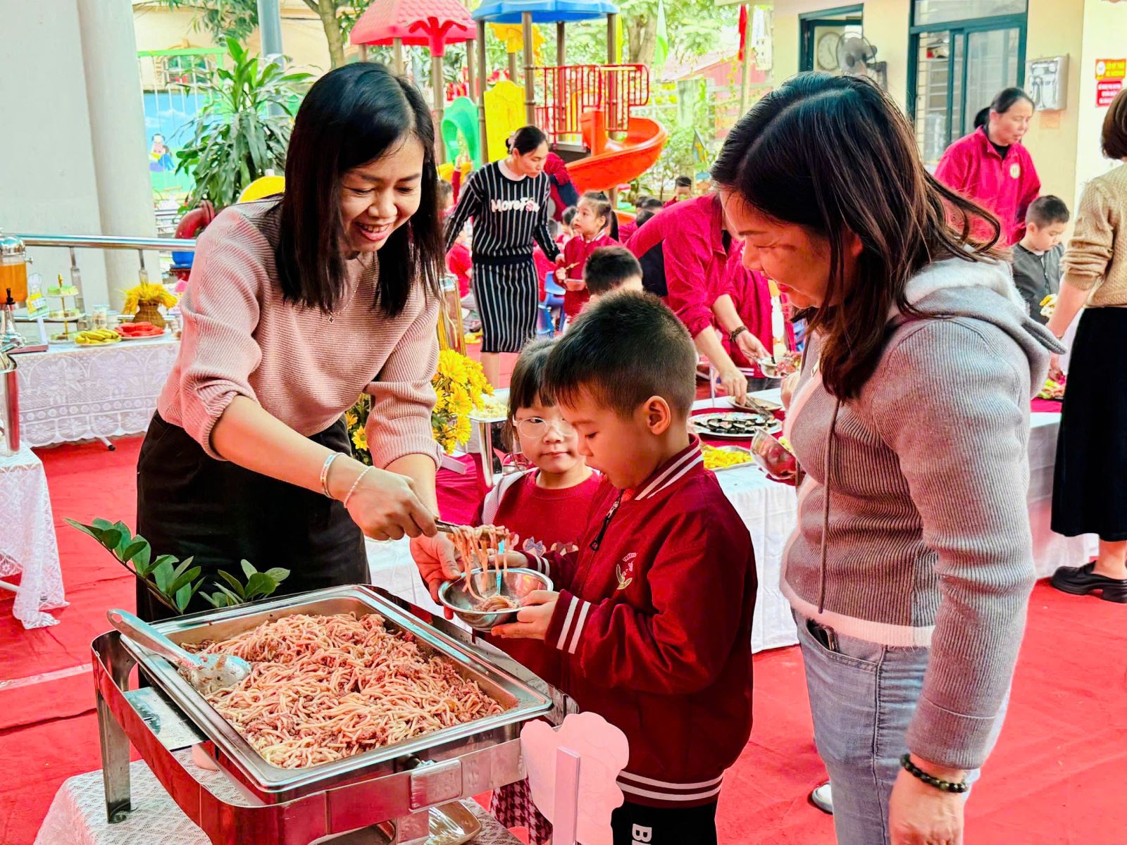 Những nụ cười rạng rỡ, ánh mắt háo hức và niềm vui hồn nhiên của các bé chính là minh chứng cho ý nghĩa thiết thực của hoạt động. Bữa tiệc buffet chào Xuân Bính Ngọ đã góp phần tạo nên không khí “mỗi ngày đến trường là một ngày vui”, giúp các con cảm nhận được sự ấm áp, yêu thương và nét đẹp của ngày Tết cổ truyền.