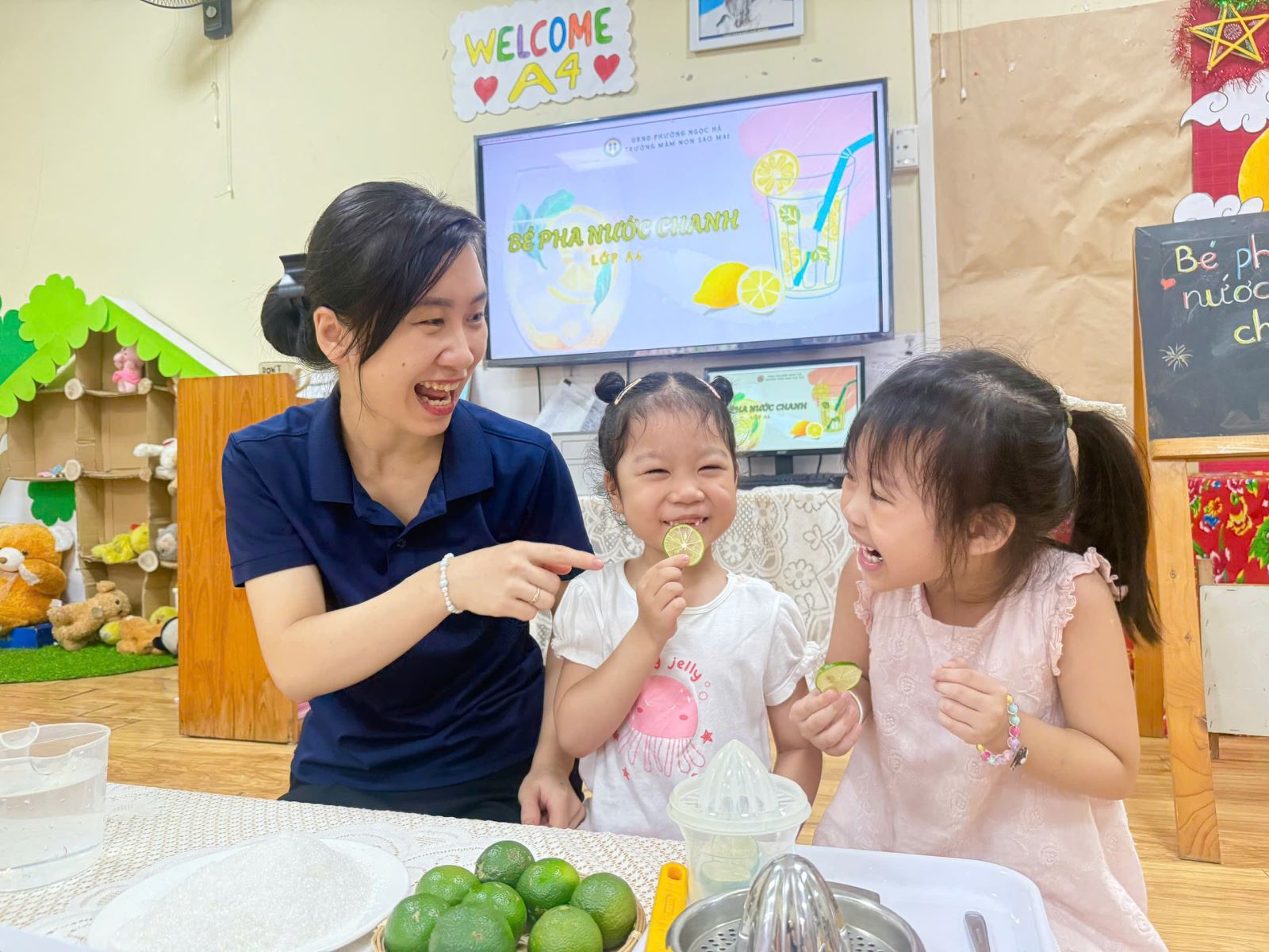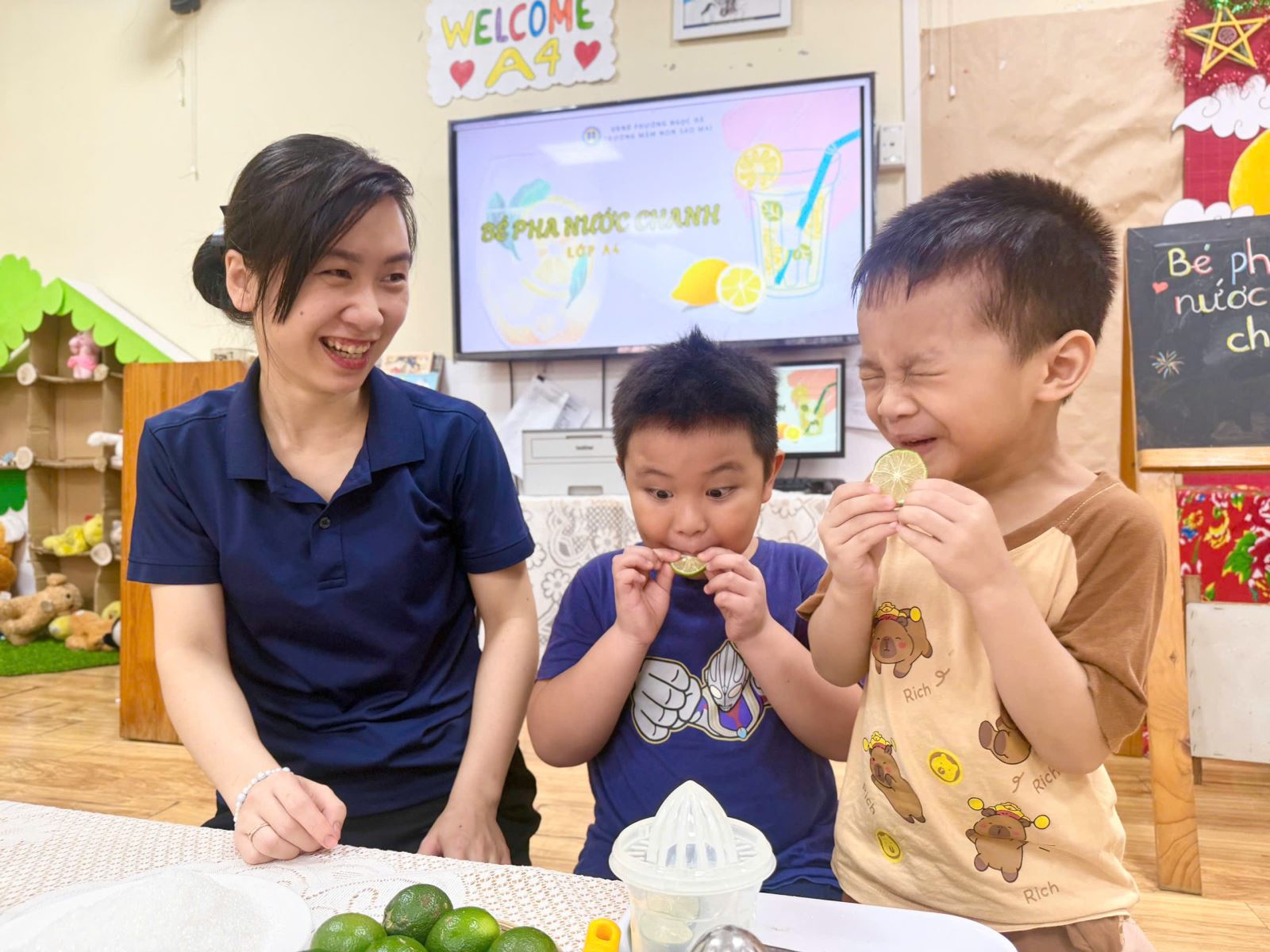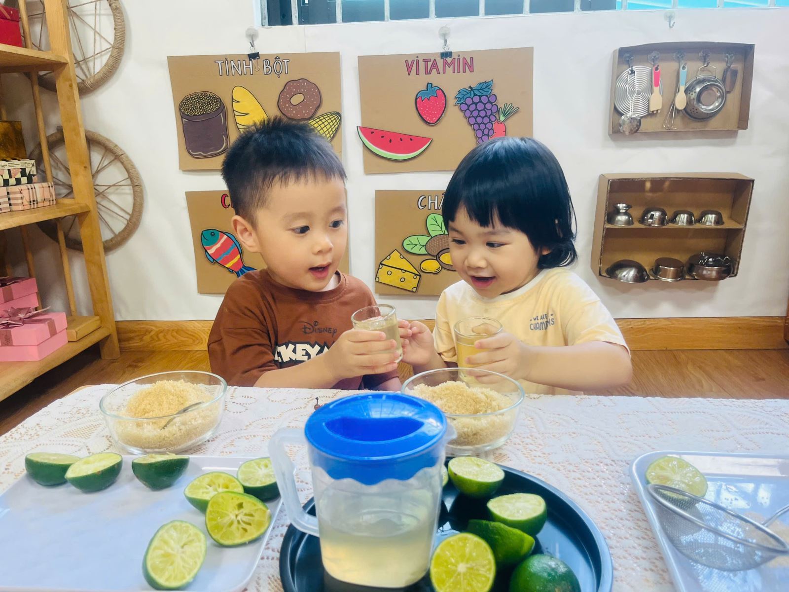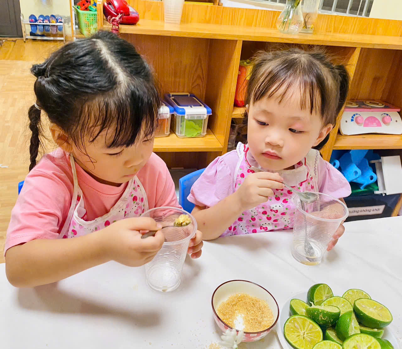 🍋 Các bạnMẫu giáo nhỡ thì hào hứng hơn khi biết đếm số thìa đường, tự mình vắt chanh và điều chỉnh vị.