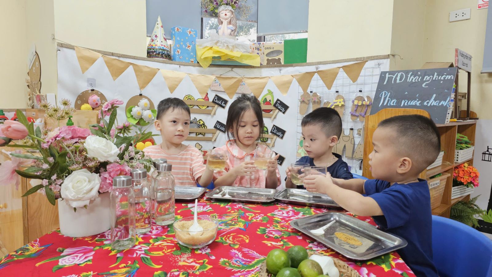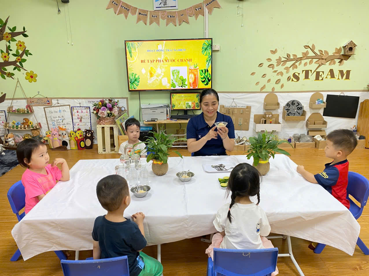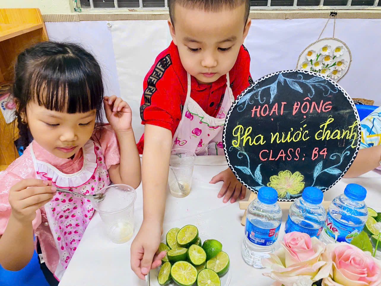 Các bé yêu lớp MGN B4 với hoạt động "Bé pha nước chanh"